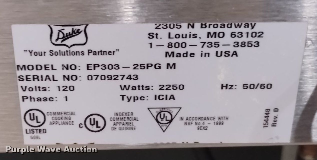 Purple Wave is selling a used Restaurant Equip. in Colorado. This item is a Duke EP303-25PG M steam table with the following: Duke EP303-25PG M steam table. La Veta Schools. 109 East Garland Street. La Veta, CO 81055