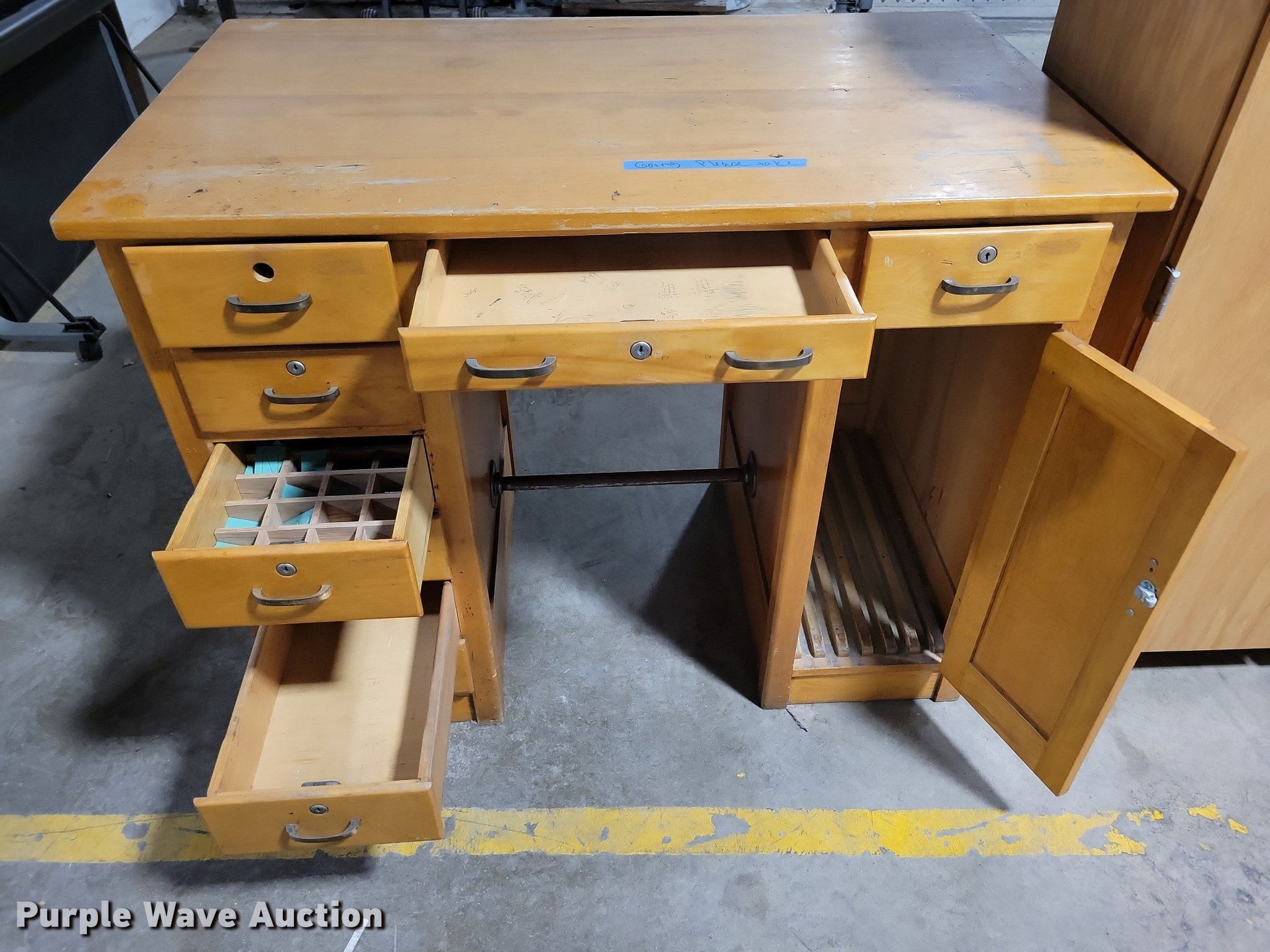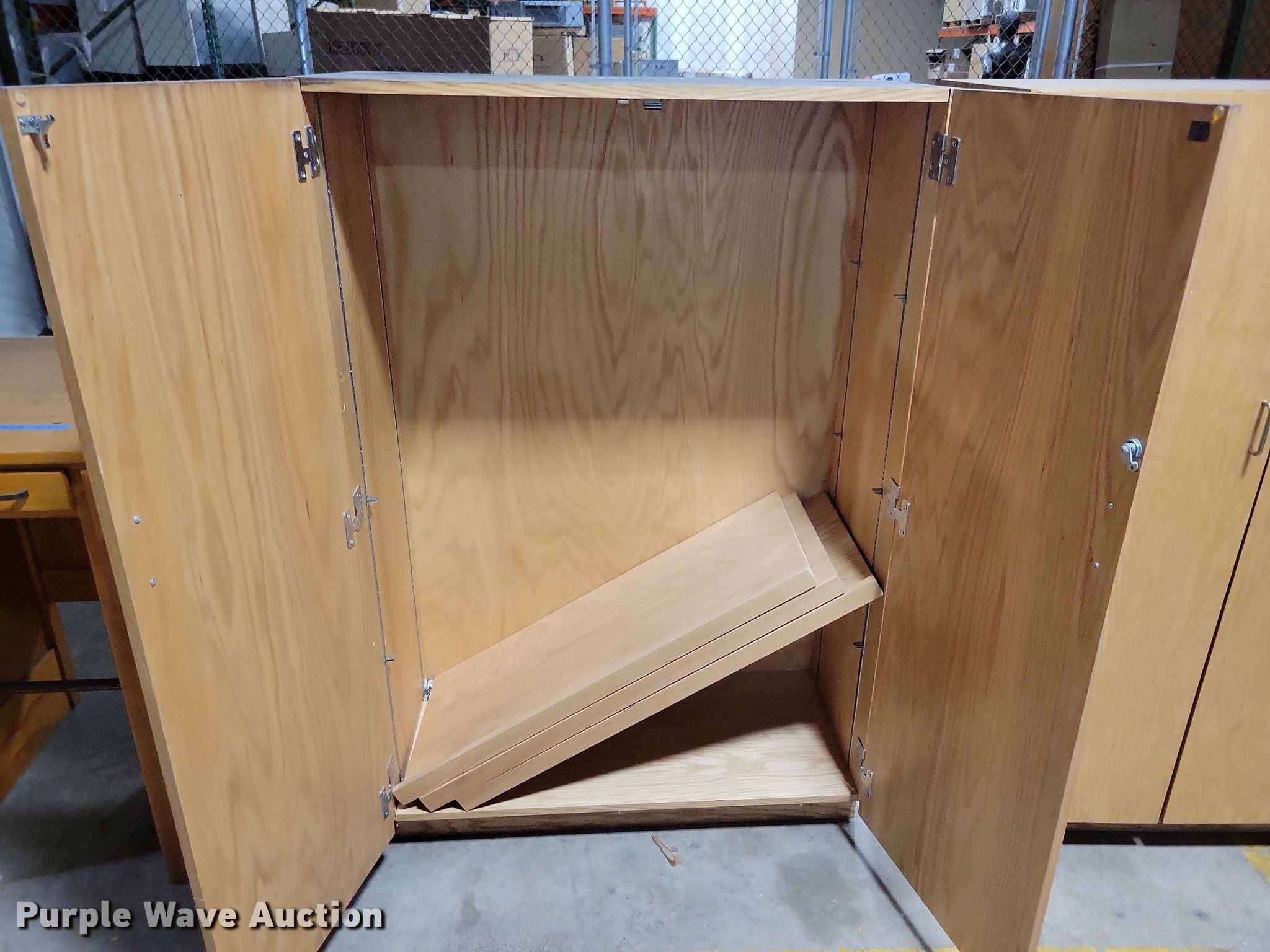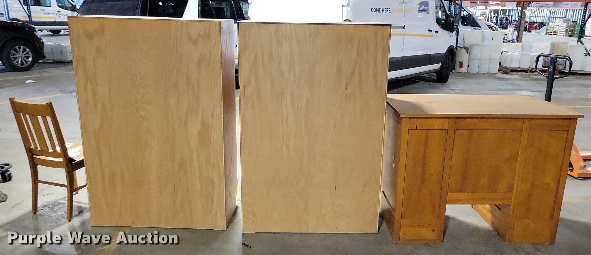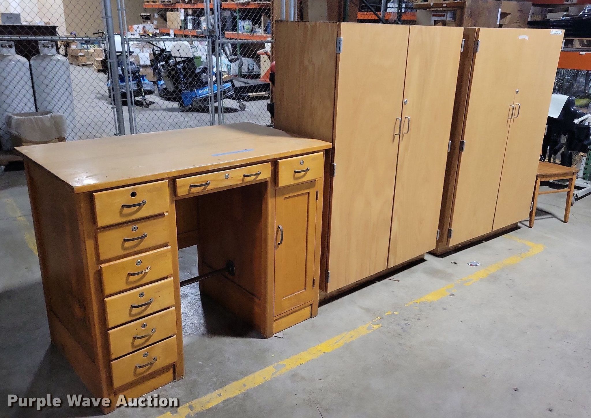 Purple Wave is selling a used Furniture in Iowa. This item is a Furniture with the following: Chair, Desk, 28" x 4' x 38", (2) cabinets, 20" x 40" x 5'