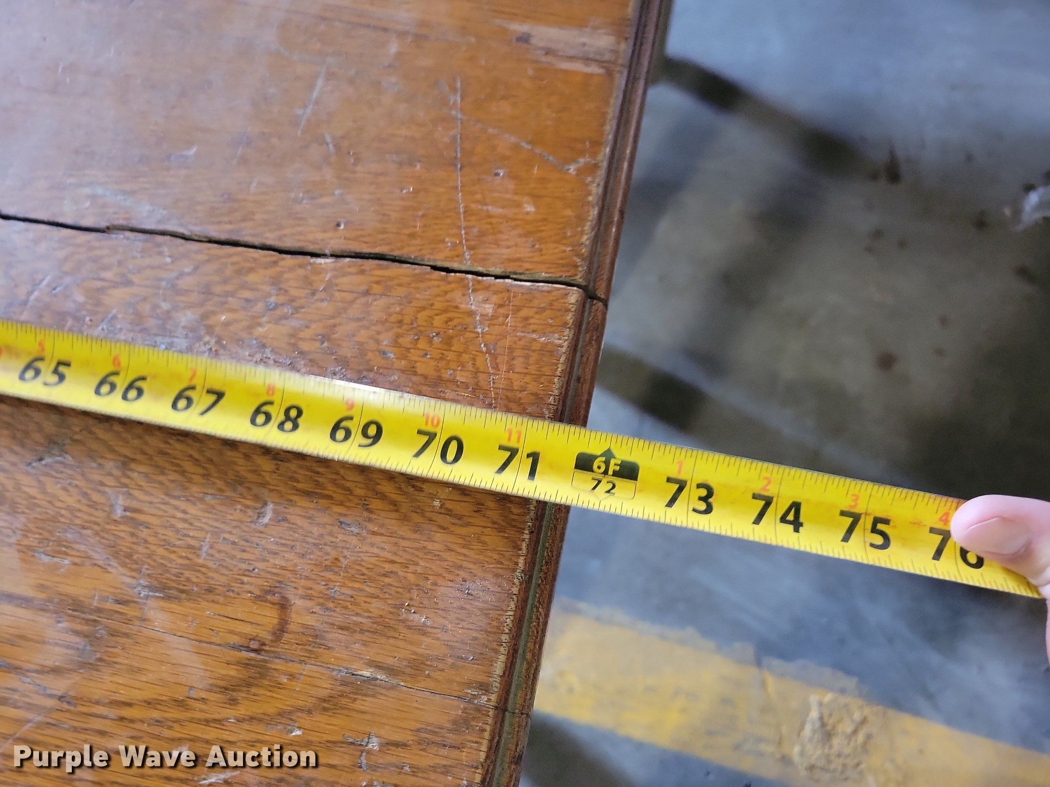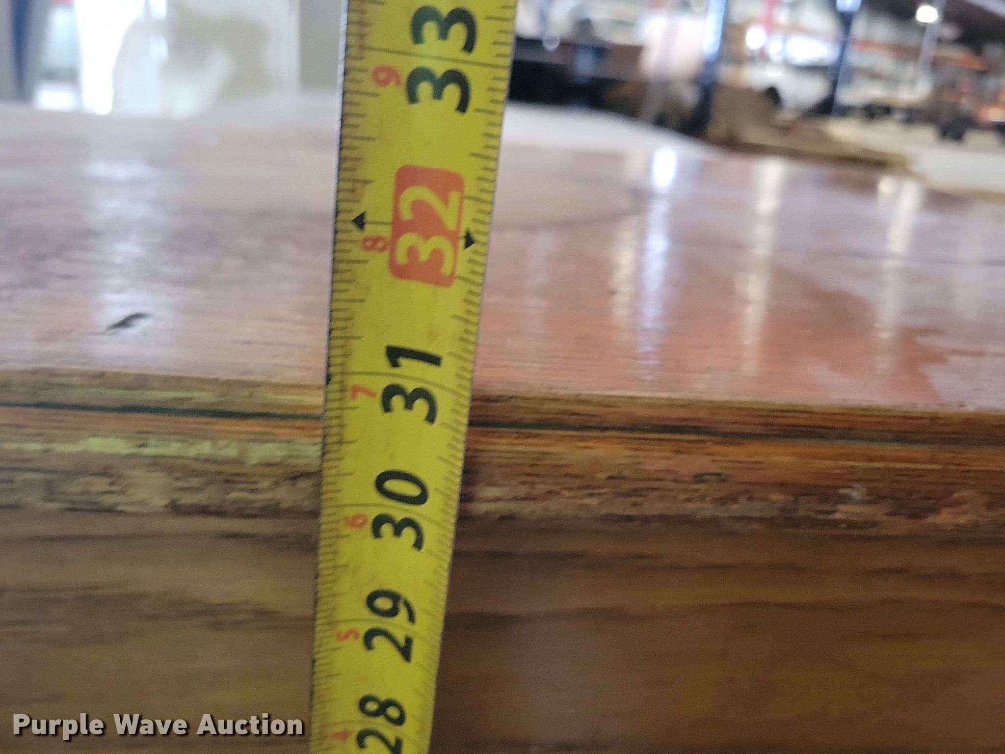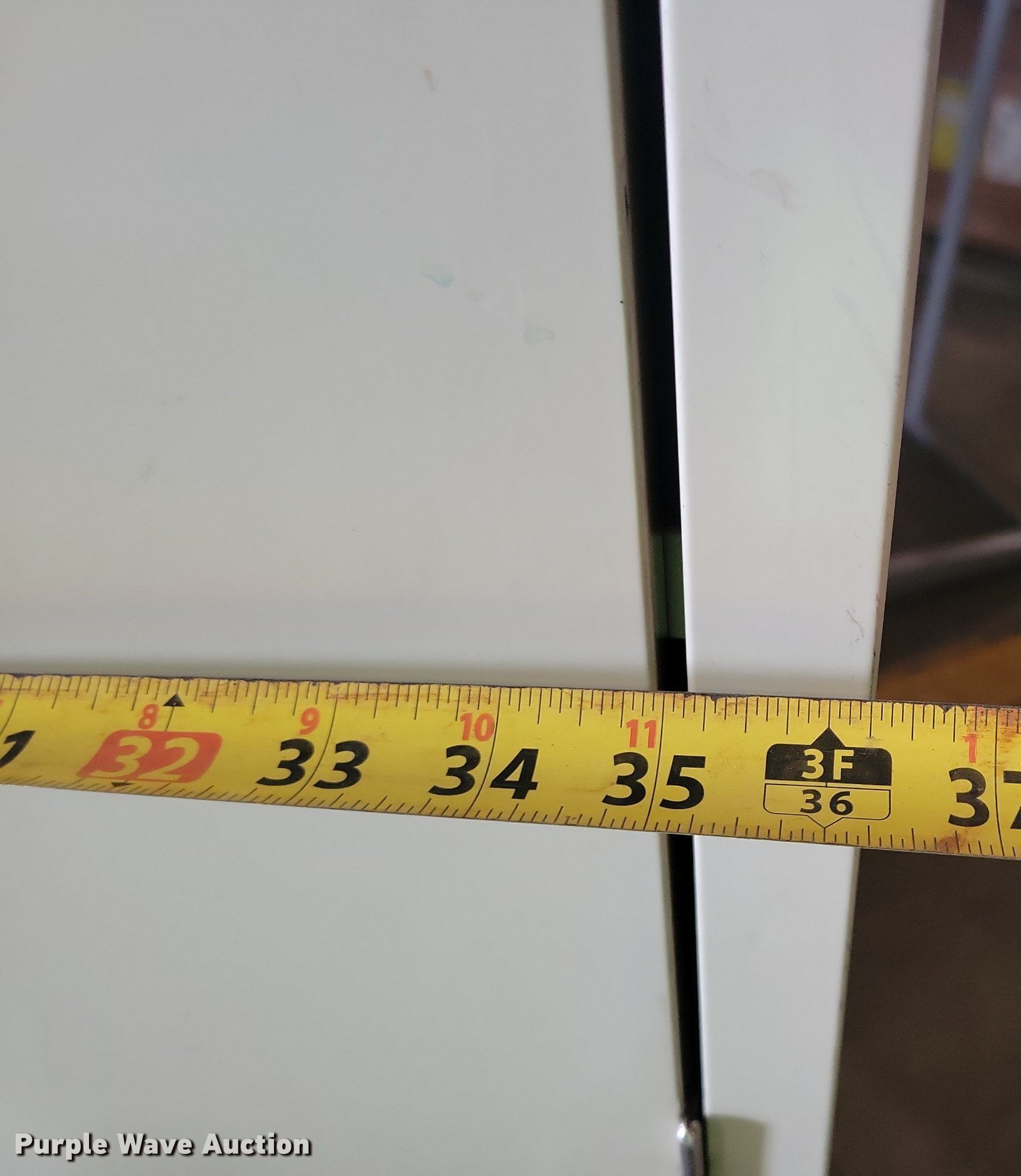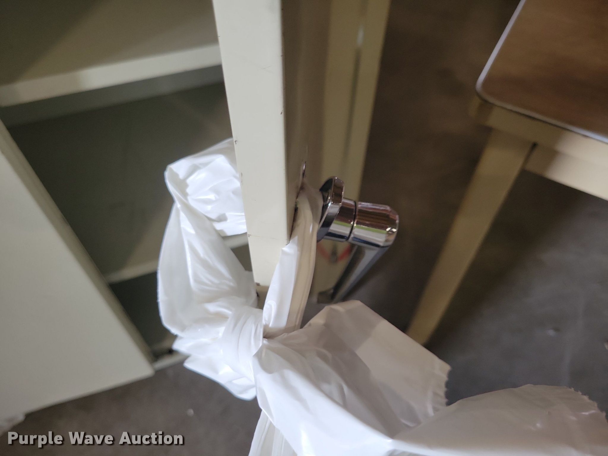 Purple Wave is selling a used Furniture in Iowa. This item is a Furniture with the following: (2) desks, 30" x 42" x 29", 2' x 6' x 30", Storage cabinet, 3' x 18" x 6', Handle broken