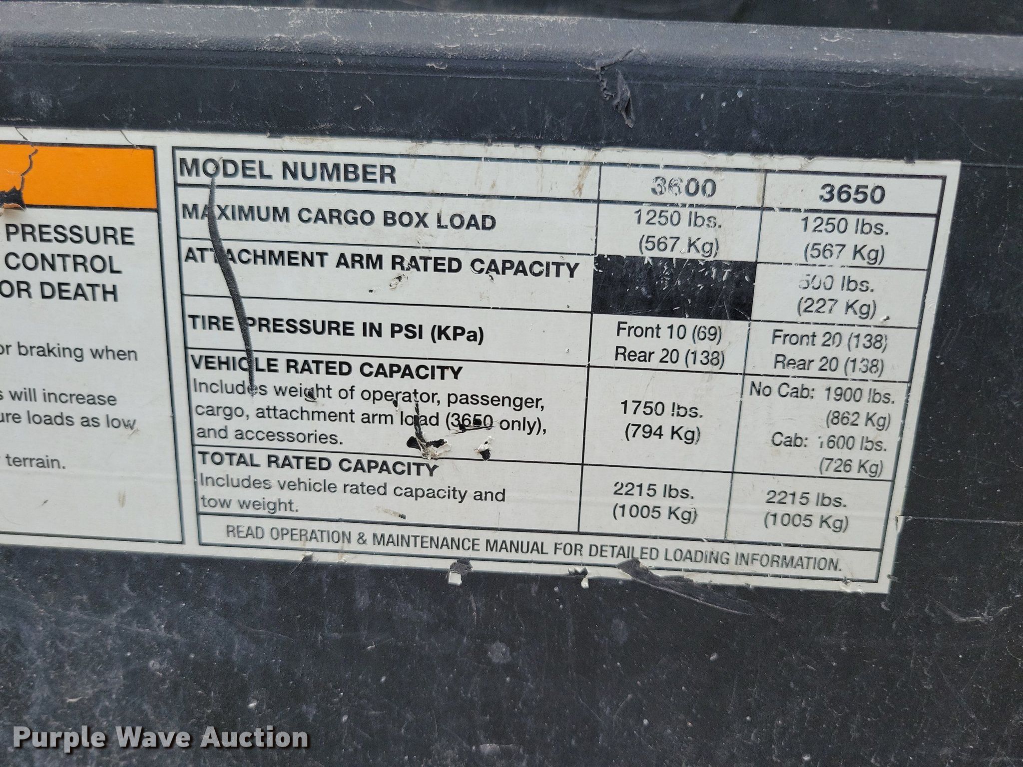 Purple Wave is selling a used Utility Vehicle in Iowa. This item is a 2018 Bobcat 3650 utility vehicle with the following: Miles: 1,347 on odometer, Hours: 313 on meter, VIN: 4XAB3C3A3J8018279