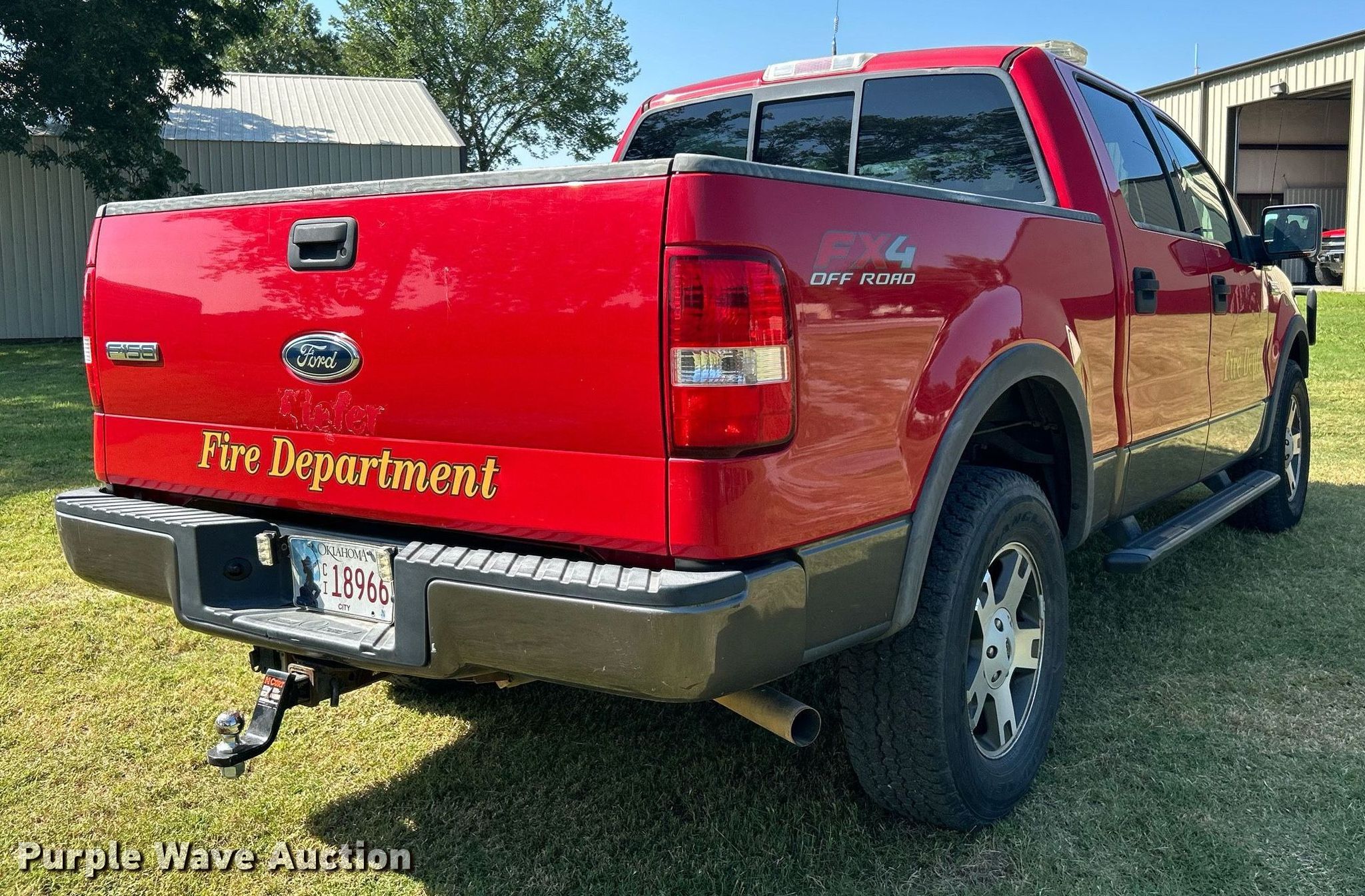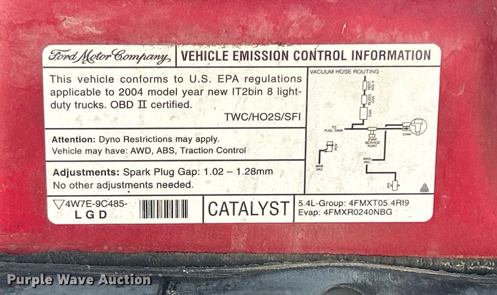 2004 Ford F150 SuperCrew pickup truck. Miles: 108,632 on odometer, VIN: 1FTPW14504FA13651. Engine Displacement: 5.4L V8 SOHC, Cylinders: 6, Fuel type: Gas. Transmission Automatic, Four wheel drive. Interior AC, Heat, Seat: Power driver, Power windows, Power locks, Cruise control, Powered sunroof. Tires Size: 275/70R18. Notes Dash warning indicator: Airbag. Oklahoma title. Seller is a government entity who will be assigning and distributing the title. Please contact the seller for distribution questions. Town of Kiefer. 401 E. Indiana St. Kiefer, OK 74041