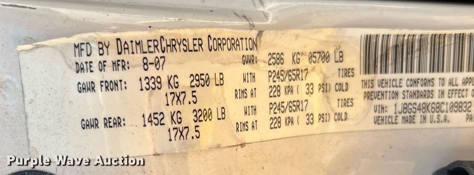 - VIN: 1J8GS48K68C109832
