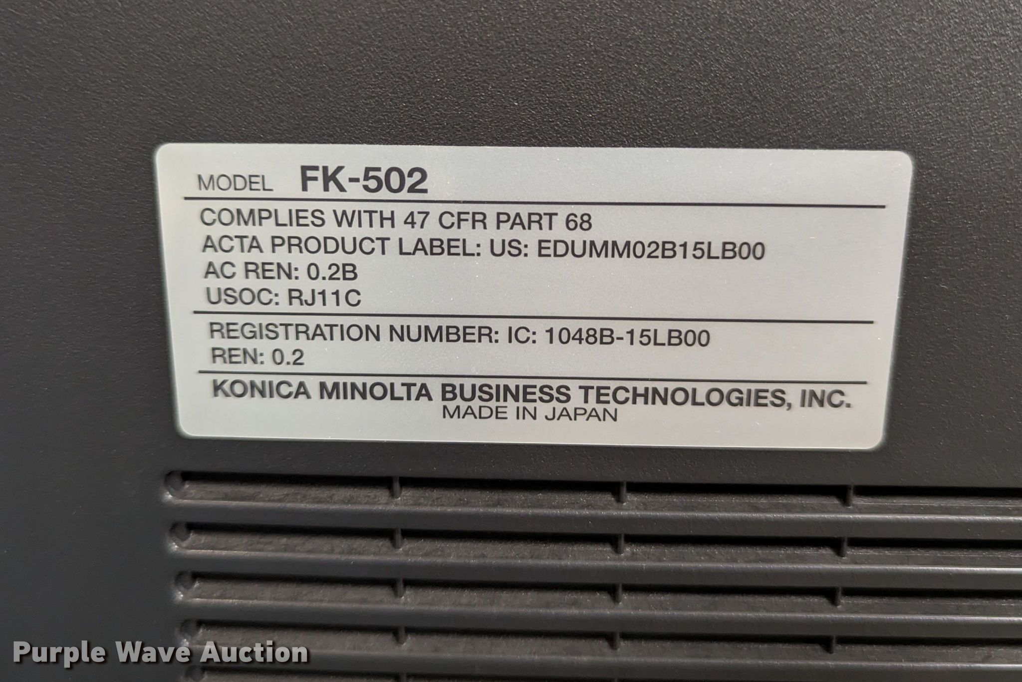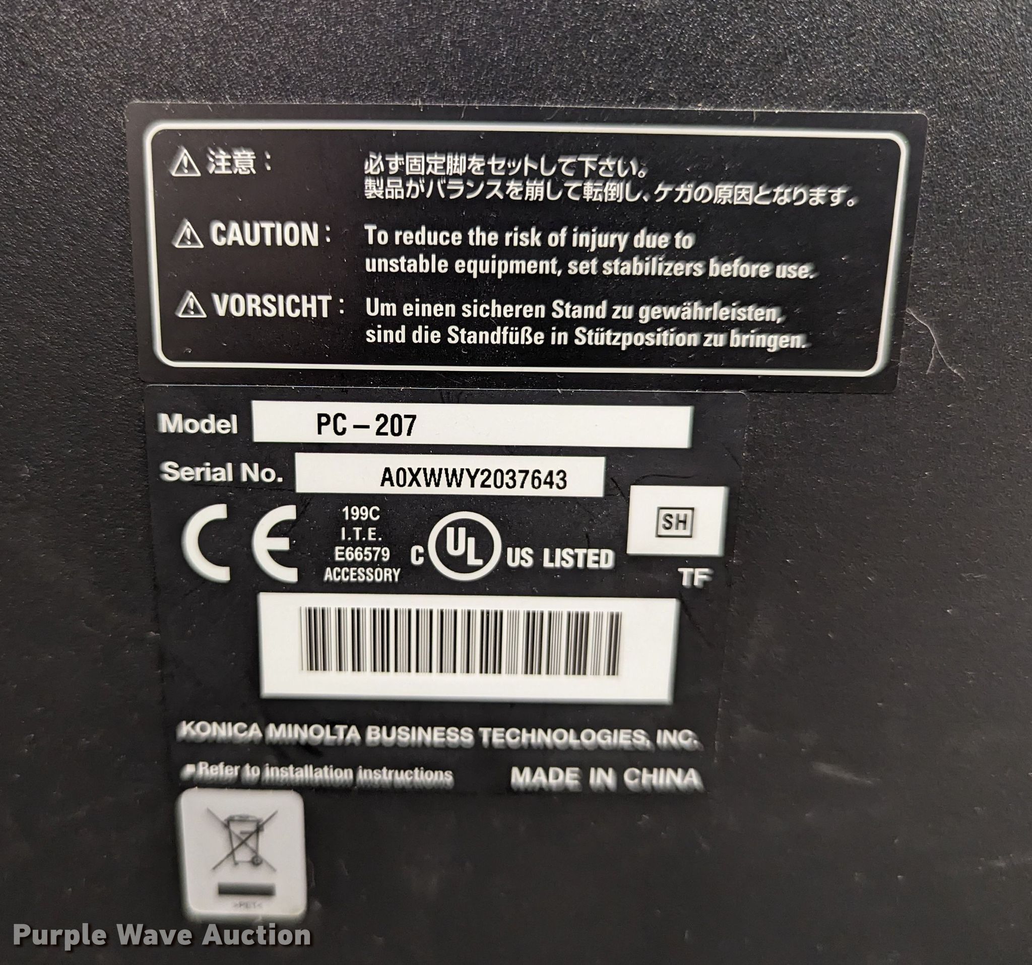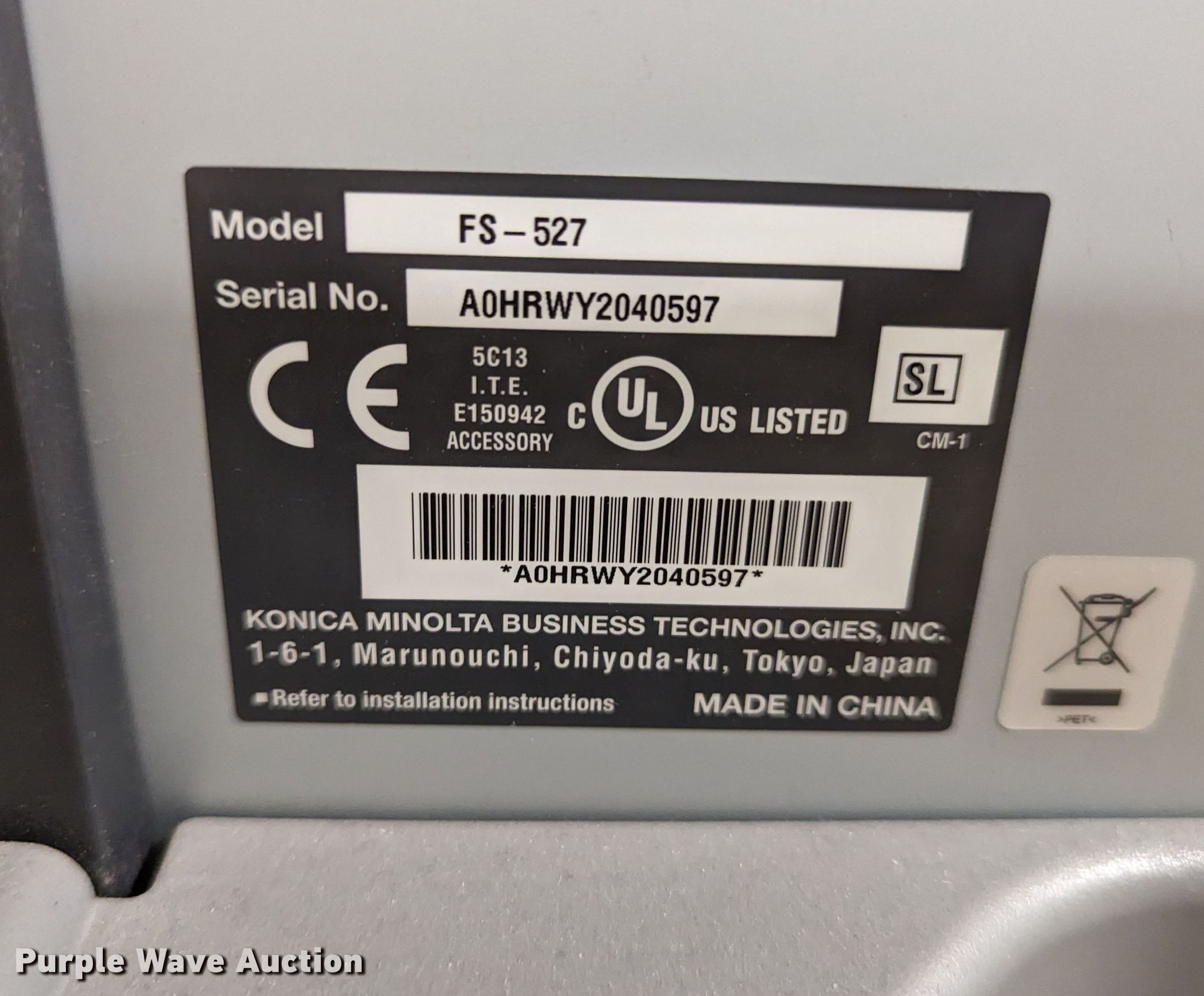 Purple Wave is selling a used Copy or Printing Machine in Oklahoma. This item is a 2010 Konica Minolta BizHub C360 all in one copier with the following: Serial: A0ED011011223