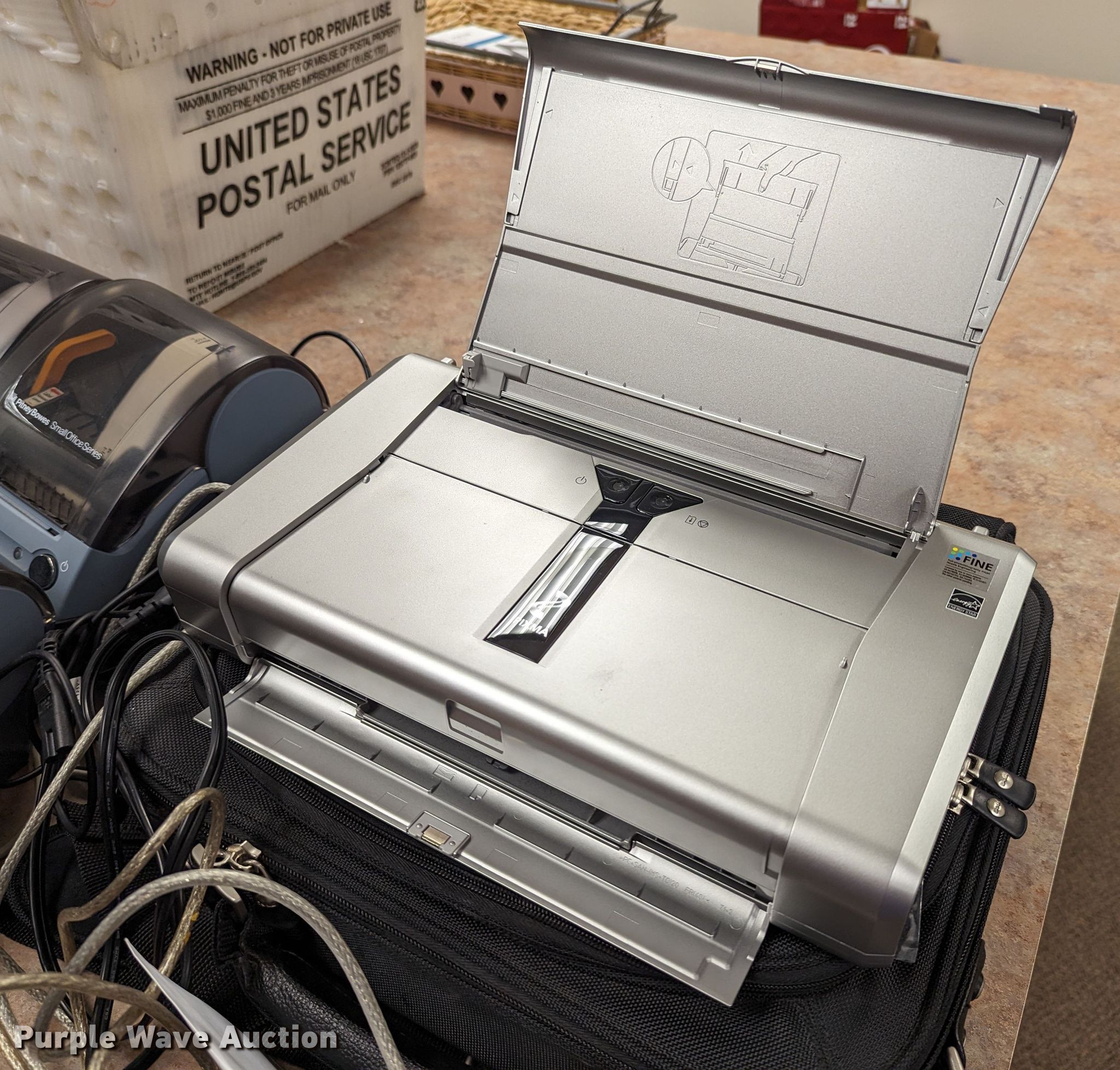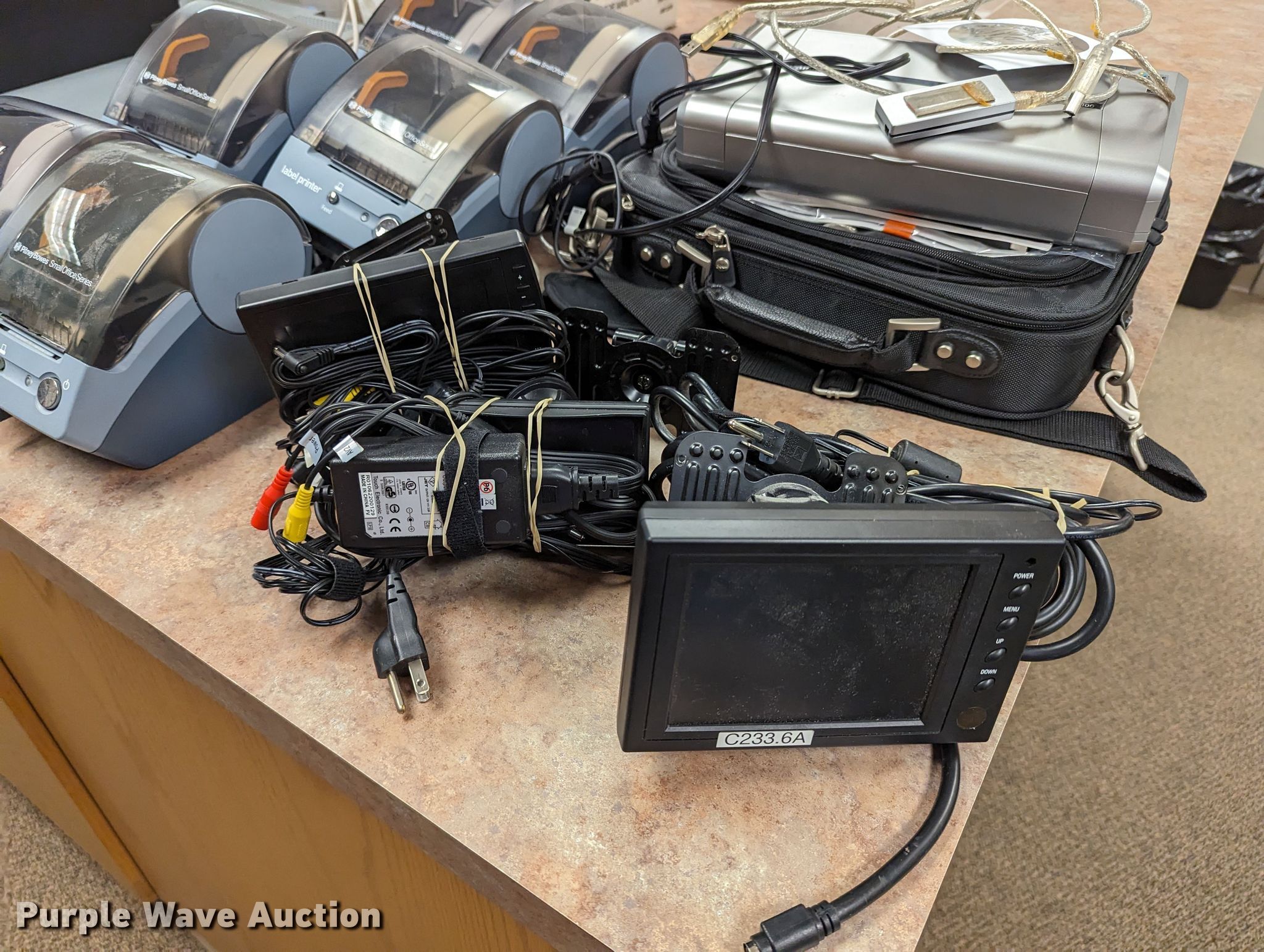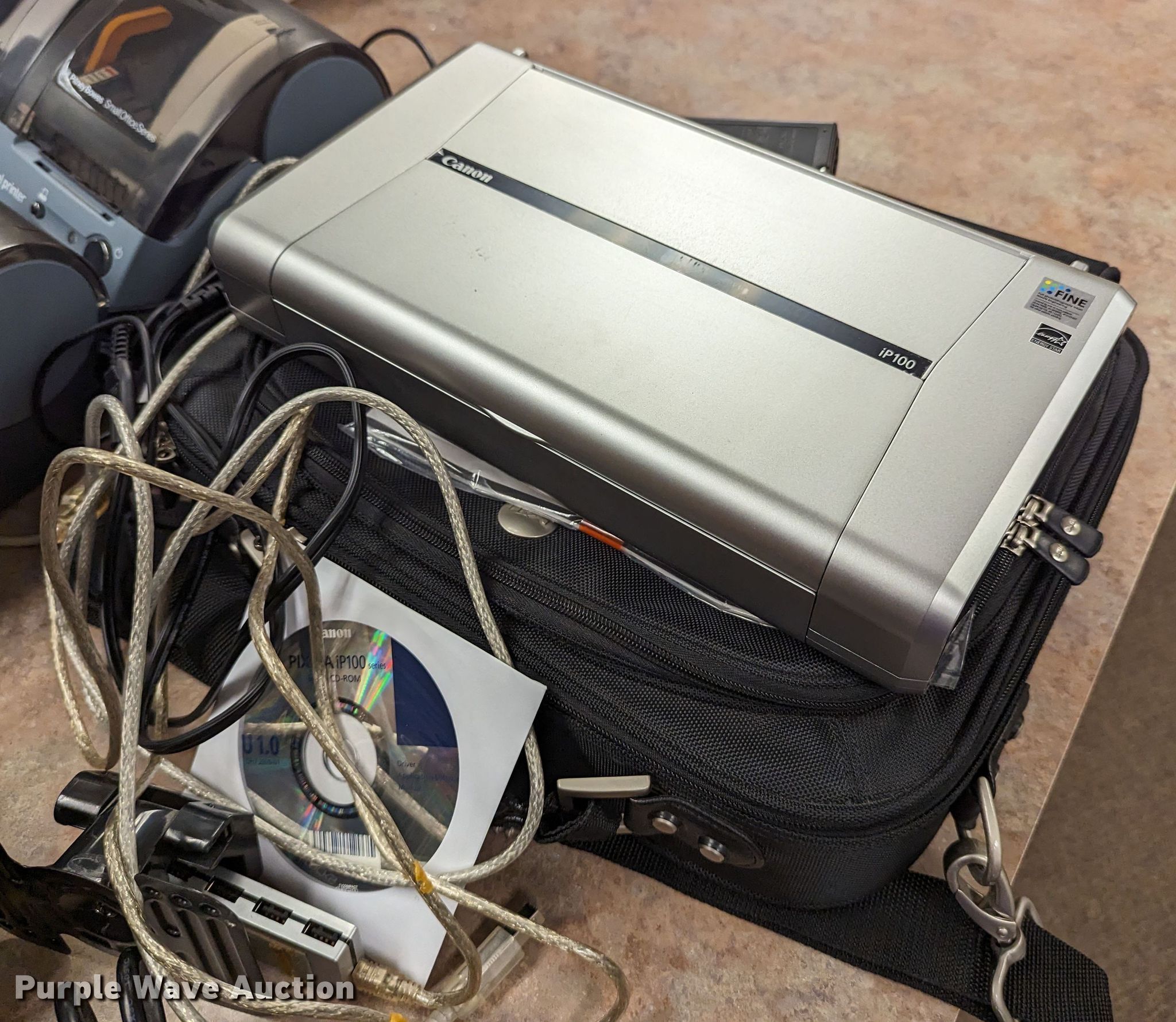 Purple Wave is selling a used Electronics in Oklahoma. This item is a Electronics with the following: Dell Optiplex 7010 CPU, No hard drive, Dell PowerEdge tower server, No hard drive, (3) LCD monitors, Canon iP100 printer, Dell computer bag, (4) Pitney Bowes label printers