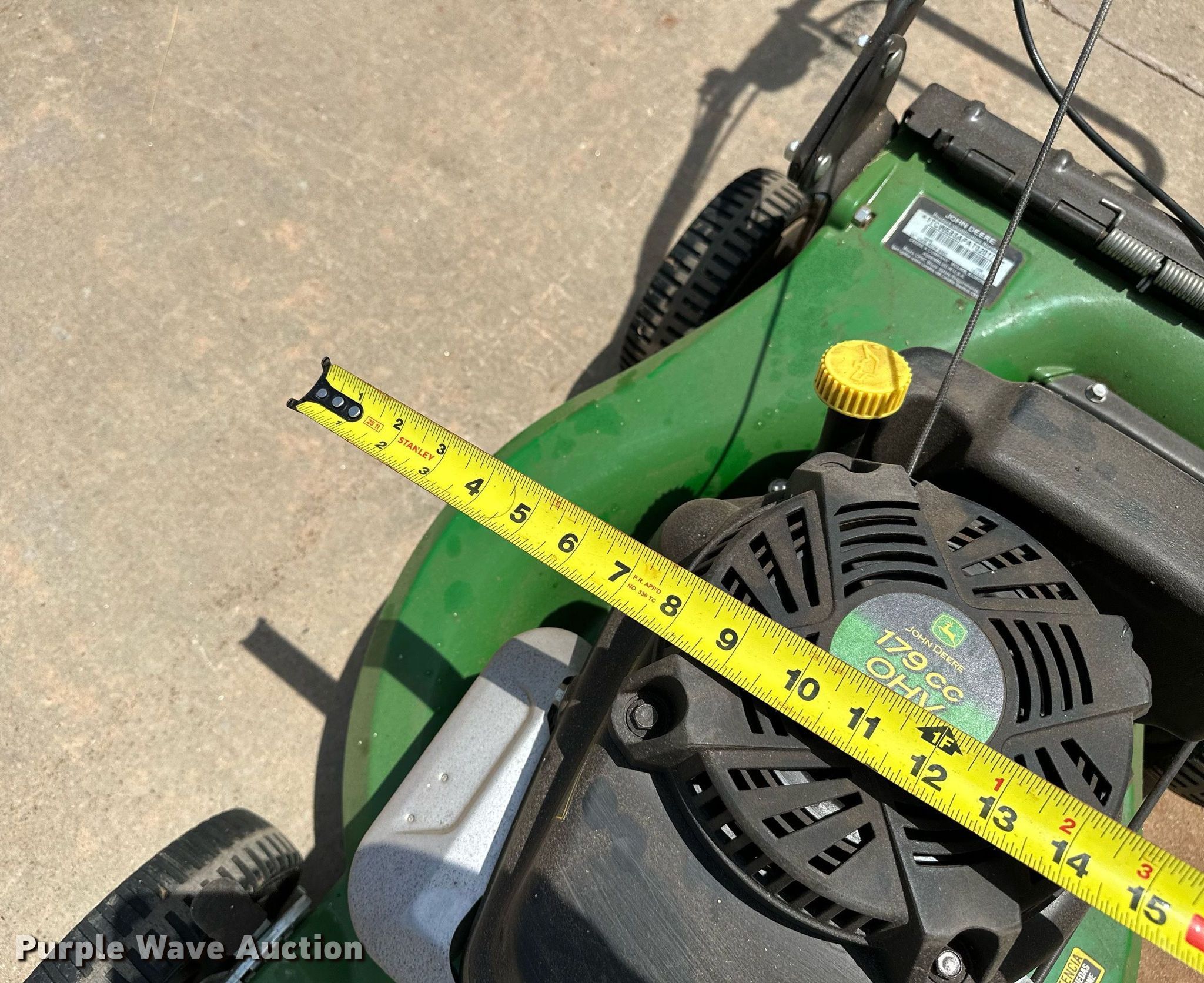 John Deere WE85 lawn mower. Cutting width: 21", Serial: 1TCWE85APAT020177. Engine Kawasaki , Displacement: 179 cc, Cylinders: 1, Fuel type: Gas. Features Self- propelled. Cleveland County. 2550 W Franklin Rd. Norman, OK 73069
