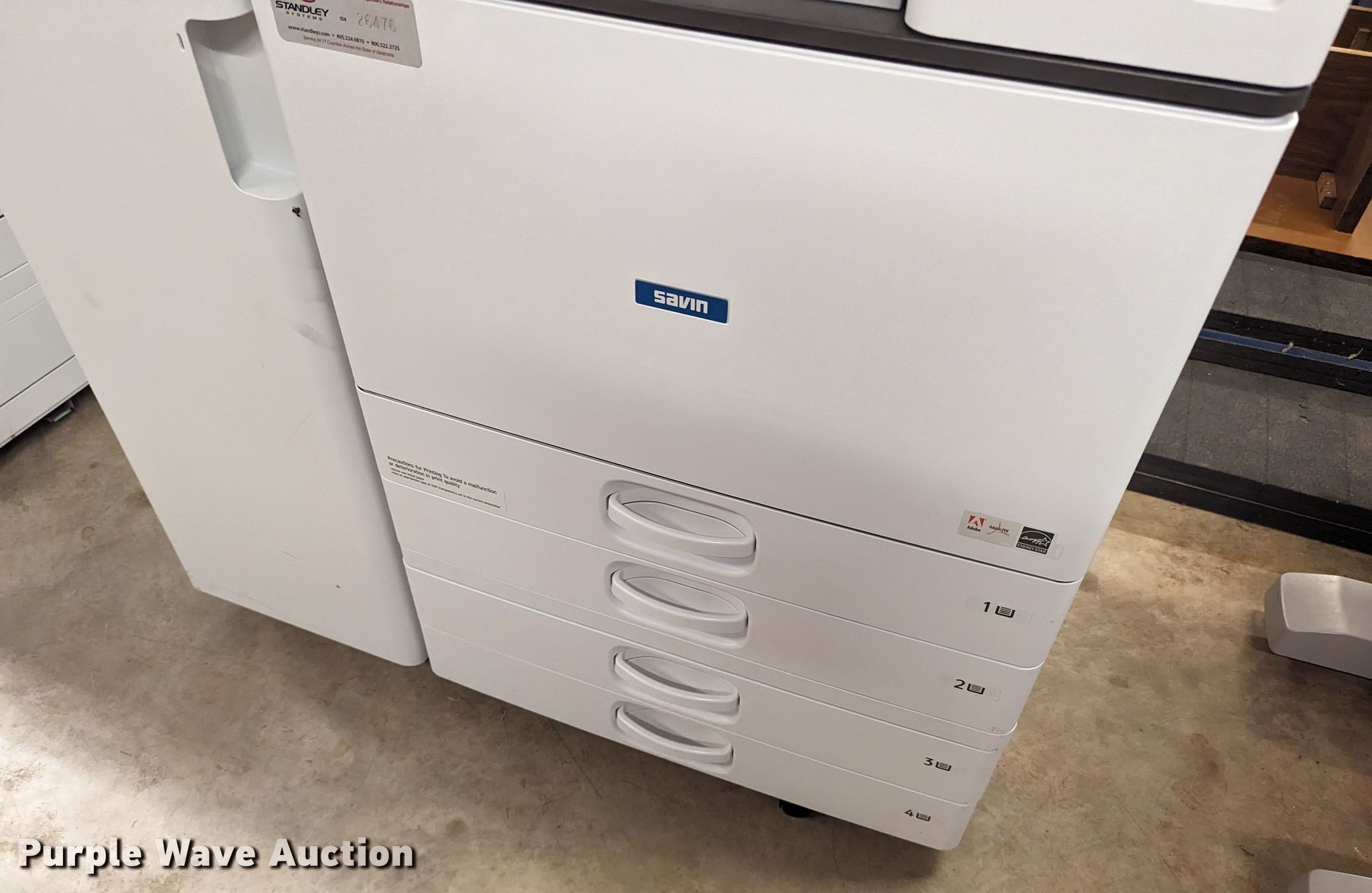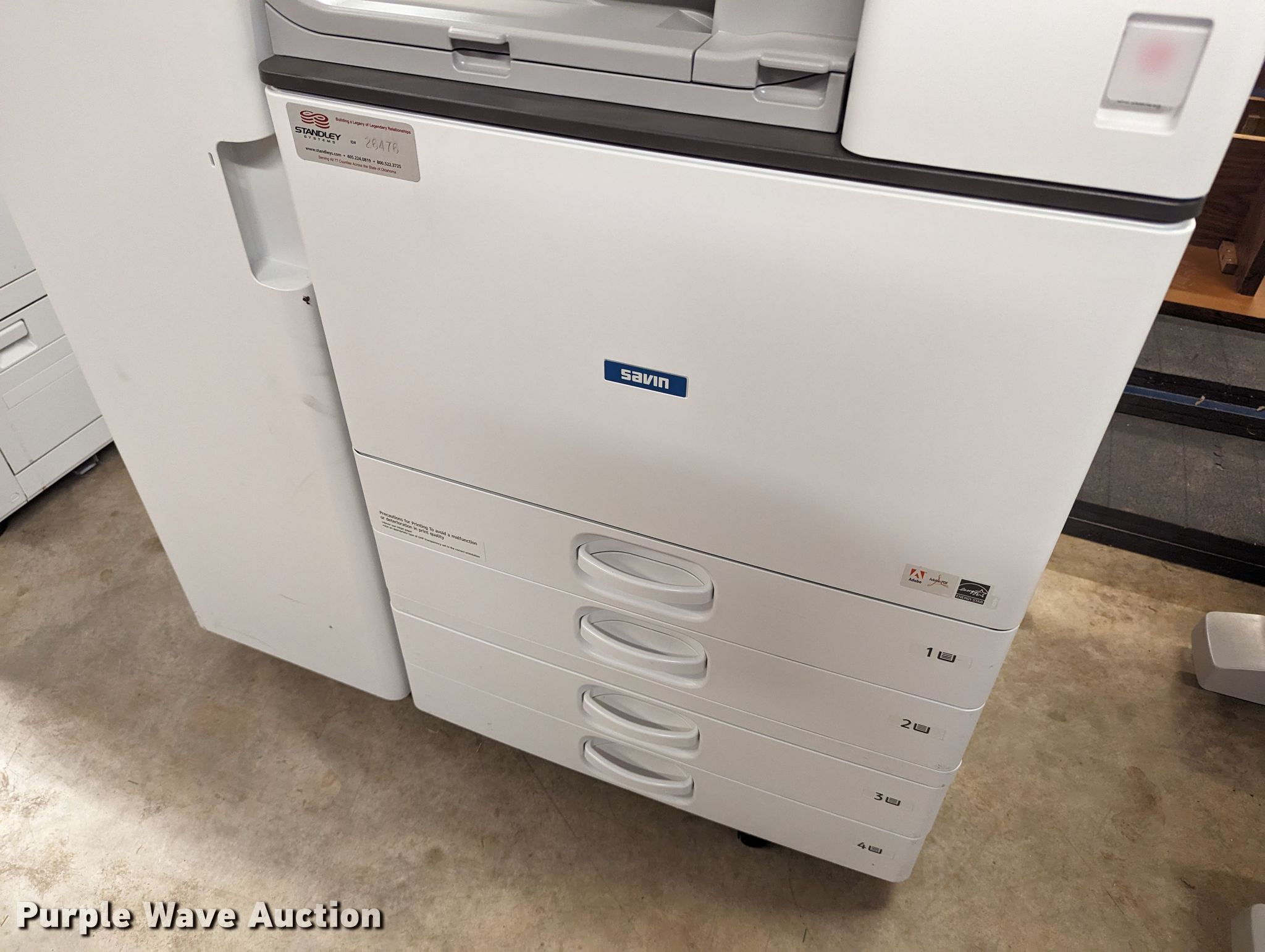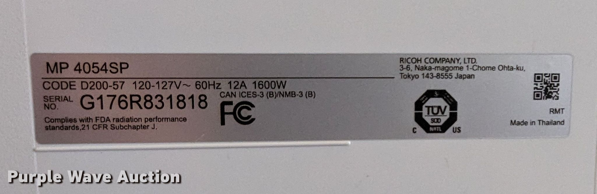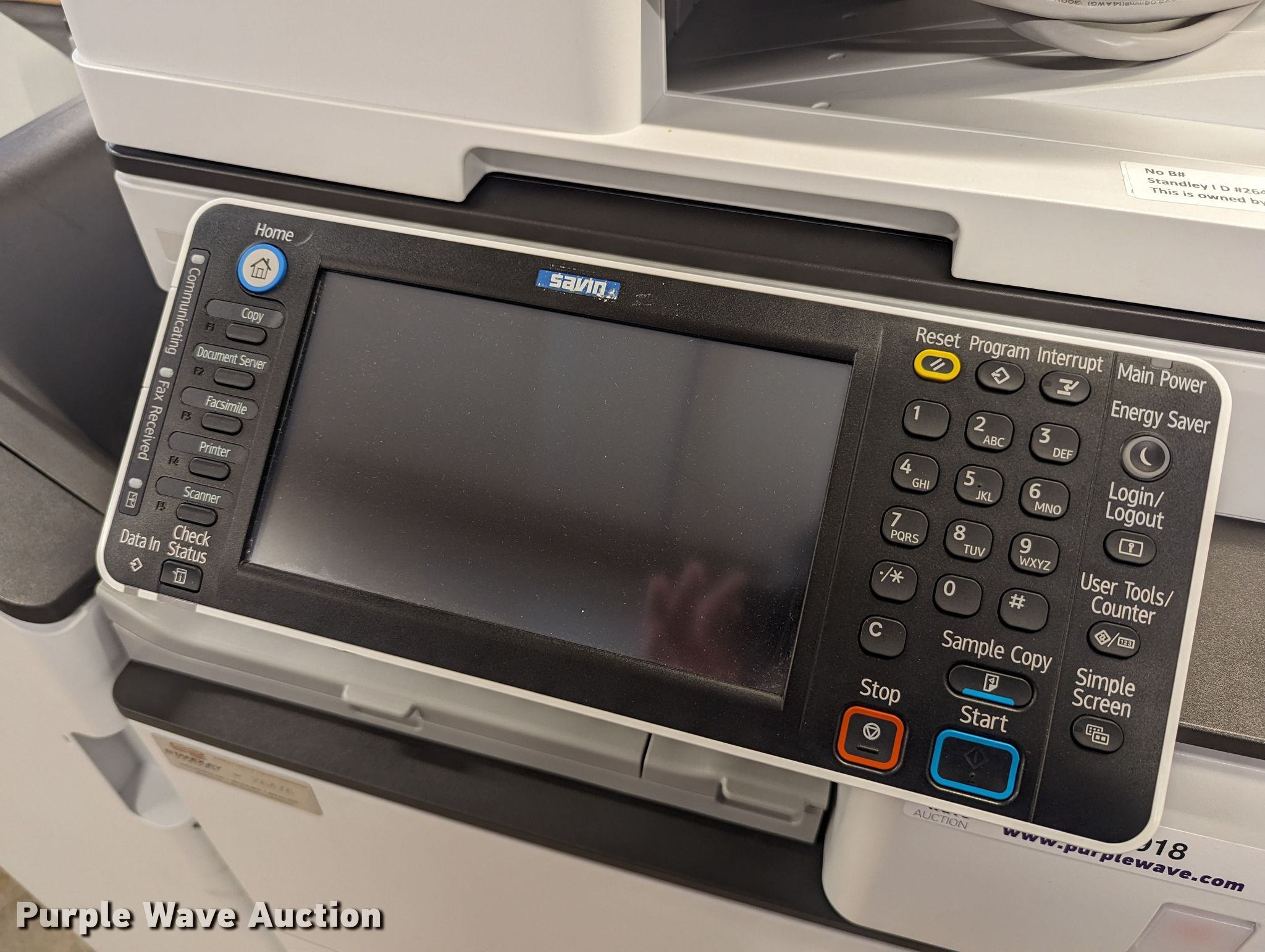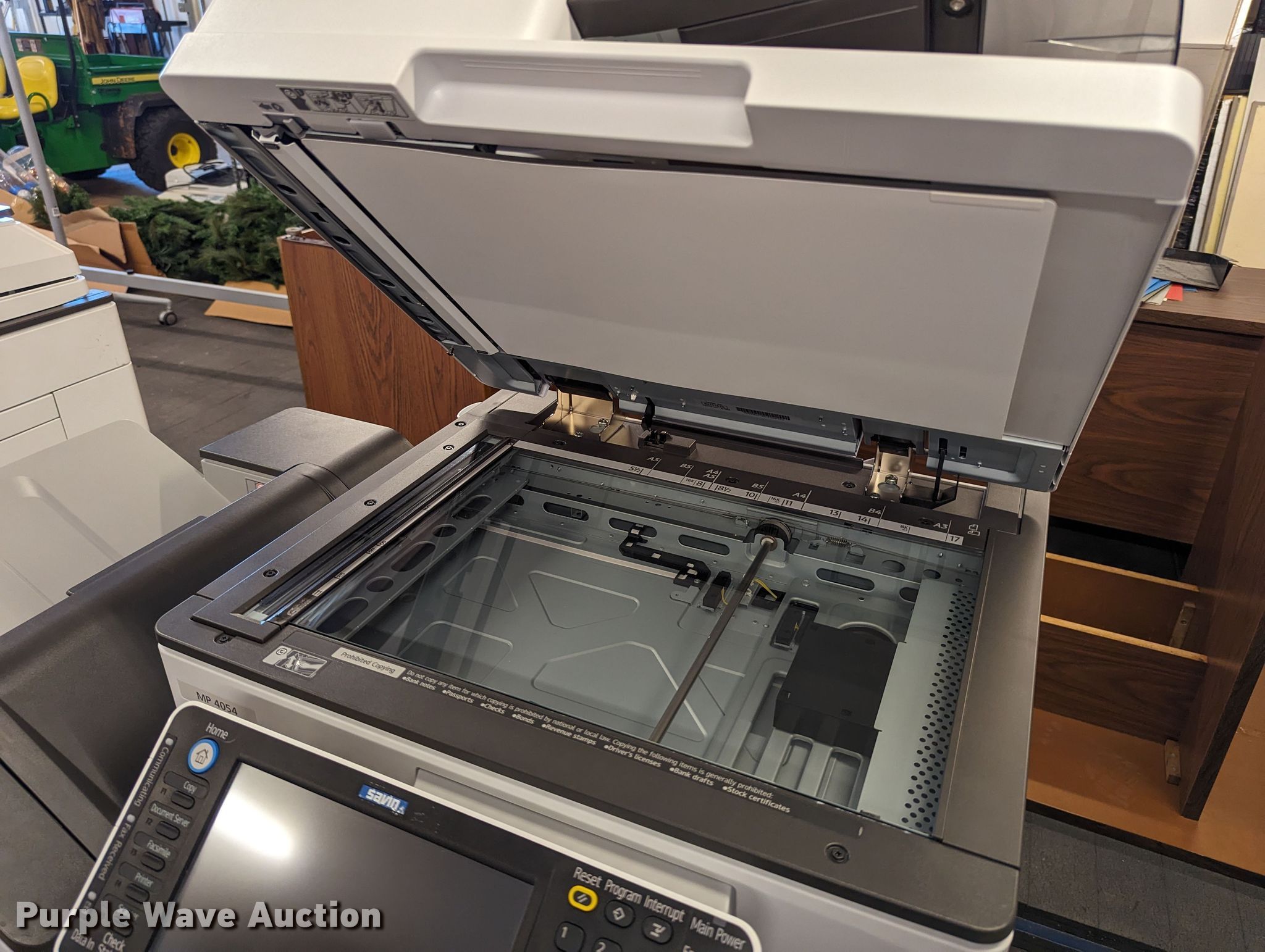 Purple Wave is selling a used Copy or Printing Machine in Oklahoma. This item is a Savin MP 4054 multifunction printer with the following: Serial: G176R831818, Unit #: 26476