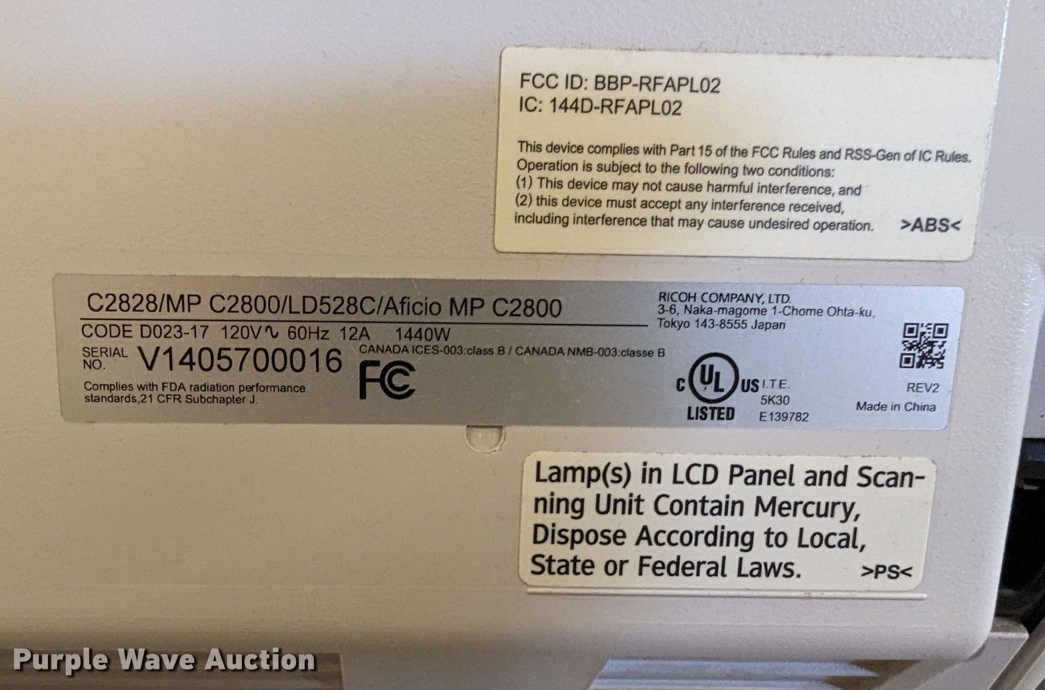 Purple Wave is selling a used Copy or Printing Machine in Oklahoma. This item is a (2) multifunction printers with the following: Serial: V0500601127