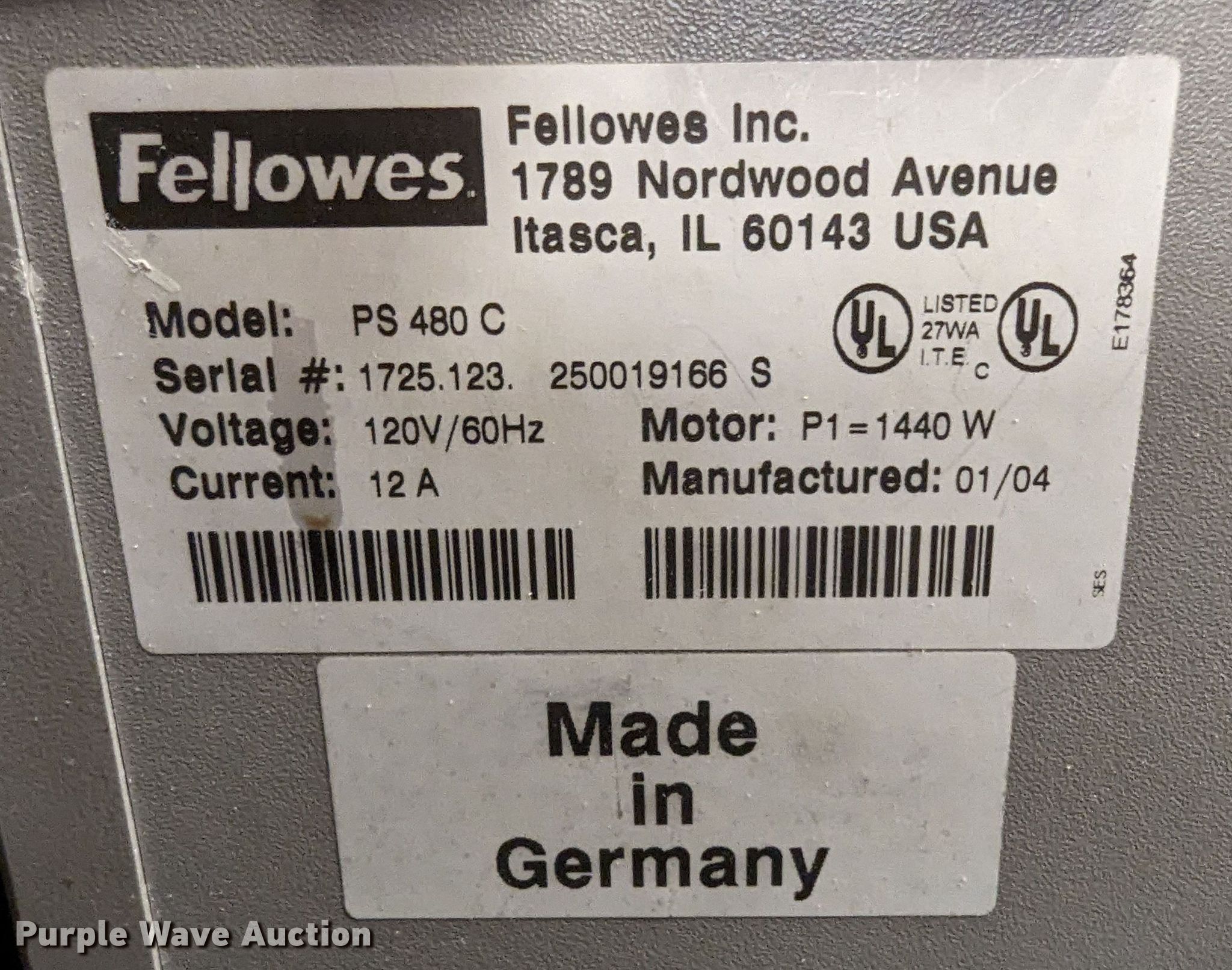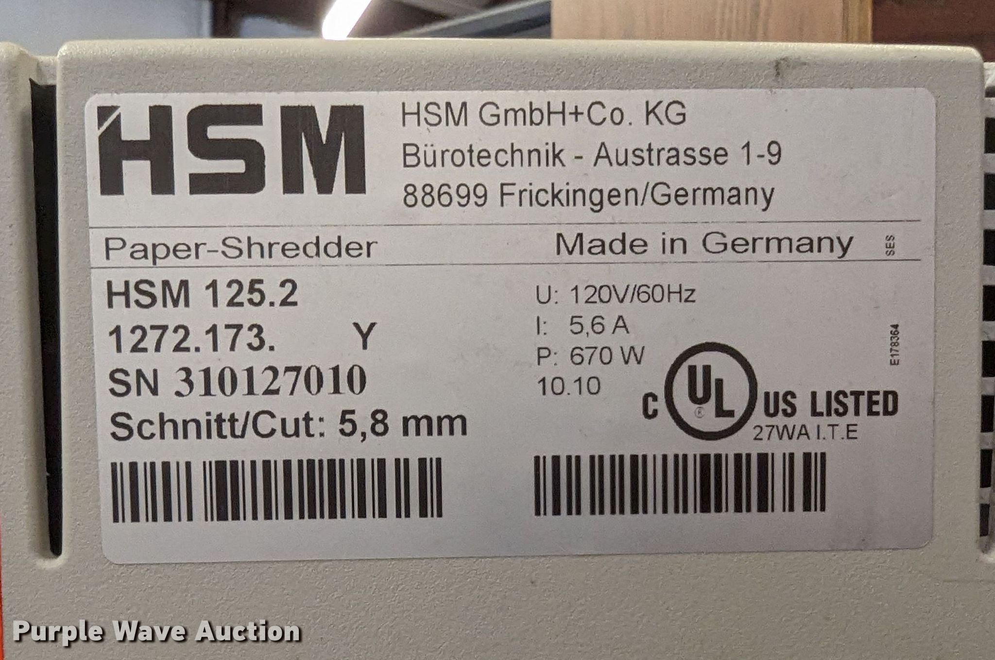 (2) shredders. HSM 125.2. Serial: 310127010, Unit #: Z221.0001. Fellowes Powershred 480C Unit #: B220.0008. Cleveland County. 2550 W Franklin Rd. Norman, OK 73069