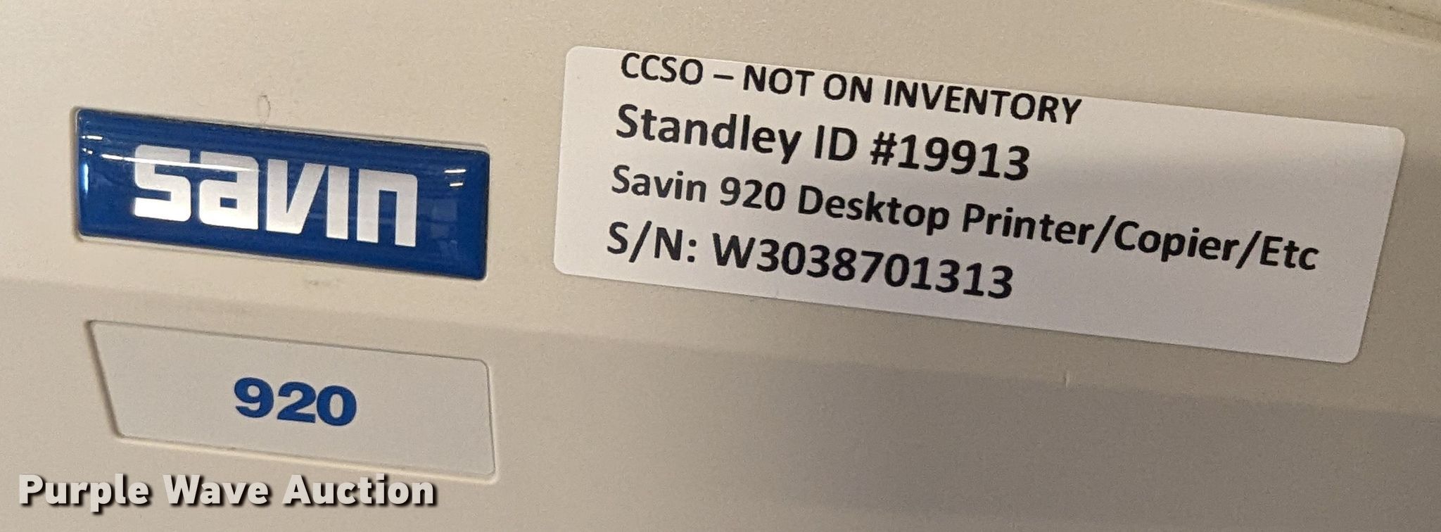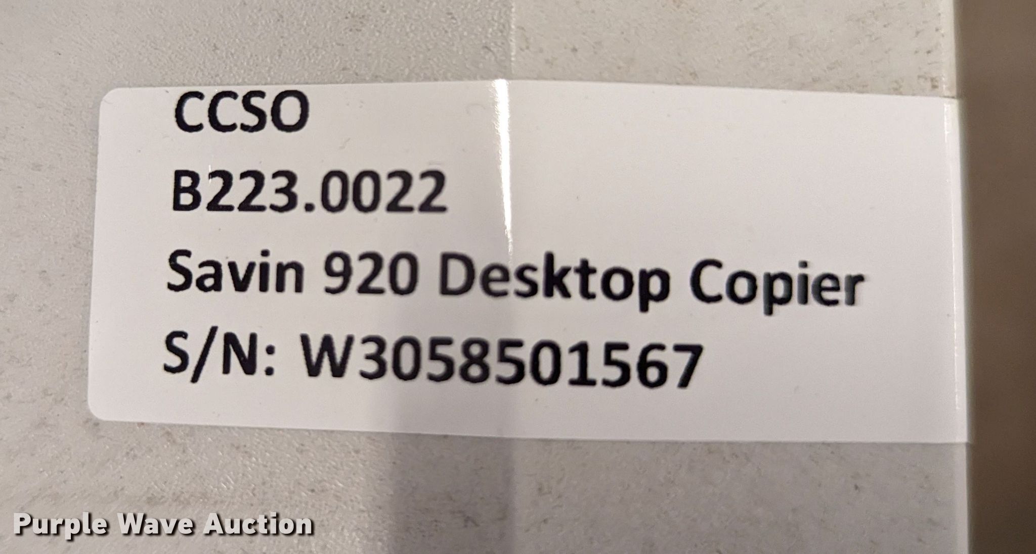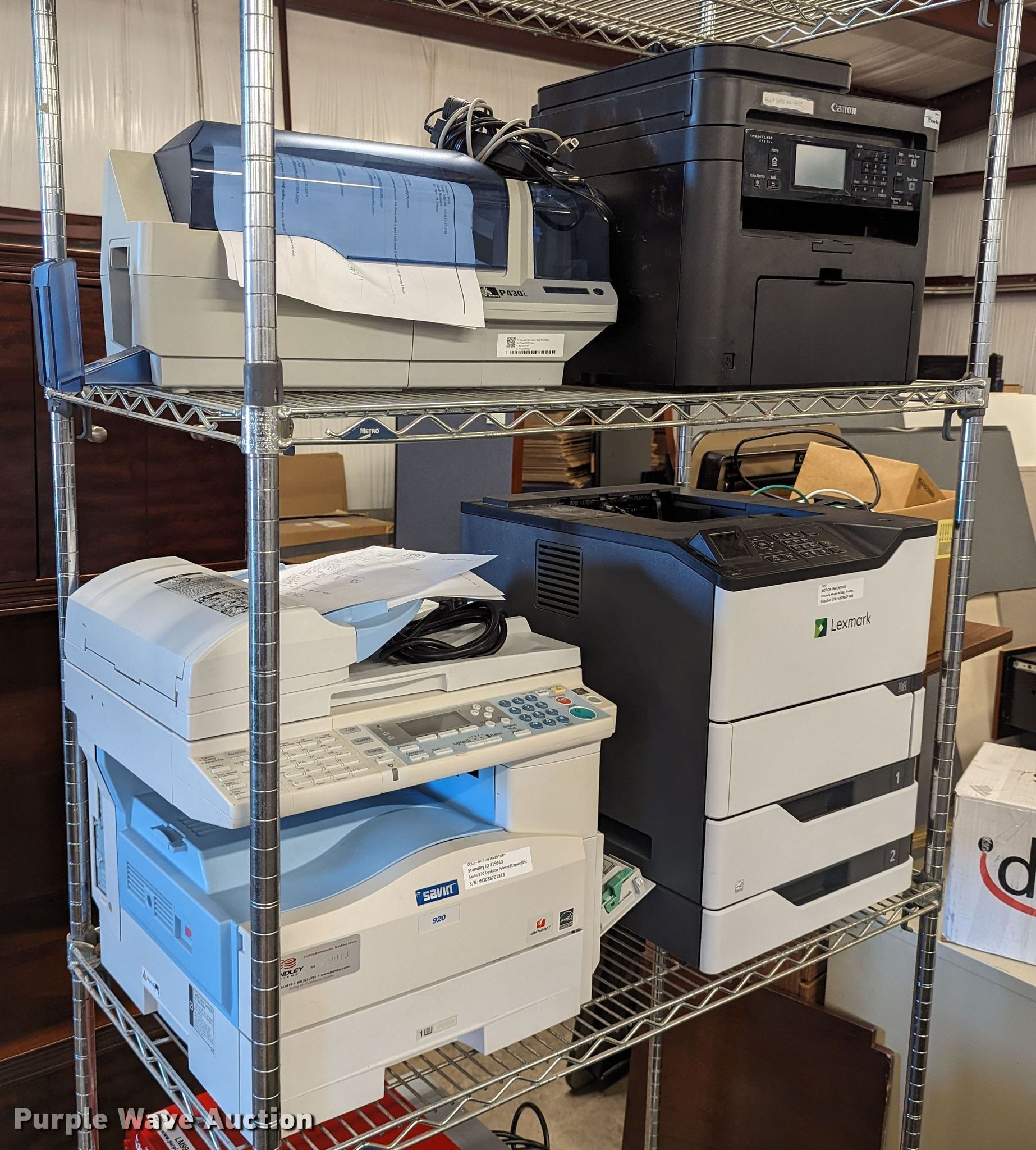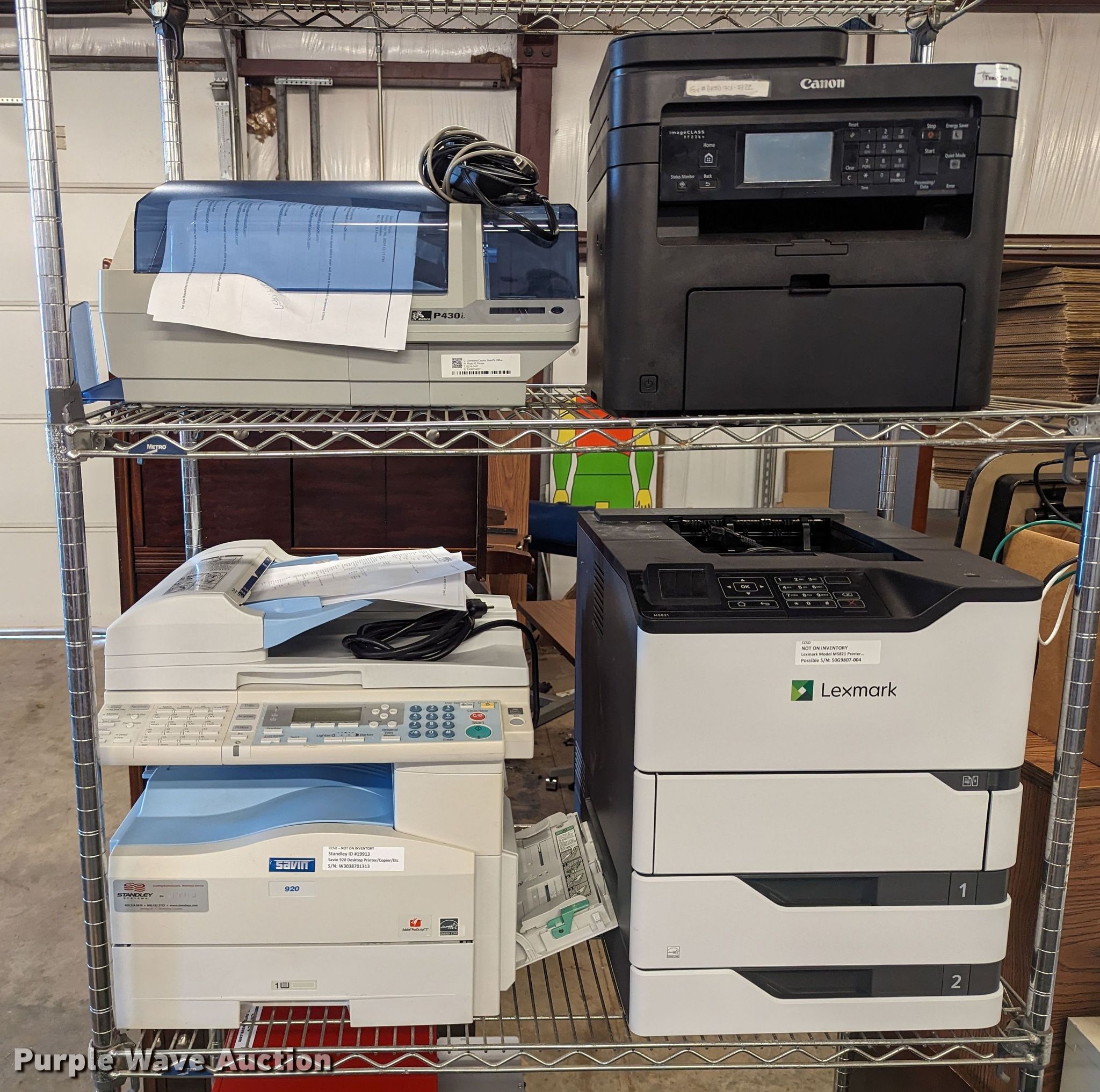 Purple Wave is selling a used Copy or Printing Machine in Oklahoma. This item is a (6) copier/printers with the following: (2) Savin 920, Lexmark MS821, Canon ImageClass MF236n, HP LaserJet 1200, Zebra P430i