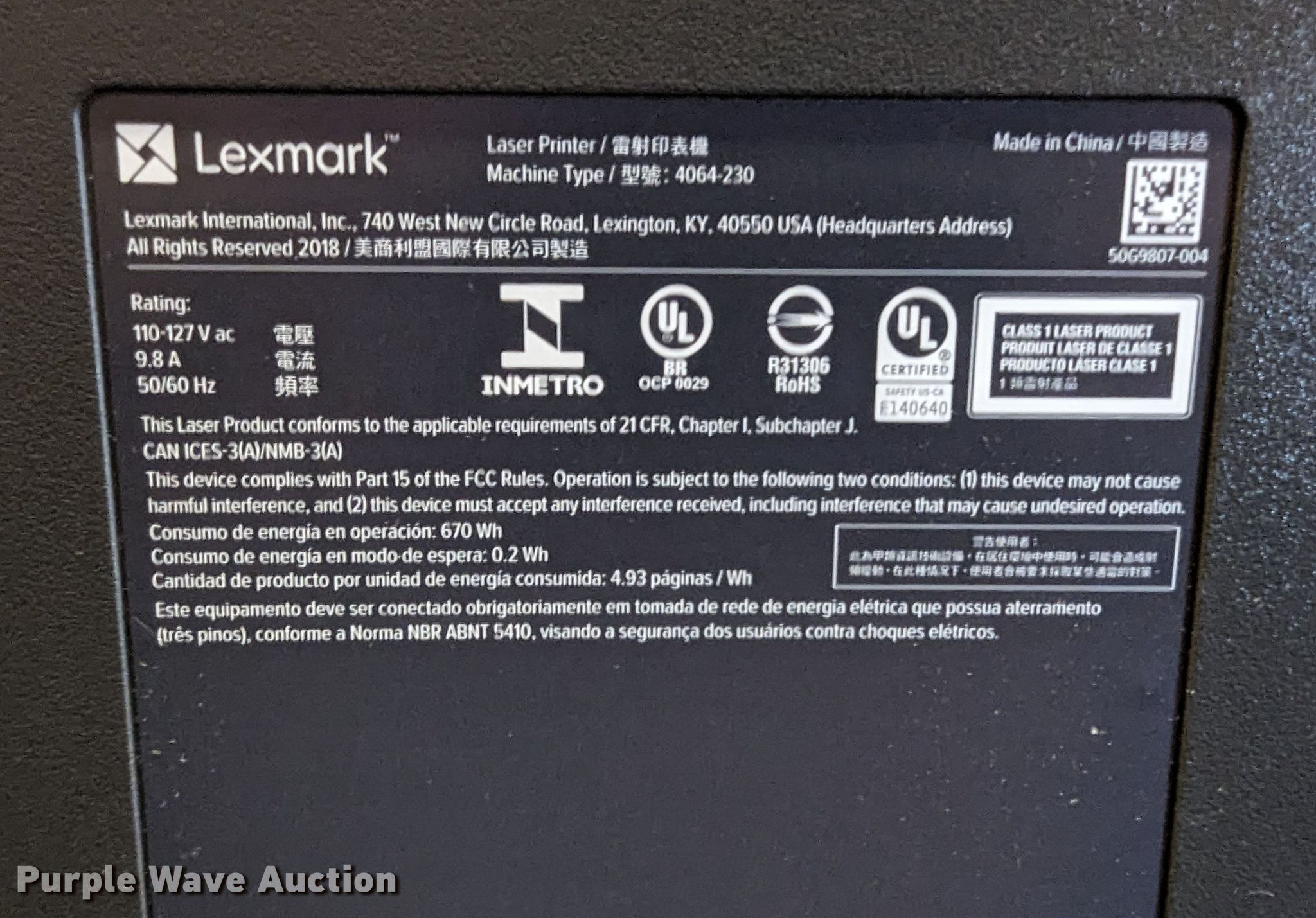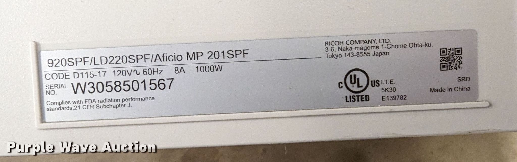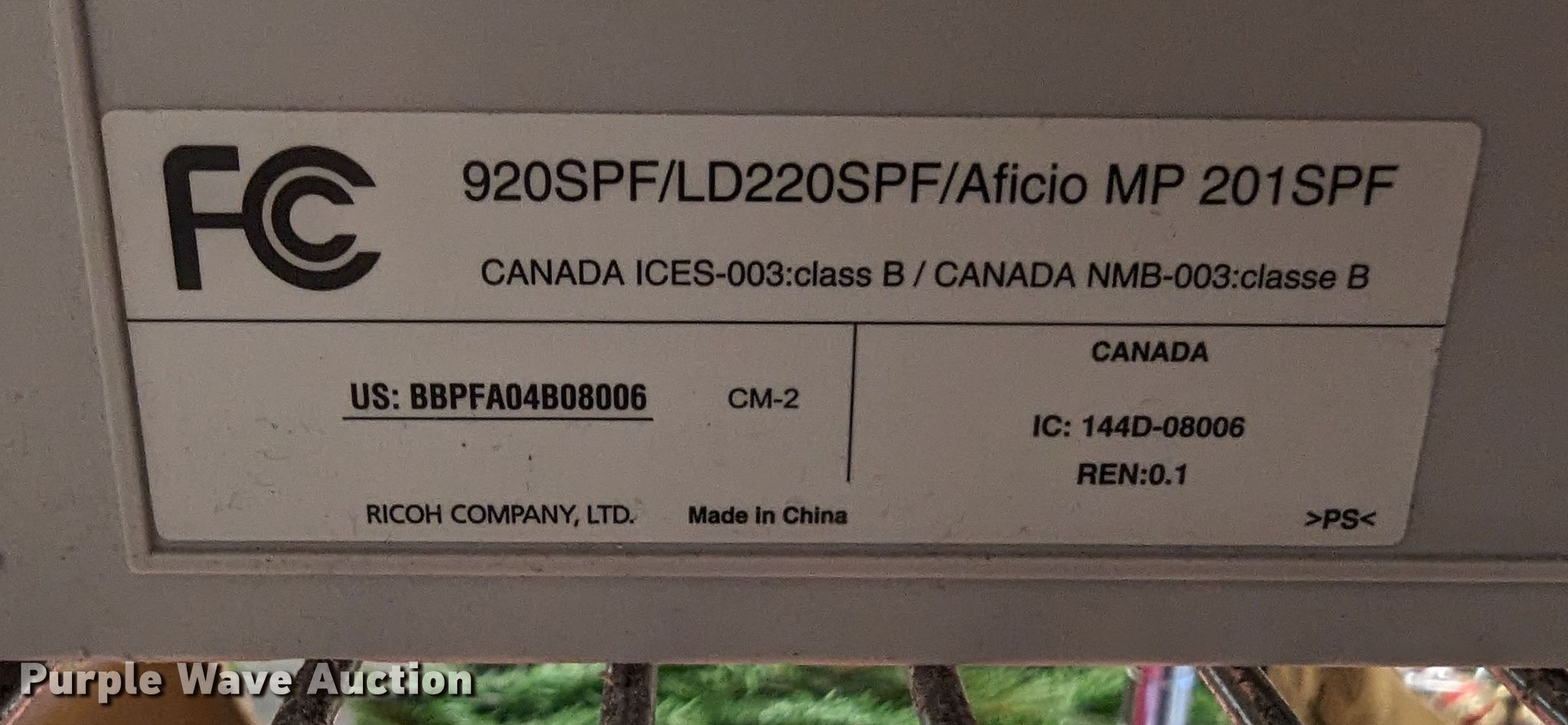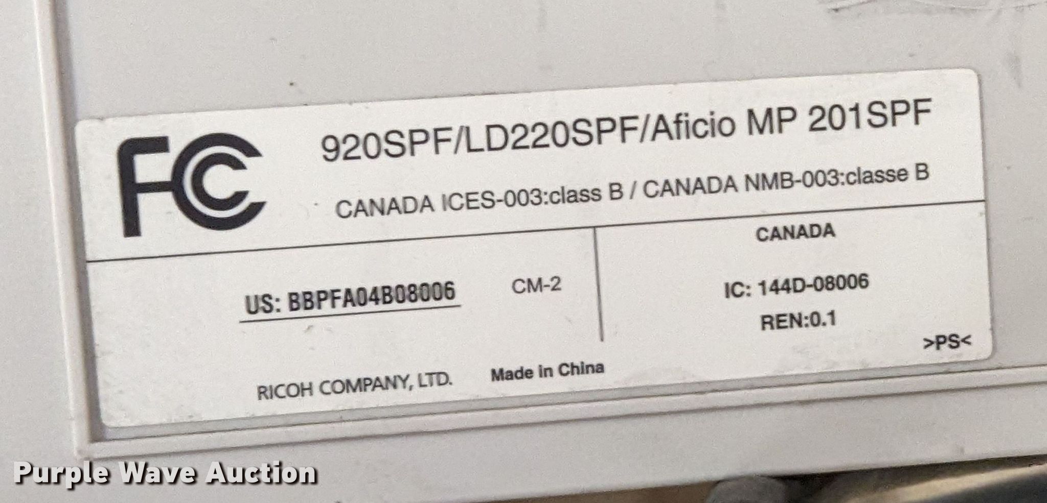 Purple Wave is selling a used Copy or Printing Machine in Oklahoma. This item is a (6) copier/printers with the following: (2) Savin 920, Lexmark MS821, Canon ImageClass MF236n, HP LaserJet 1200, Zebra P430i