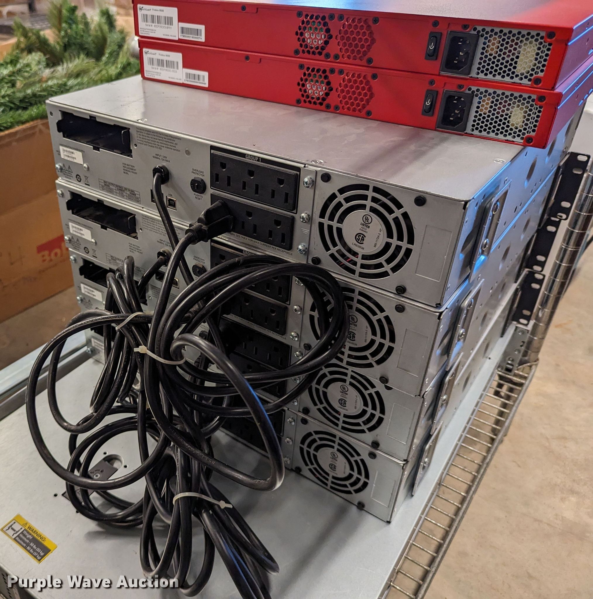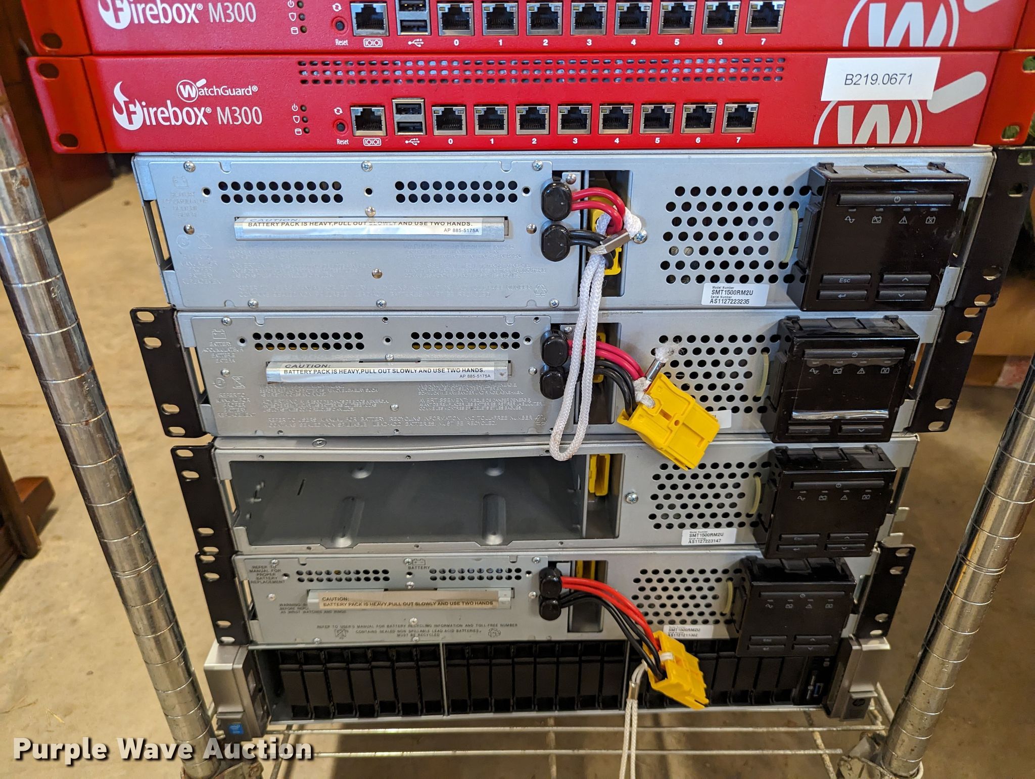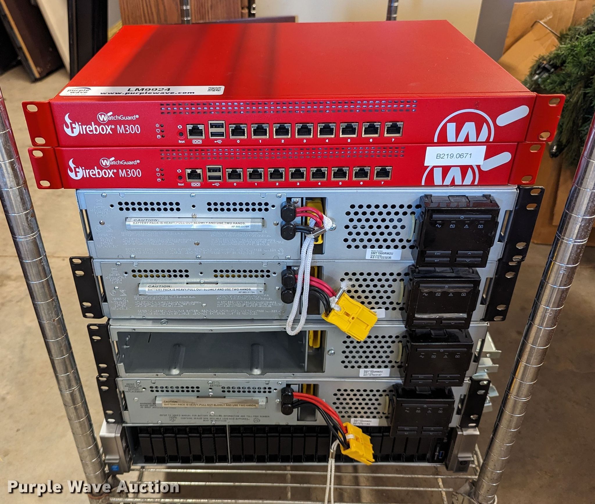 Purple Wave is selling a used Electronics in Oklahoma. This item is a Electronics with the following: (2) WatchGuard Firebox M300 firewalls, (4) APC SMT1500RM2U battery power supply backups, DuraComm cabinet