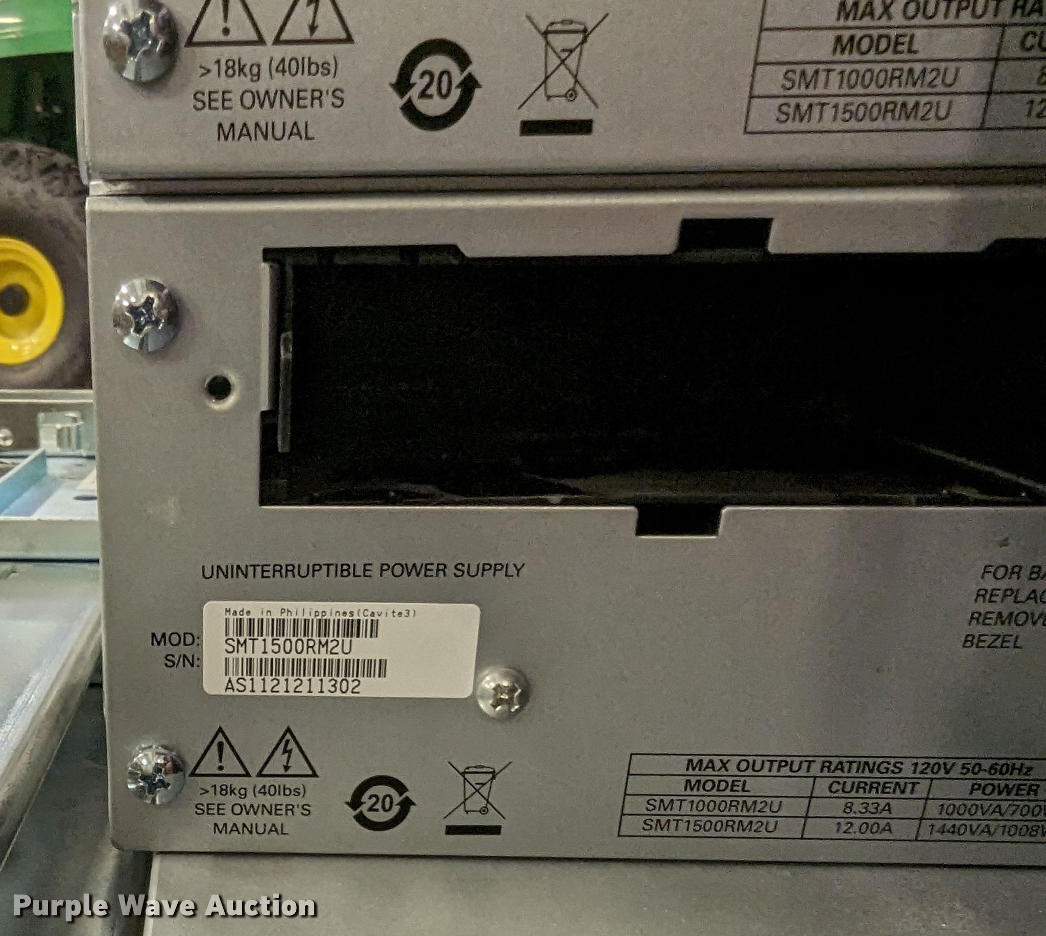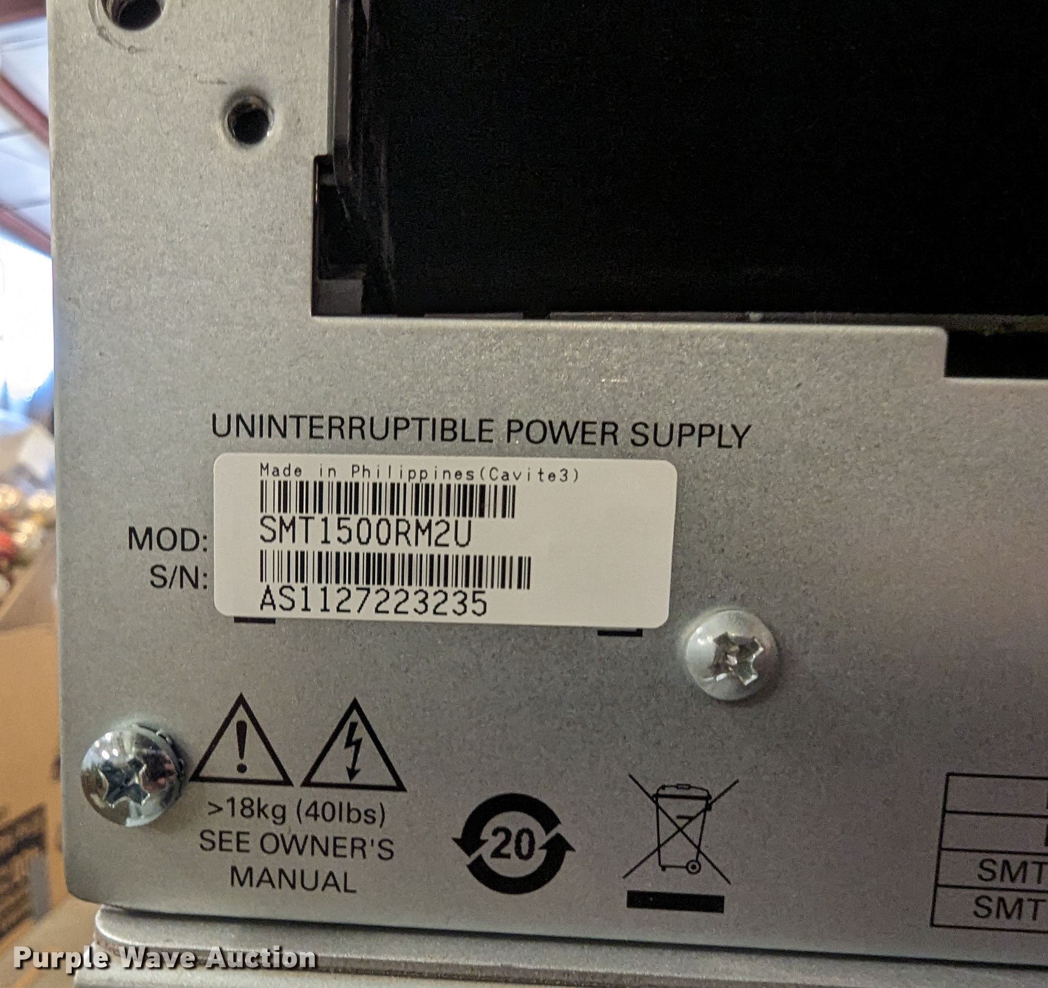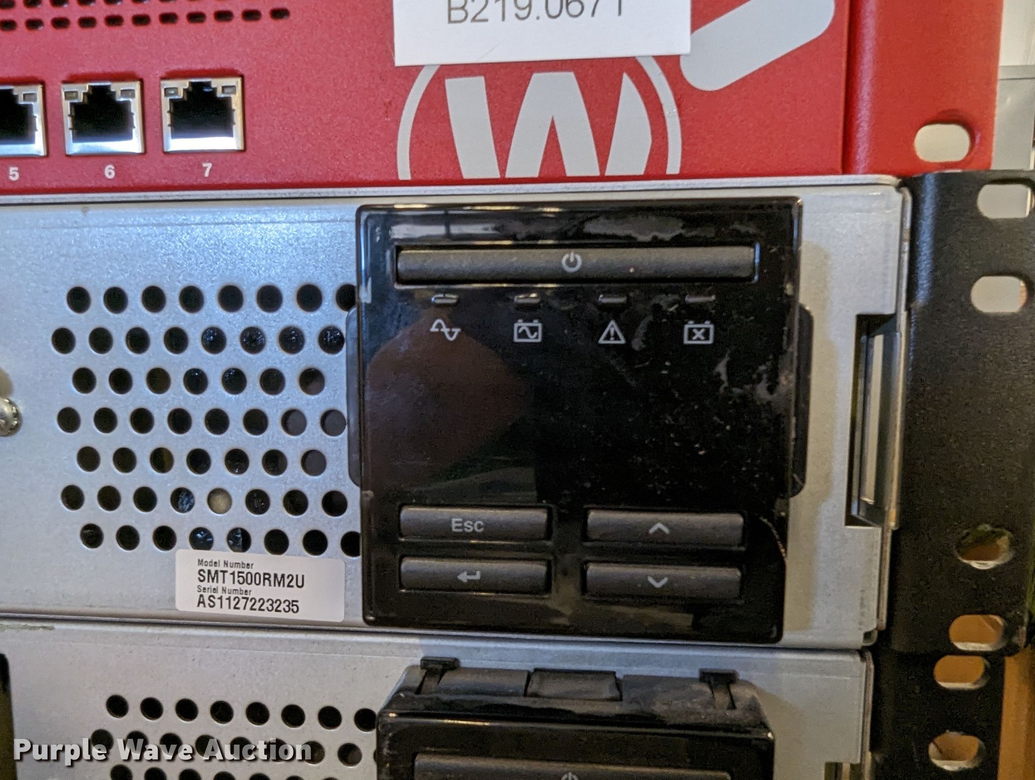 Purple Wave is selling a used Electronics in Oklahoma. This item is a Electronics with the following: (2) WatchGuard Firebox M300 firewalls, (4) APC SMT1500RM2U battery power supply backups, DuraComm cabinet