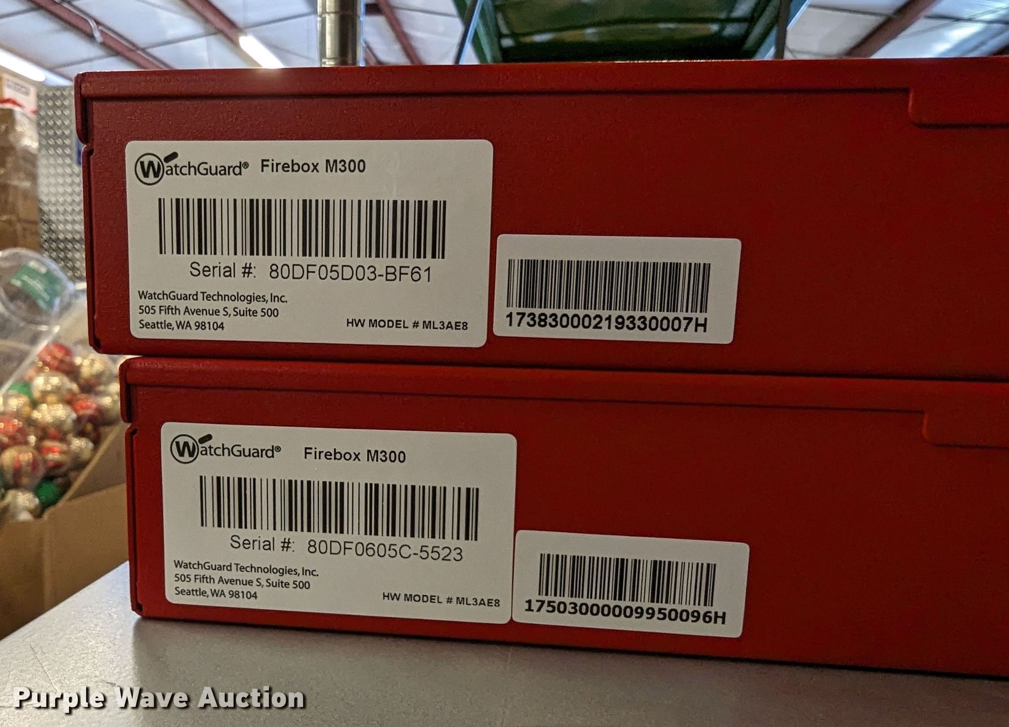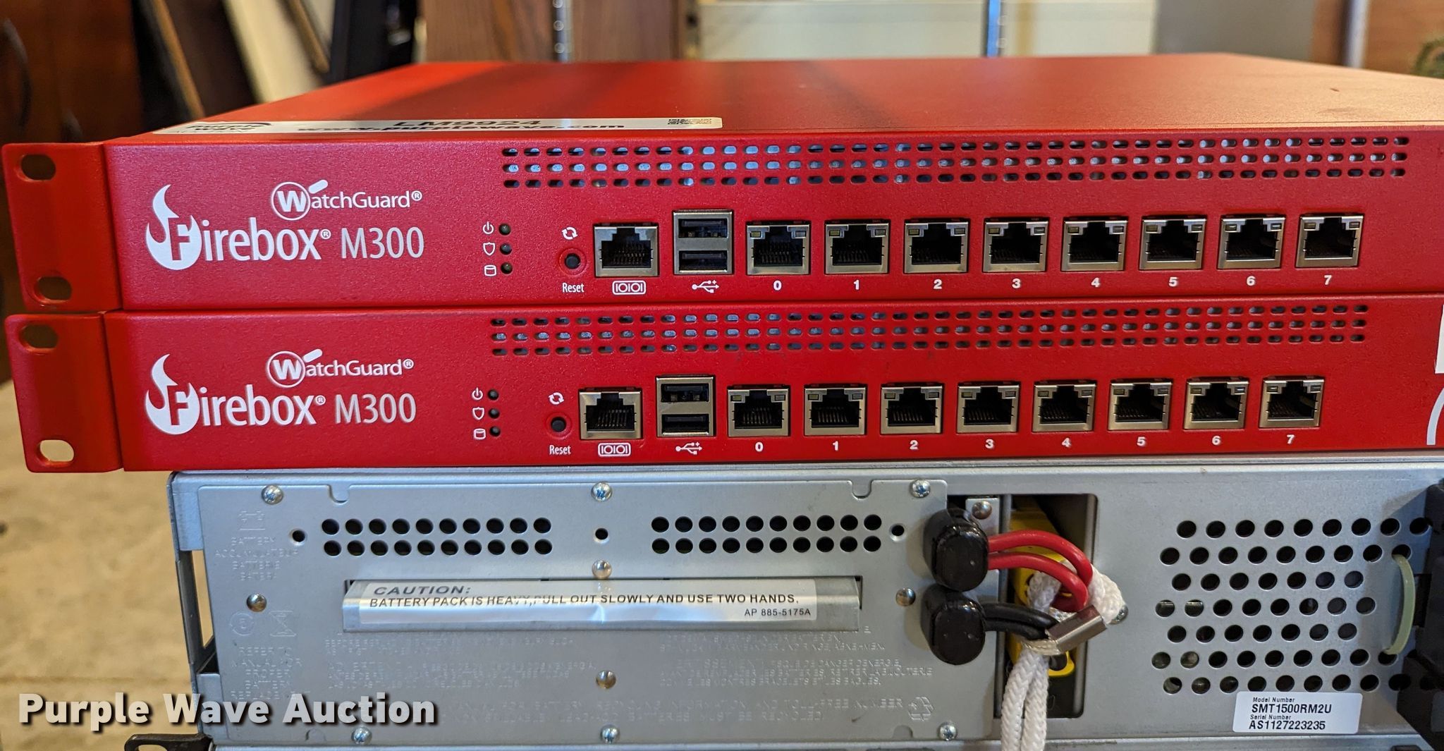 Electronics. (2) WatchGuard Firebox M300 firewalls, (4) APC SMT1500RM2U battery power supply backups, DuraComm cabinet. Purple Wave reserves the right to obtain additional buyer information prior to item removal. Cleveland County. 2550 W Franklin Rd. Norman, OK 73069