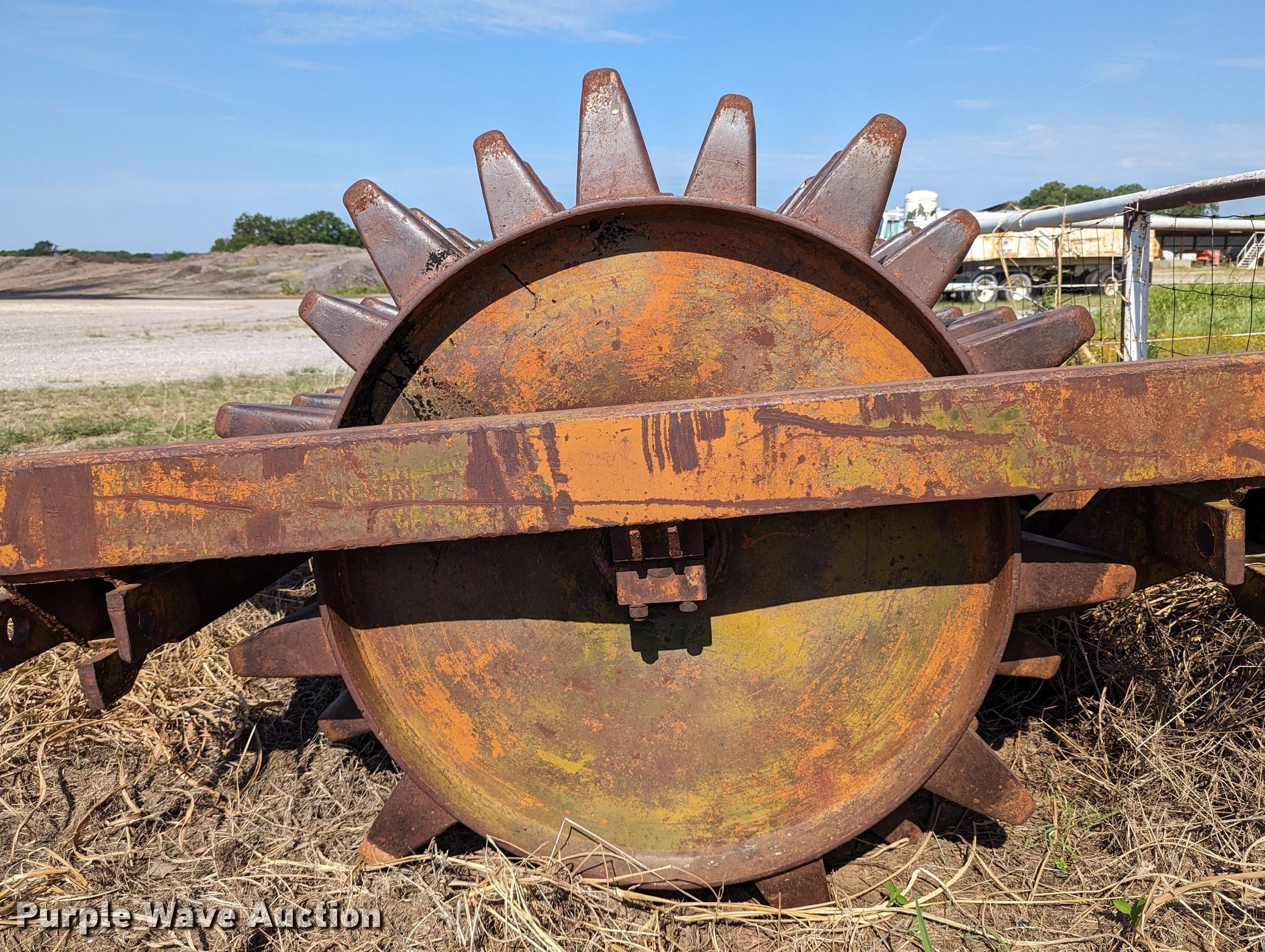 Purple Wave is selling a used Pull Type Roller Compactor in Oklahoma. This item is a Wedge foot roller with the following: Drum, Width: 102", Diameter: 60"