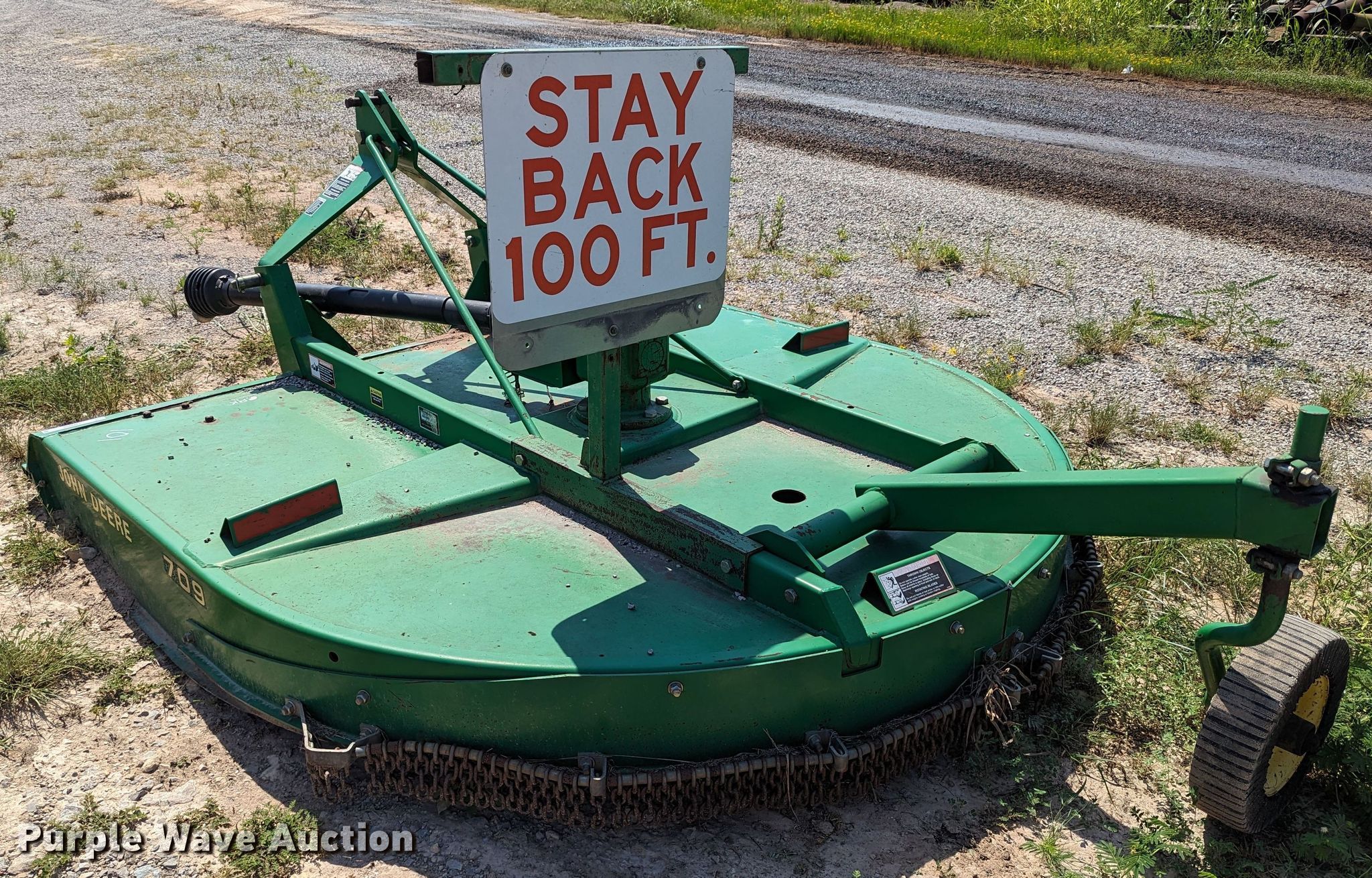 John Deere 709 rotary mower. Serial: W00709C070085, Unit #: 101. Features Width: 84", PTO: 540, Hitch: Three point. Tires Solid. Cleveland County. 9050 S US-77. Noble, OK 73068