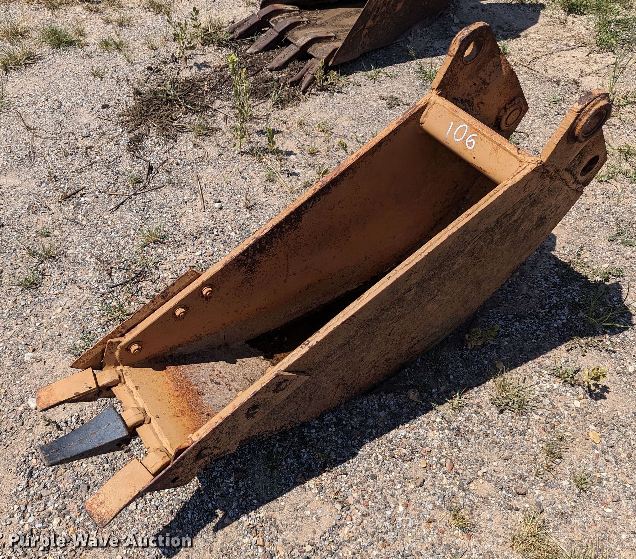Purple Wave is selling a used Backhoe Attach. in Oklahoma. This item is a 12"W backhoe bucket with the following: Teeth: 3, Unit #: 106
