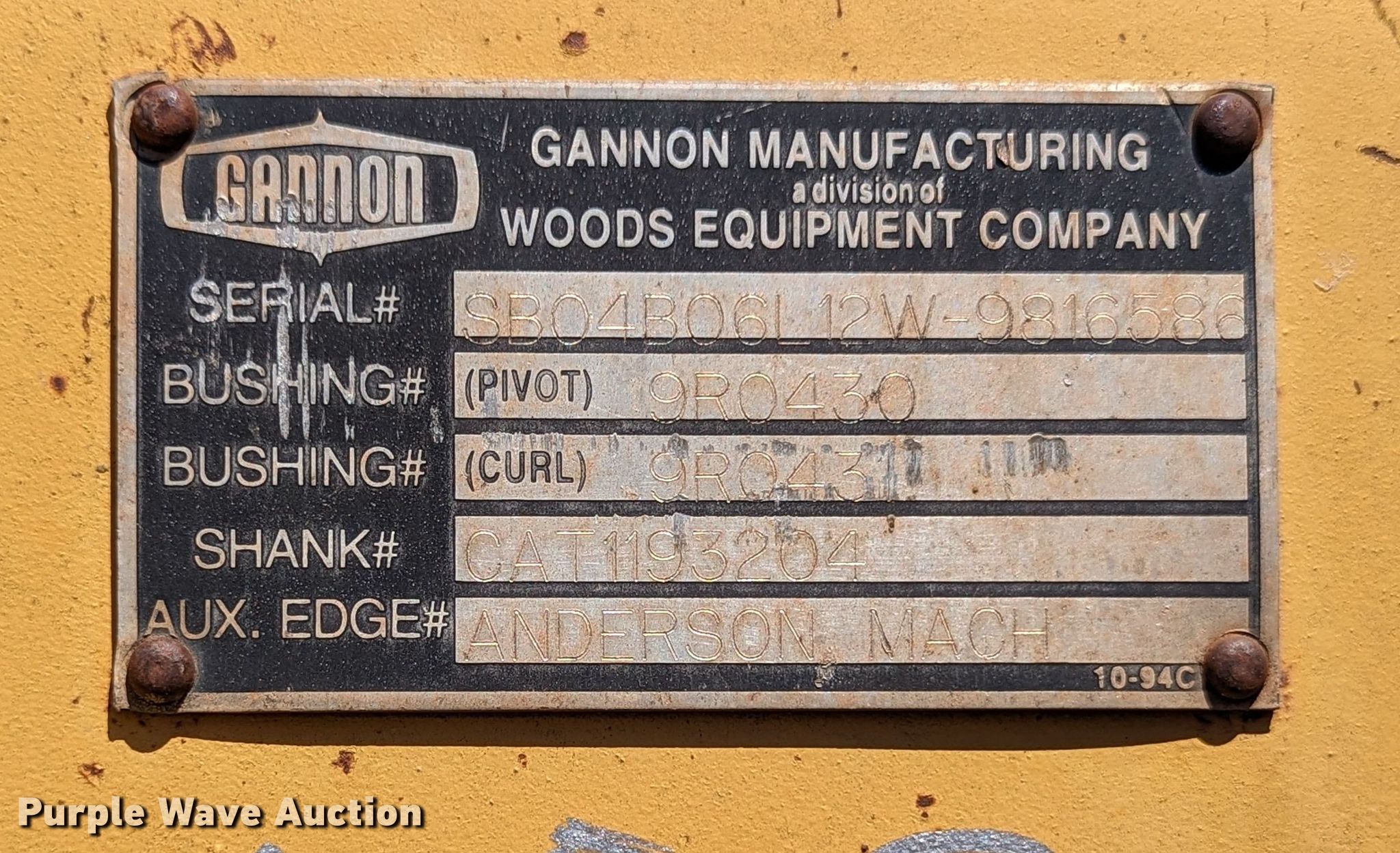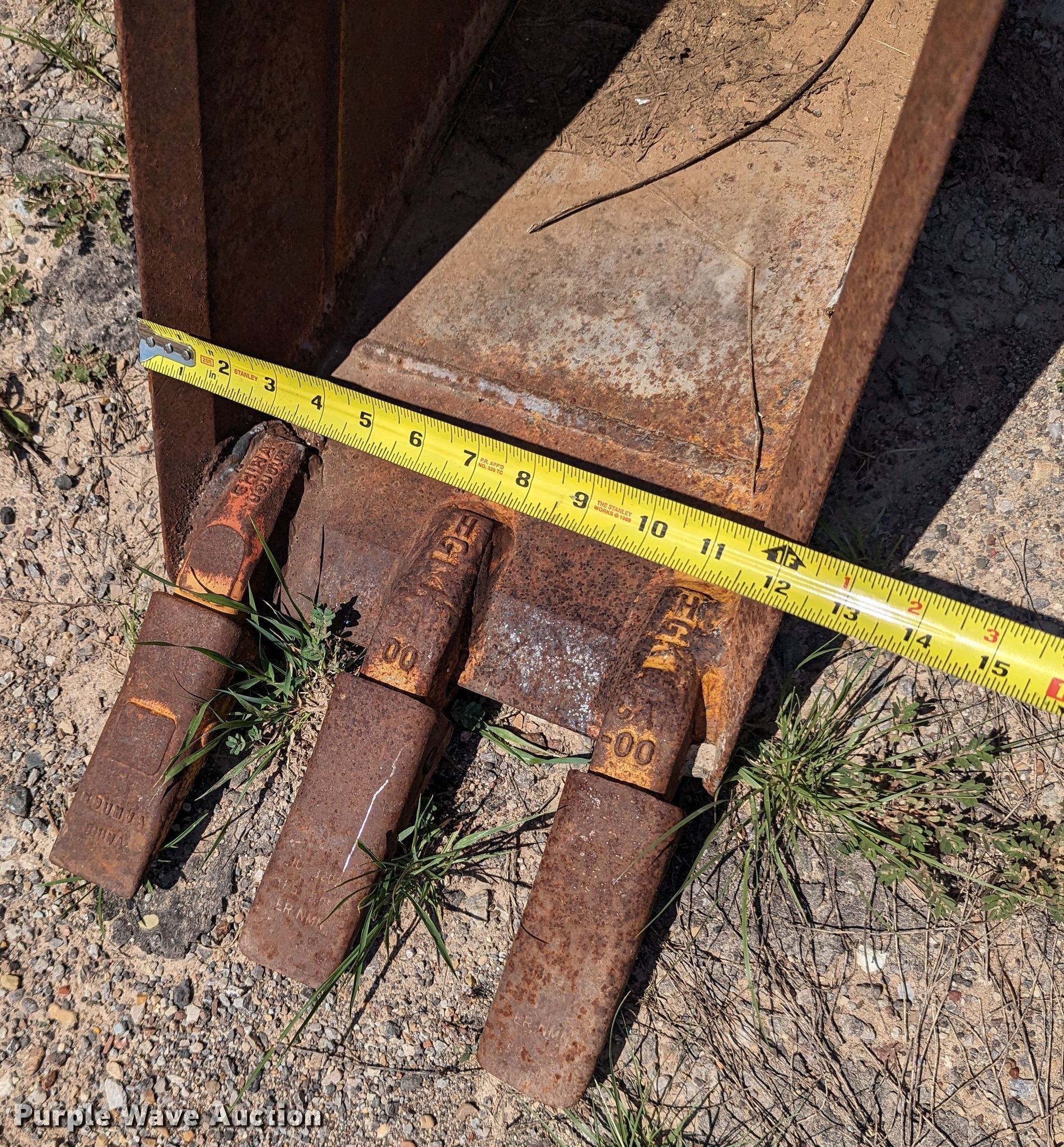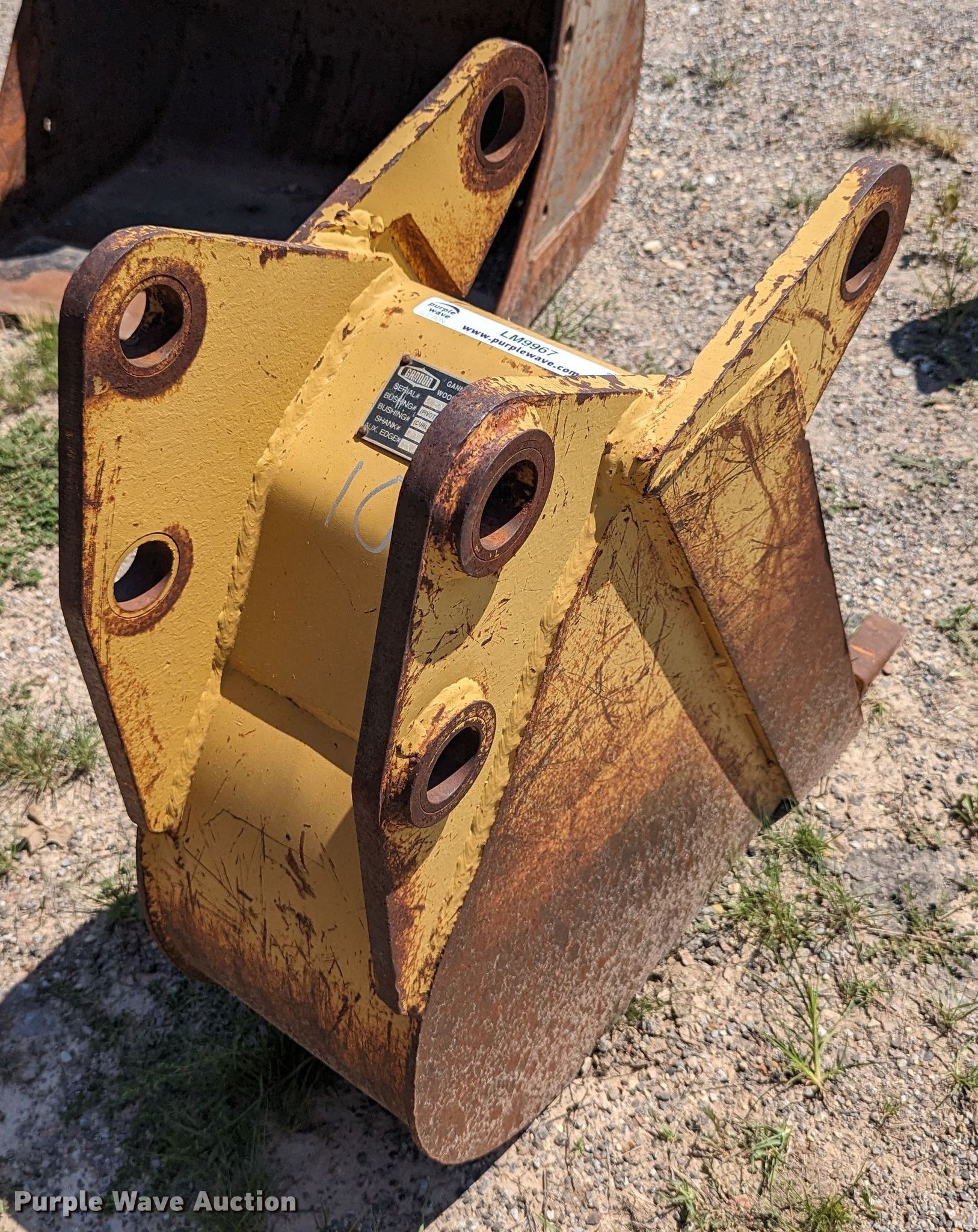 Purple Wave is selling a used Backhoe Attach. in Oklahoma. This item is a Cannon 12"W backhoe bucket with the following: Teeth: 3, Serial: SB04B06L12W-9816586, Unit #: 108