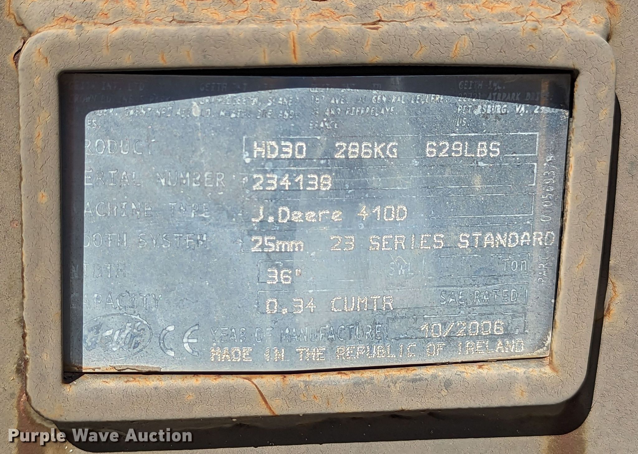 Purple Wave is selling a used Excavator Attach. in Oklahoma. This item is a 2006 Geith HD30 36"W excavator bucket with the following: Serial: 234138, Unit #: 105