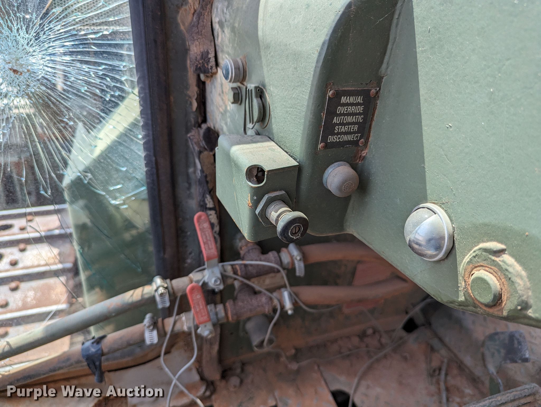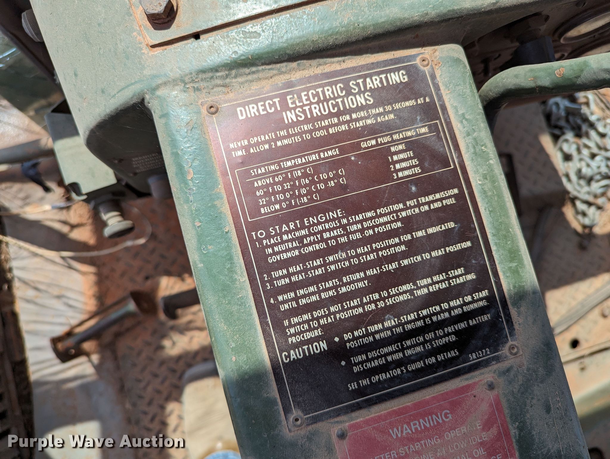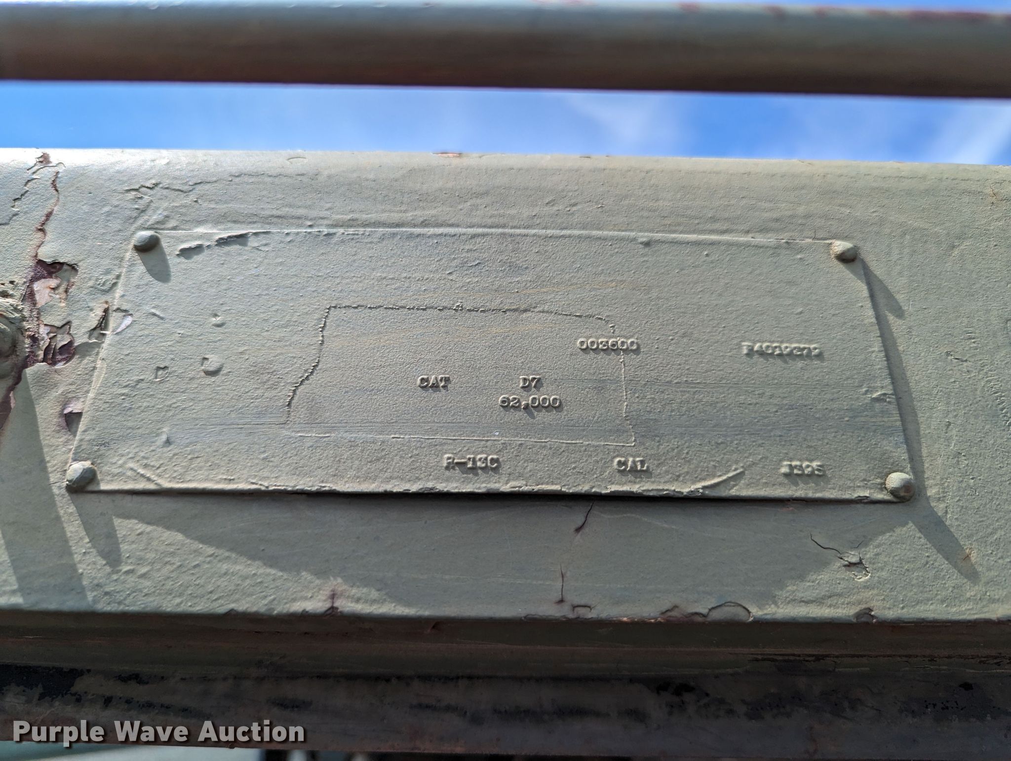 Caterpillar D7F dozer. Hours: Unknown, Serial: 61G877. Engine Caterpillar , Cylinders: 6, Fuel type: Diesel. Transmission Powershift, 3F - 3R. Operators station Enclosed cab, Heat, Steering: Clutch brake. Features Auxiliary hydraulics, Screen guards, Sweeps, Dozer blade Type: Semi-U, Single-tilt, Width: 132" W, Attachments Winch Cable: 1".. Tracks Width: 22", Grouser pads: Single. Notes Glass cracked. Cleveland County. 9050 S US-77. Noble, OK 73068