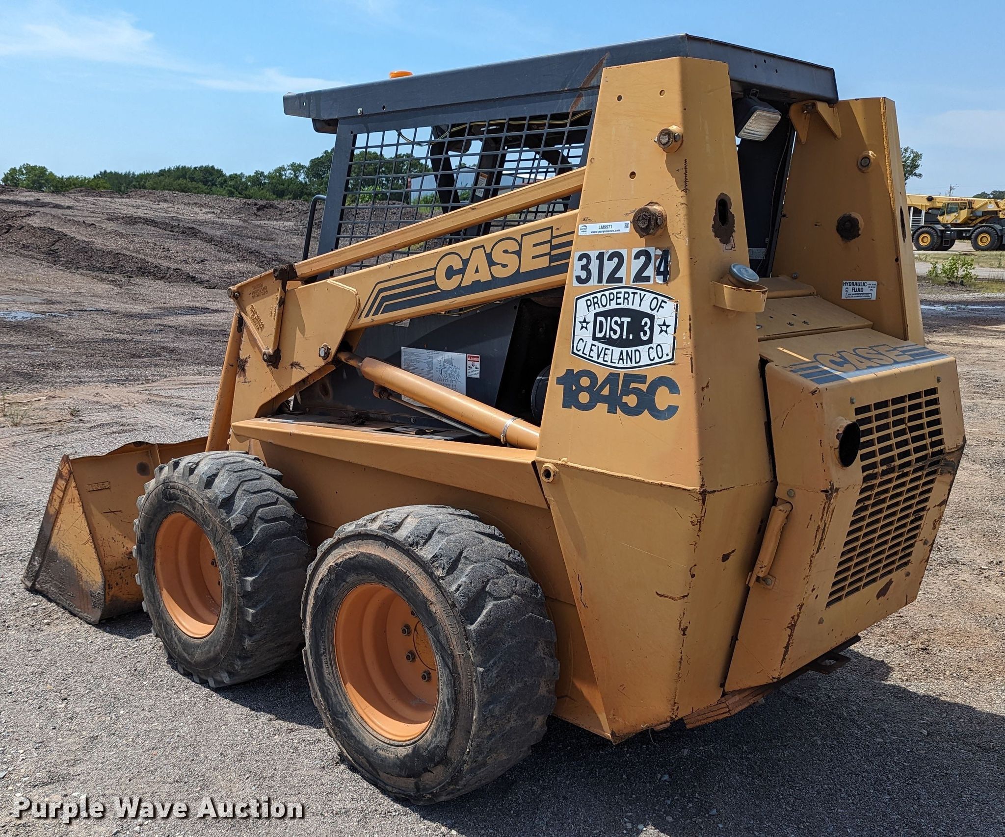 1998 Case 1845C skid steer loader. Hours: 3,114 on meter, Serial: JAF0252631. Engine Case 4-390, Displacement: 3.9L, Cylinders: 4, Fuel type: Diesel, HP: 60. Transmission Hydrostatic. Operators station OROPS, Bucket control: Hand. Features Auxiliary hydraulics, Quick coupler: Manual, Bucket Width: 72". Tires Size: 12-16.5 NHS. Cleveland County. 9050 S US-77. Noble, OK 73068