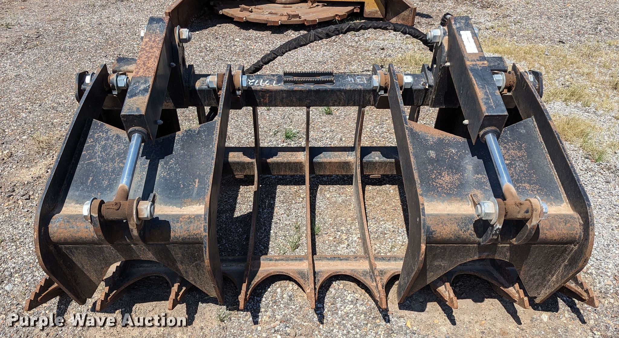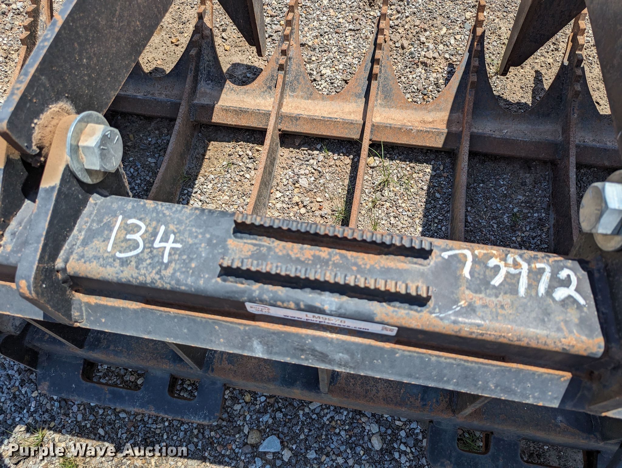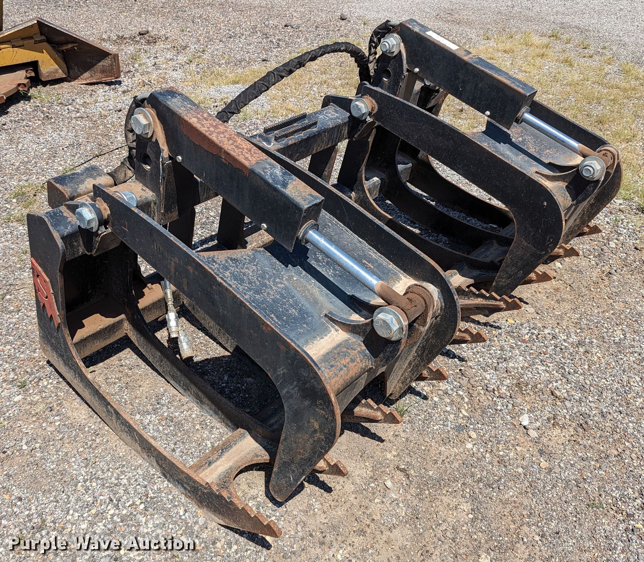 Purple Wave is selling a used Skid Steer Attach. in Oklahoma. This item is a 72"W skid steer grapple bucket with the following: Unit #: 134