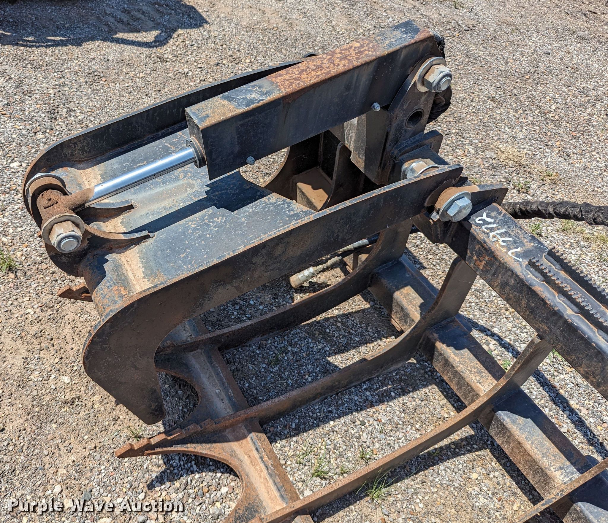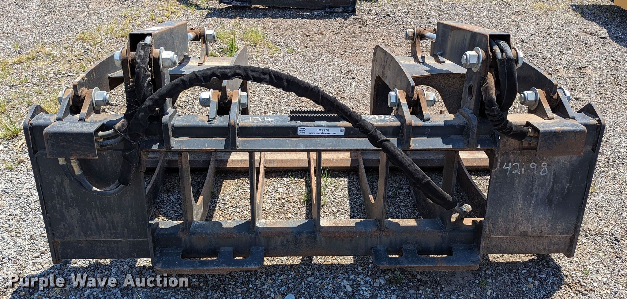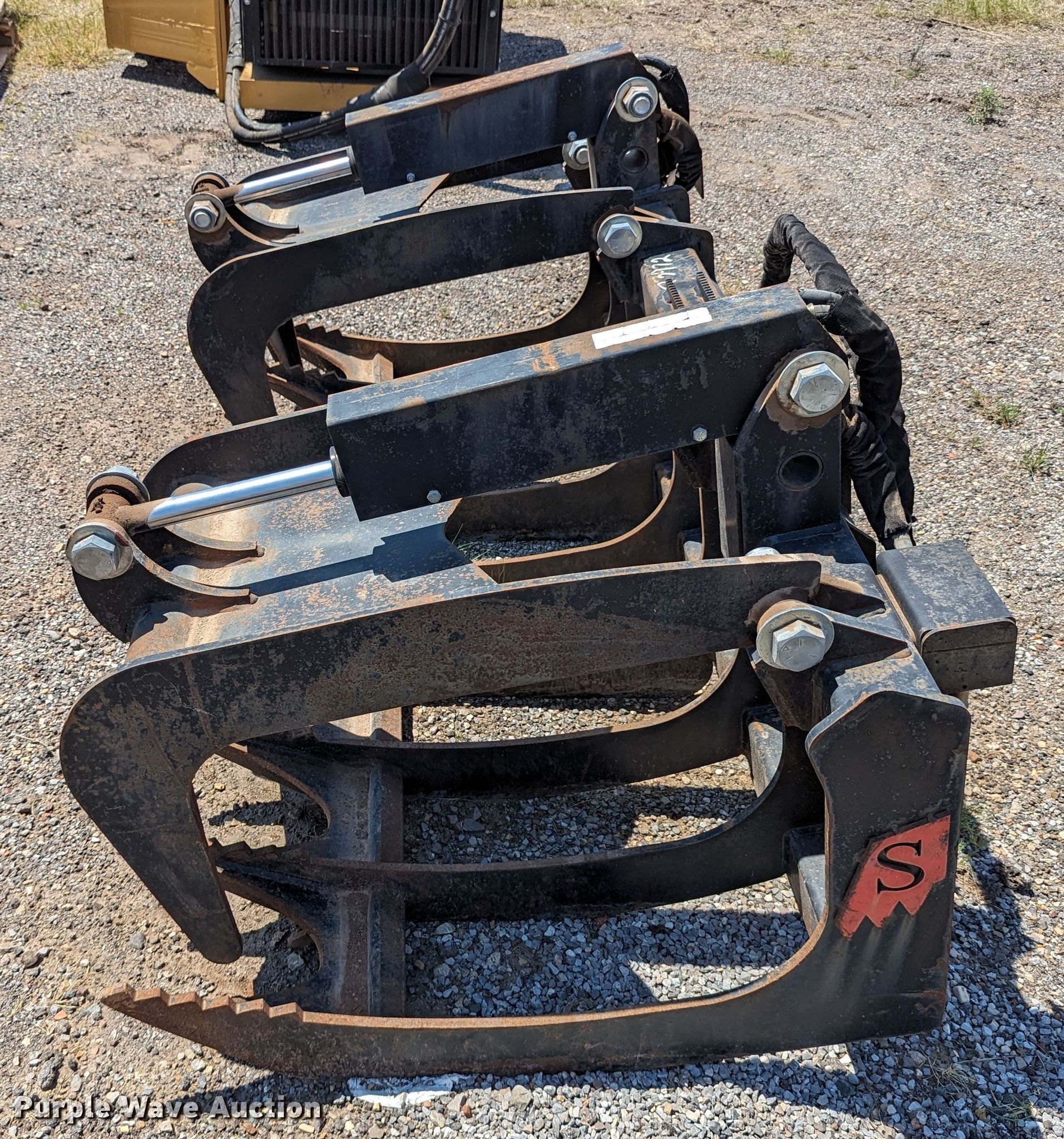 Purple Wave is selling a used Skid Steer Attach. in Oklahoma. This item is a 72"W skid steer grapple bucket with the following: Unit #: 134