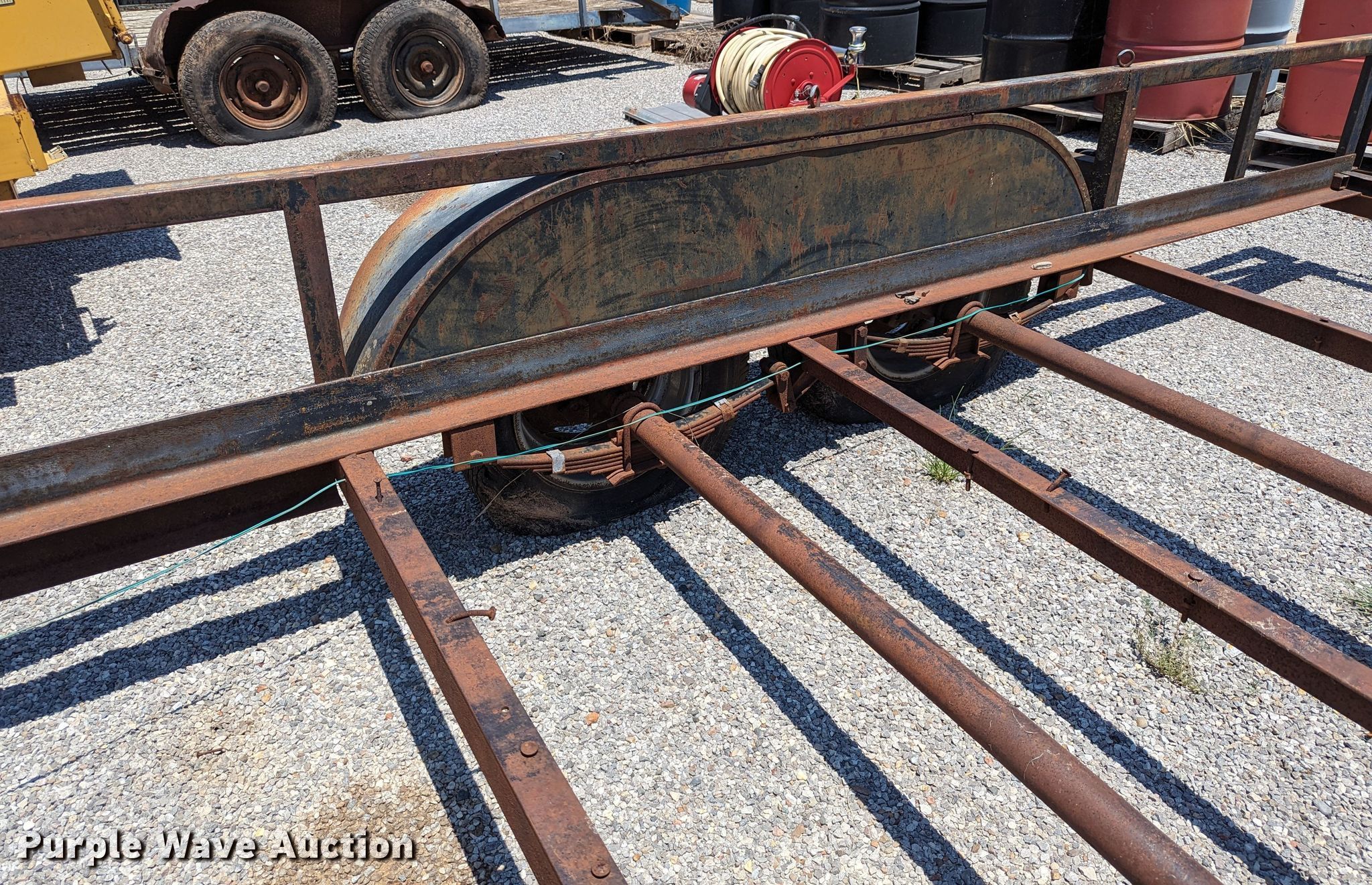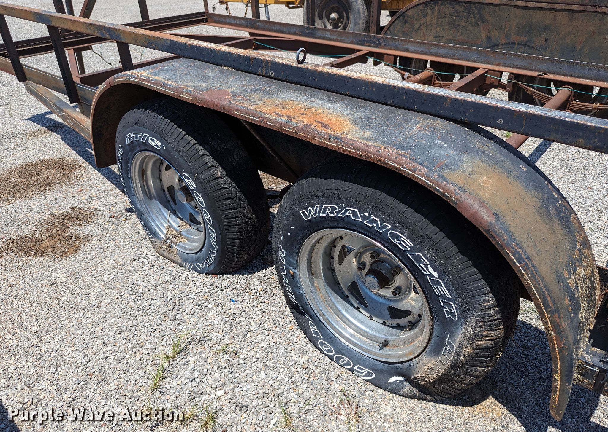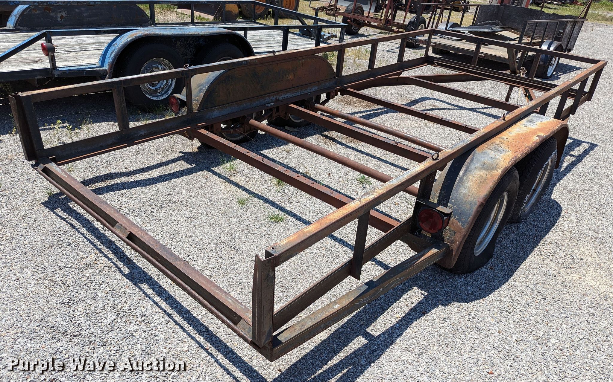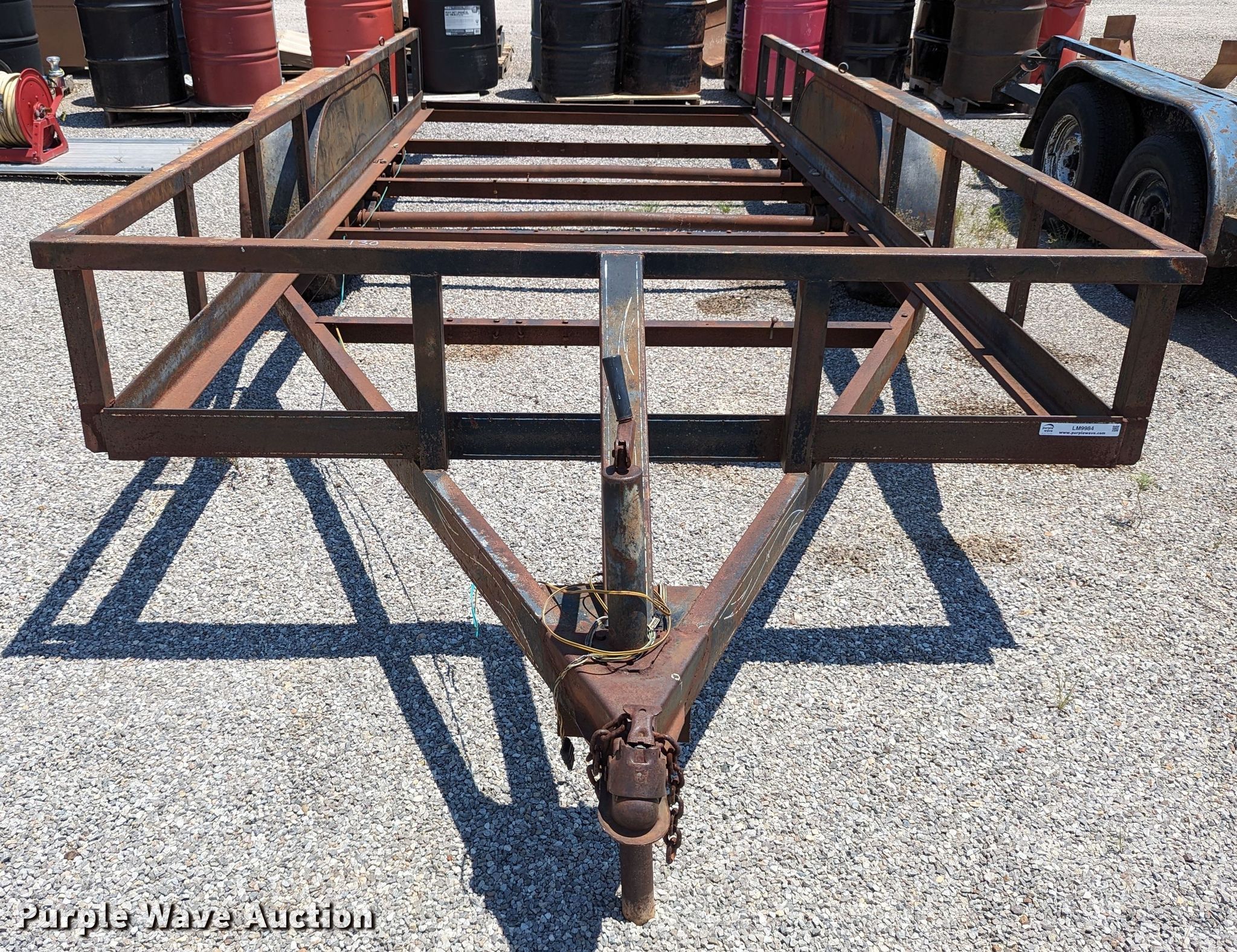Shop built utility trailer. Unit #: 130. Dimensions Overall: 19' L x 102" W, Deck: 16' L x 78" W, Side height: 14". Chassis Ball hitch: 2", Landing gear: Single, Suspension: Spring, Axles: Tandem. Tires Steel wheels, Size: 225/75R15. Notes Deck missing. Transfer of ownership documentation will be a bill of sale. Cleveland County. 9050 S US-77. Noble, OK 73068