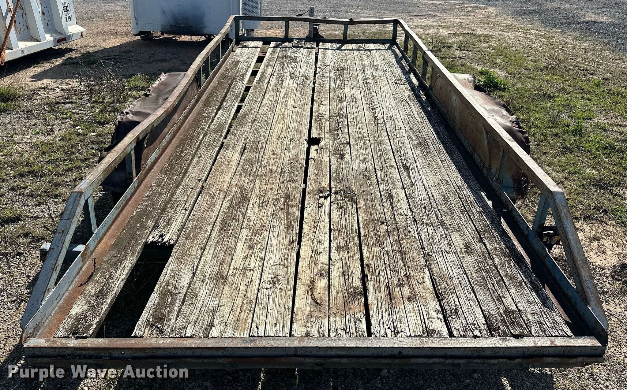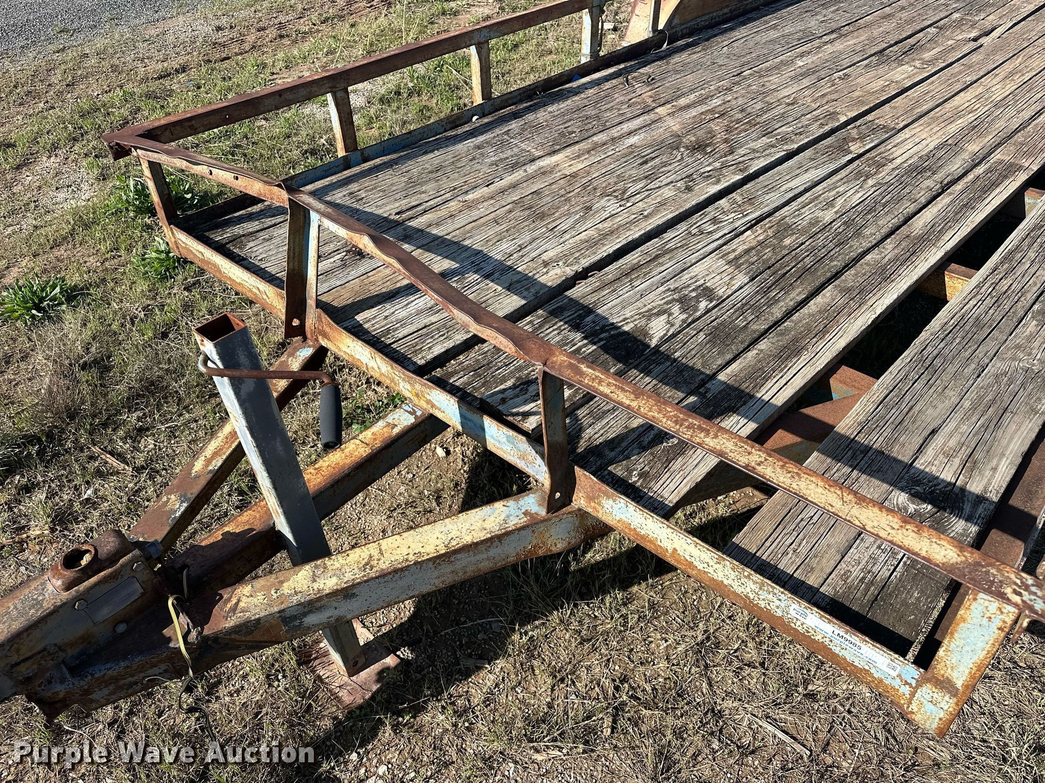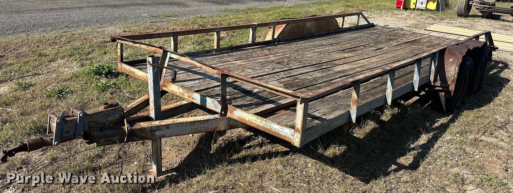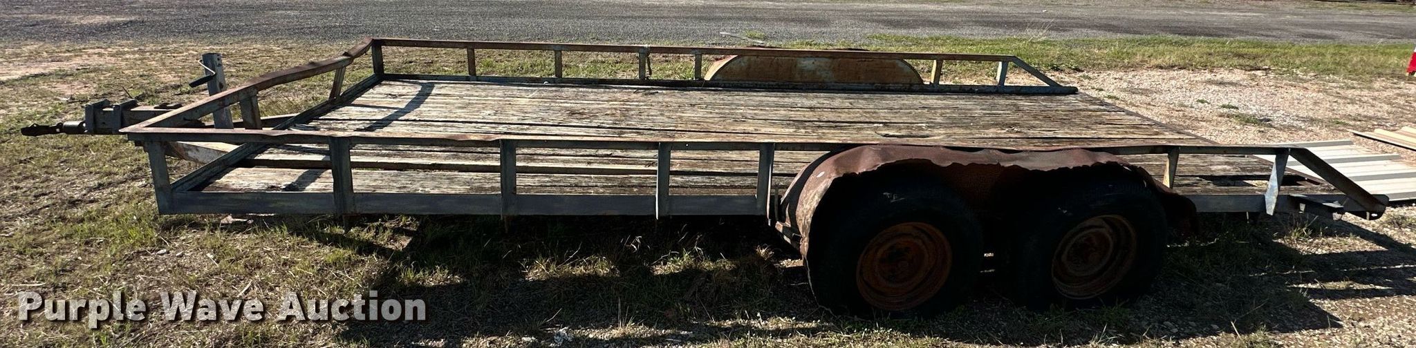 Purple Wave is selling a used Car or Utility Trailer in Oklahoma. This item is a Shop built utility trailer with the following: Overall: 22' L x 102" W, Deck: 18' L x 80" W, Side height: 12"