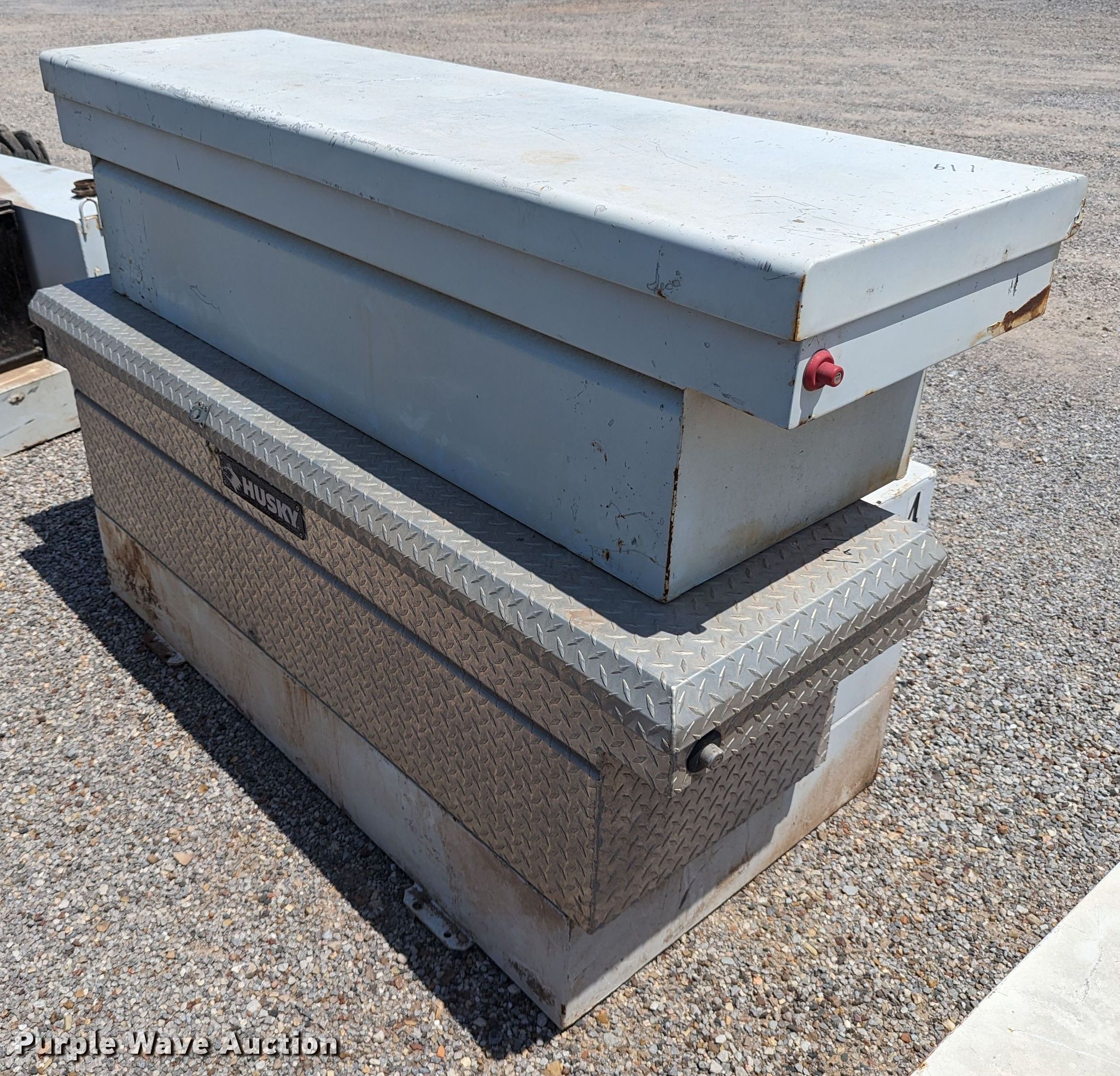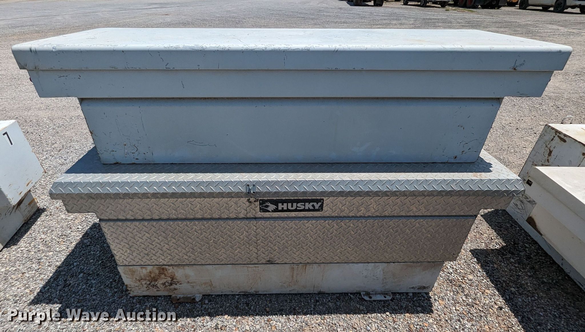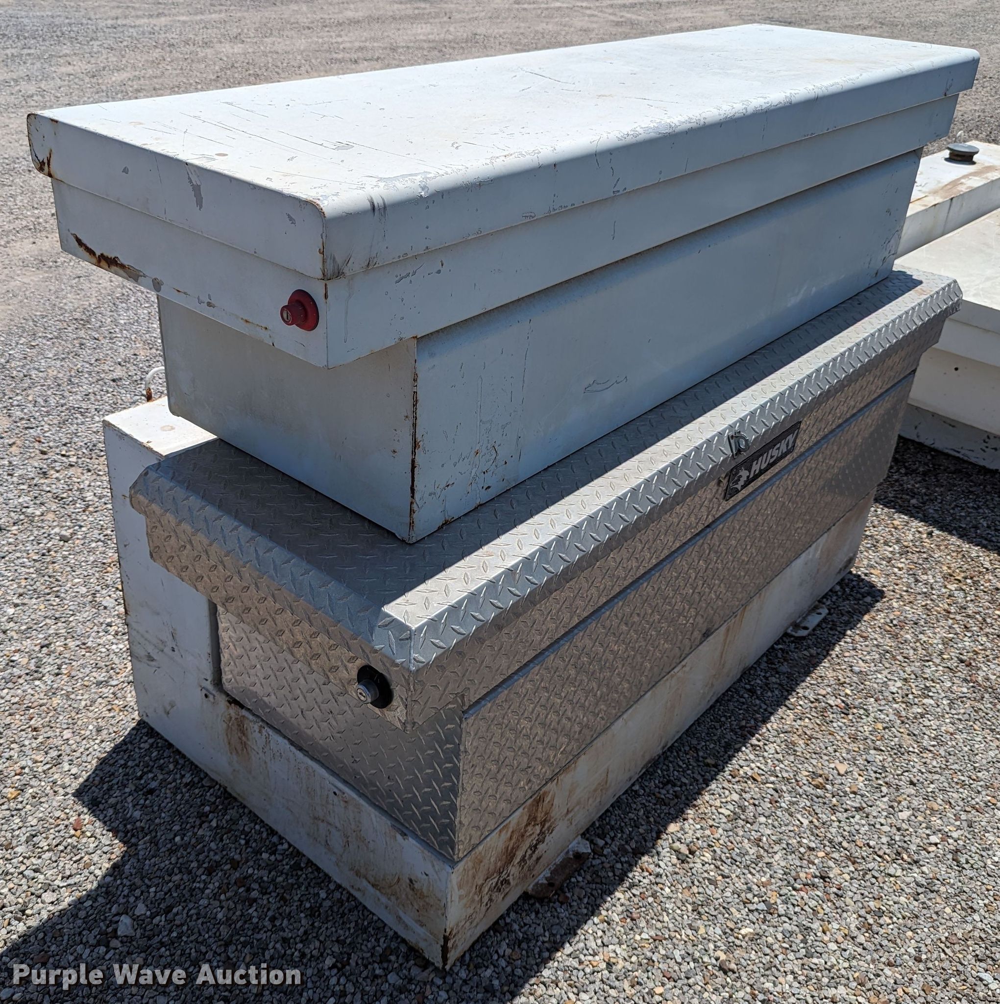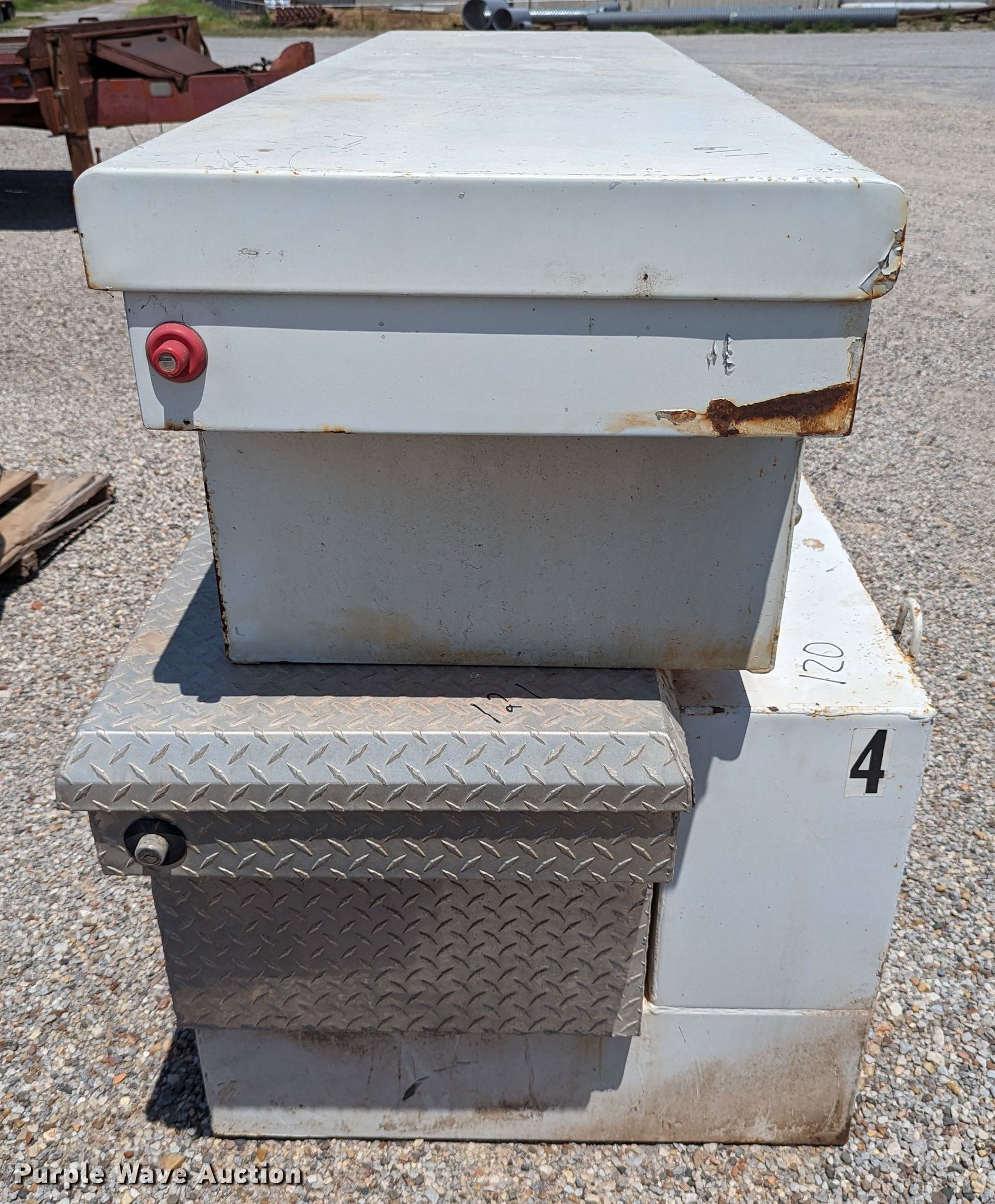 Purple Wave is selling a used Automotive Parts or Acces. in Oklahoma. This item is a Automotive accessories with the following: Delta auxiliary fuel tank, Capacity: 105 gallons, Husky stainless steel toolbox, Knaack tool box, Unit #: 120, 119