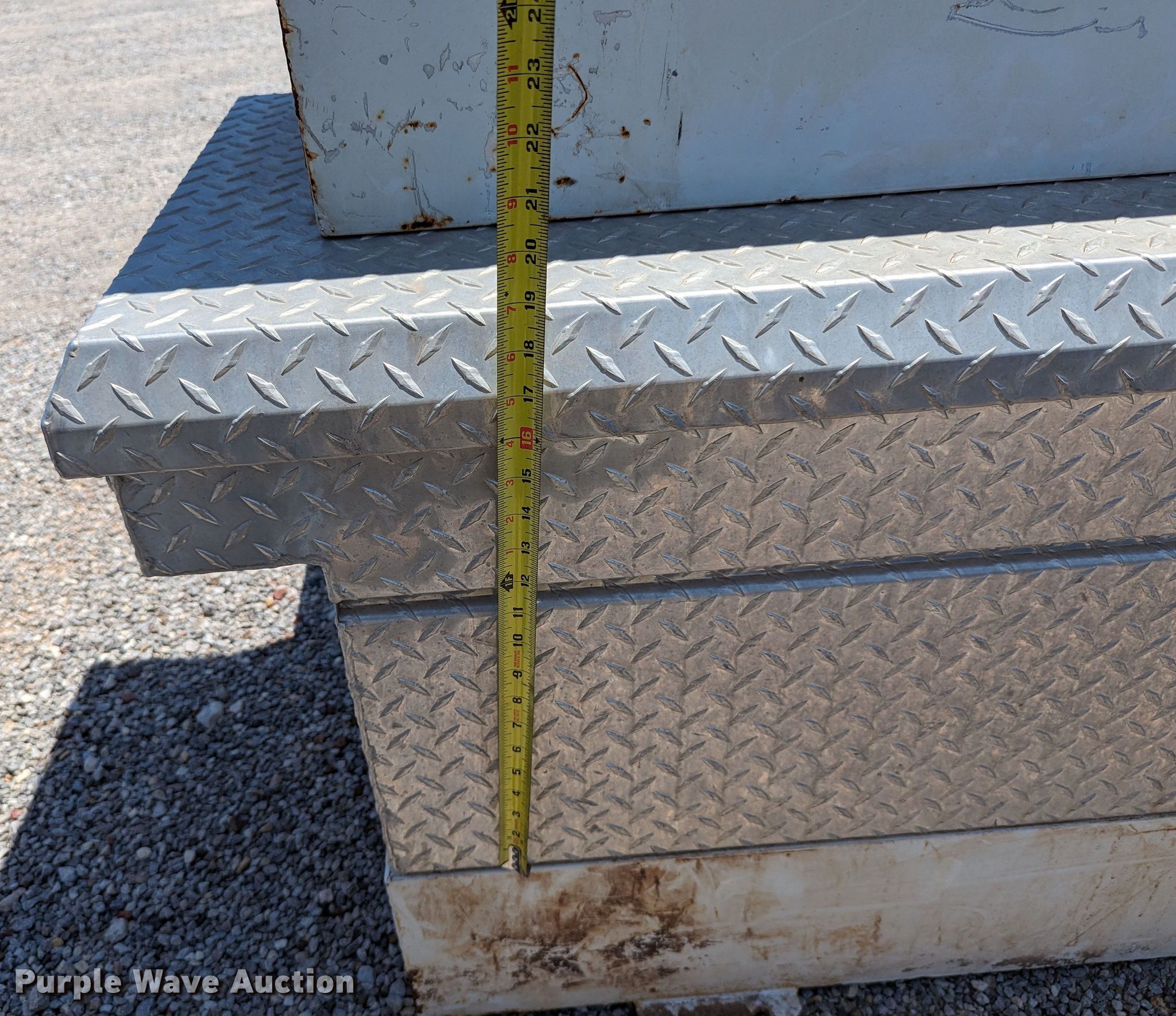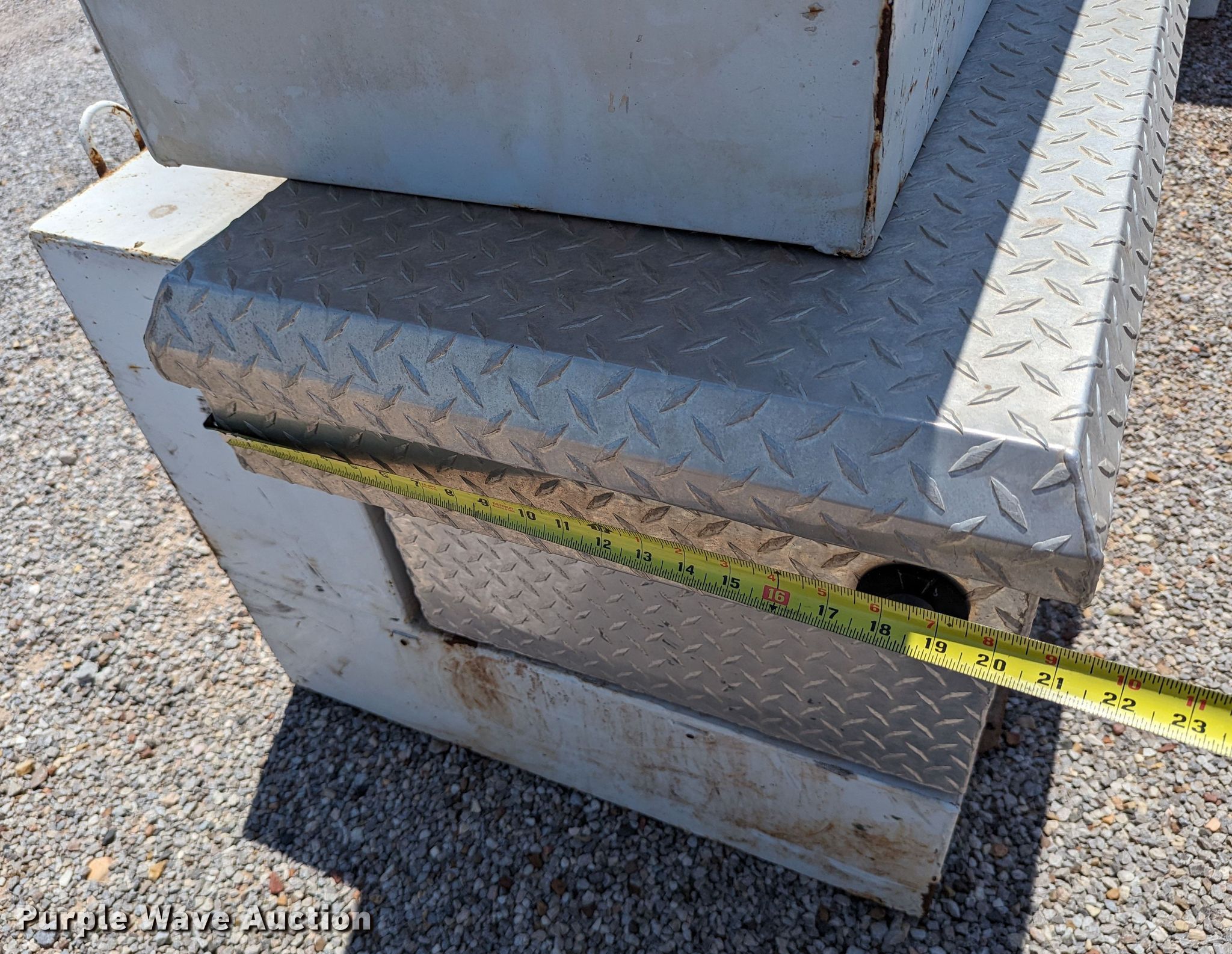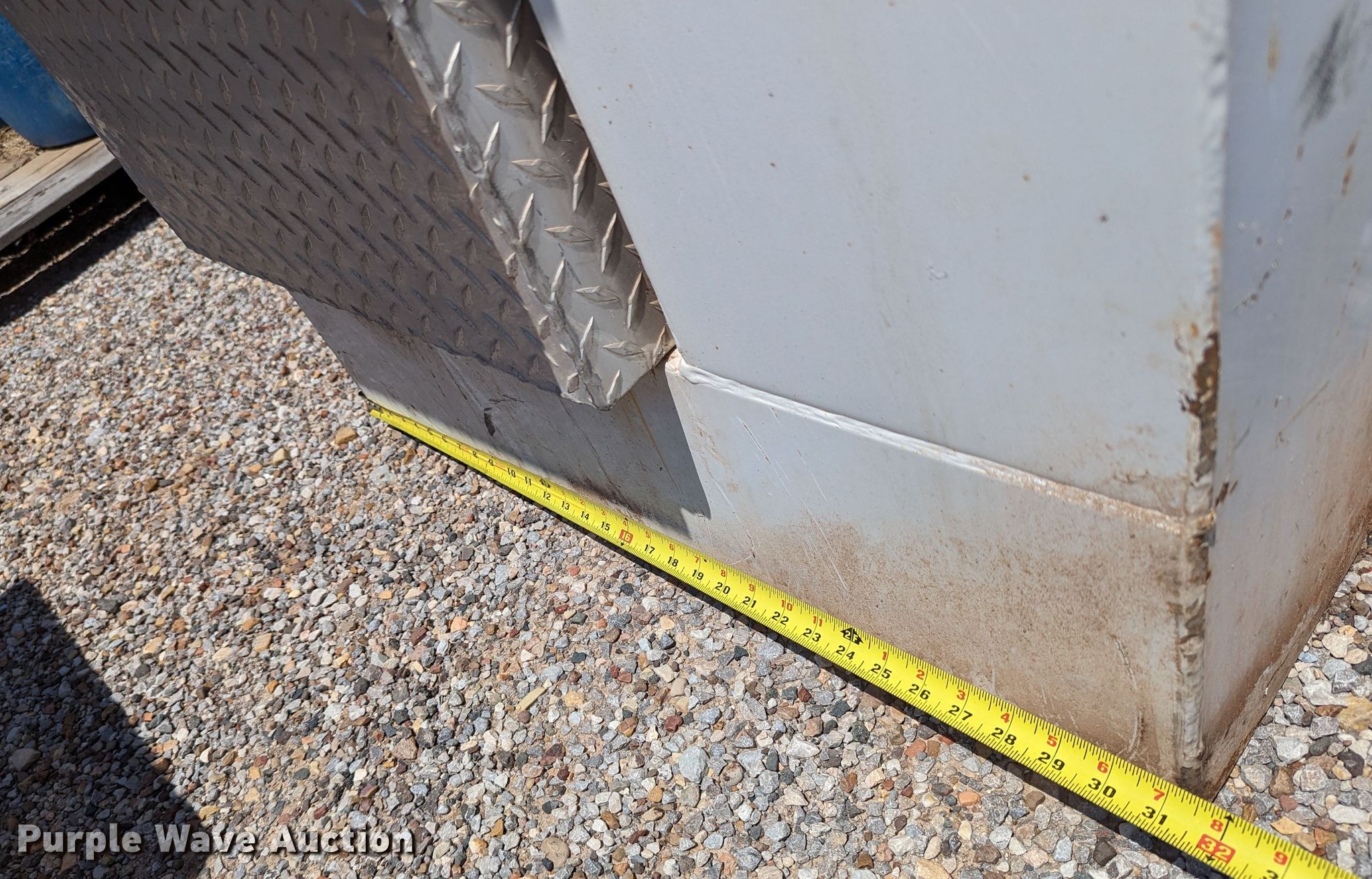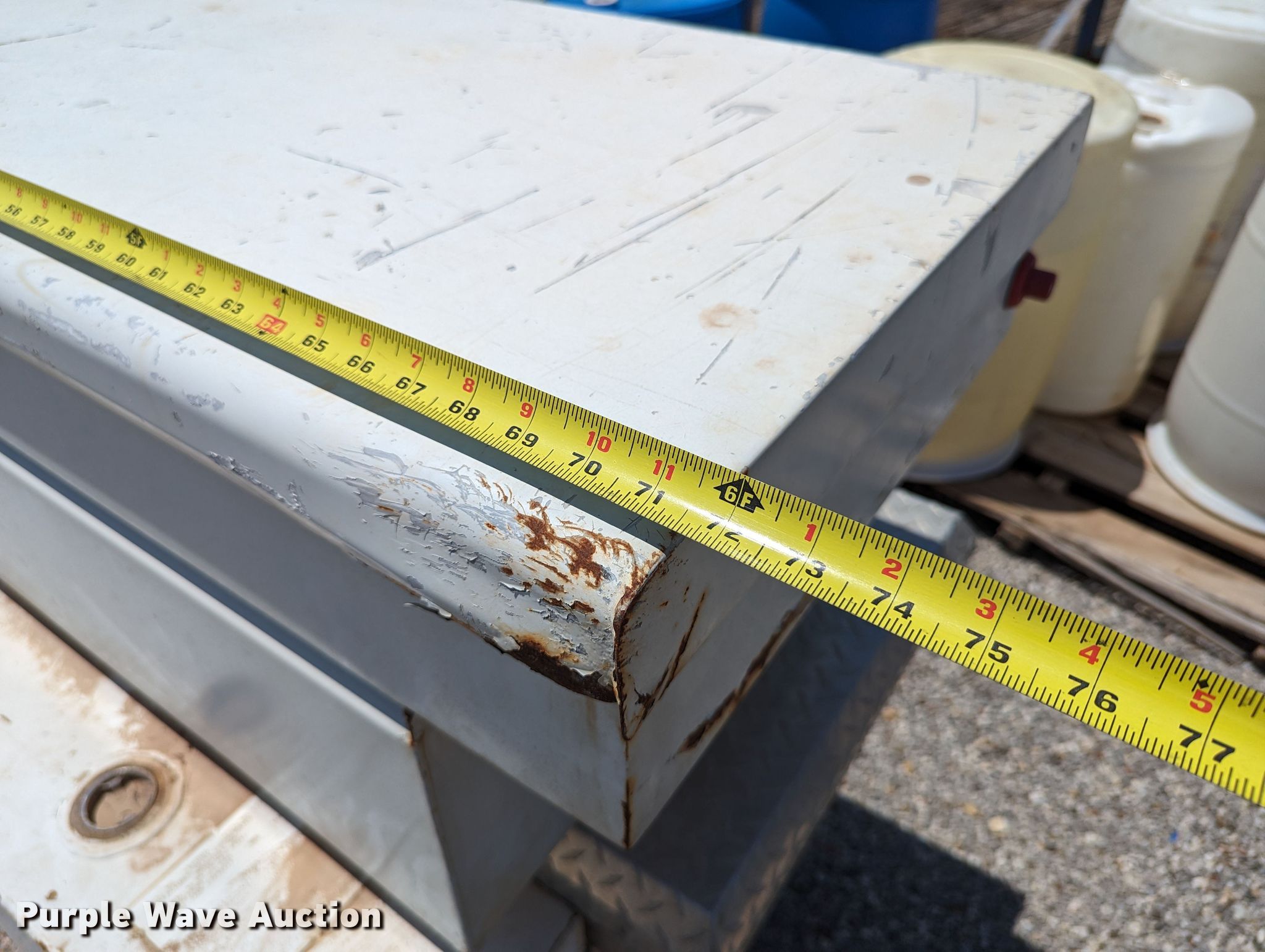 Purple Wave is selling a used Automotive Parts or Acces. in Oklahoma. This item is a Automotive accessories with the following: Delta auxiliary fuel tank, Capacity: 105 gallons, Husky stainless steel toolbox, Knaack tool box, Unit #: 120, 119