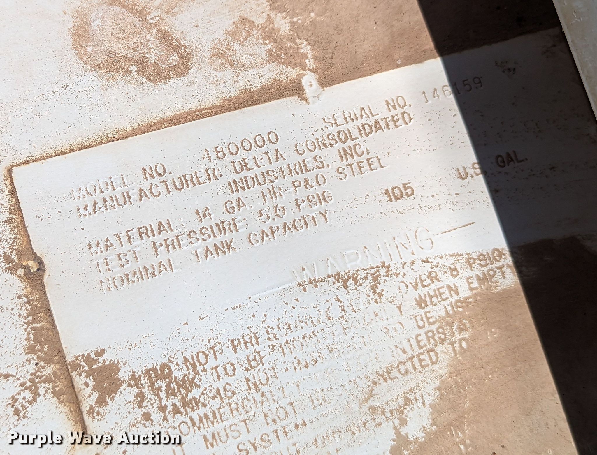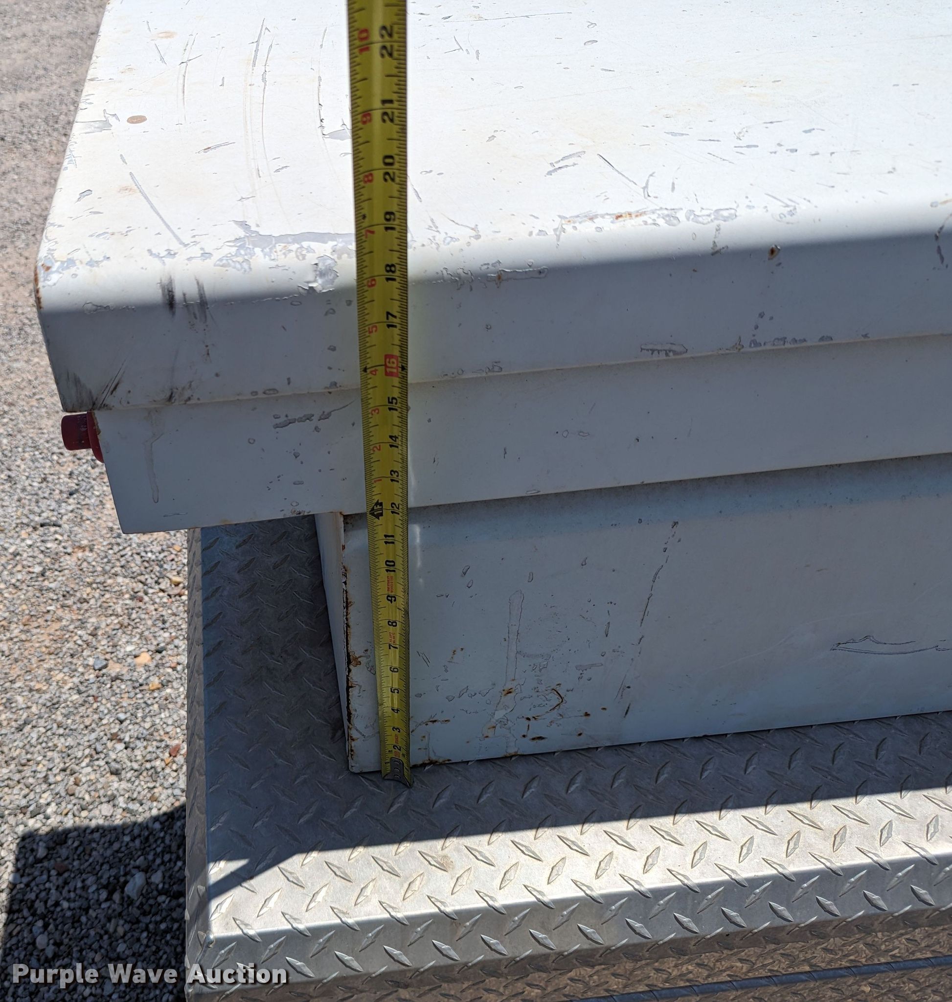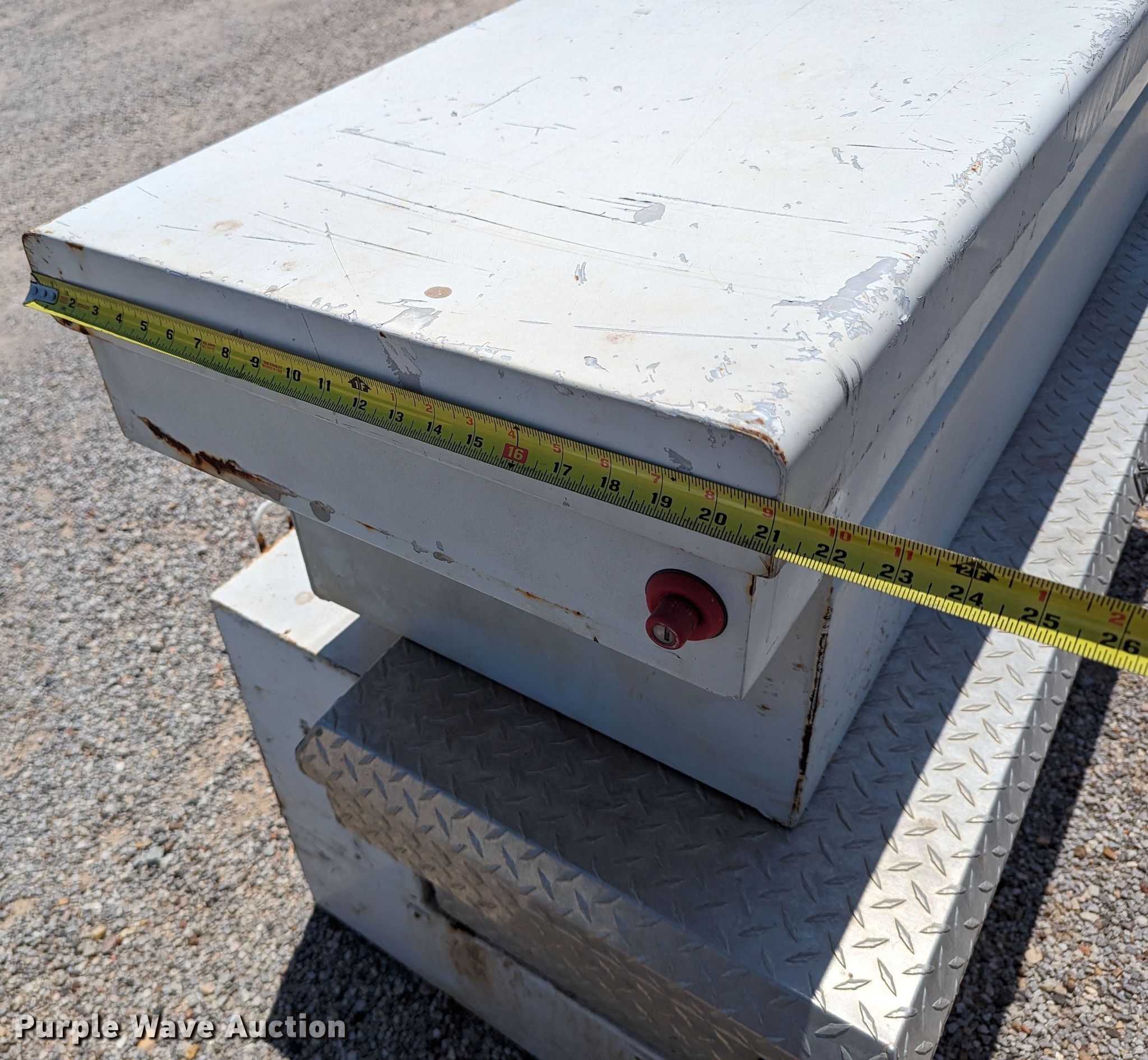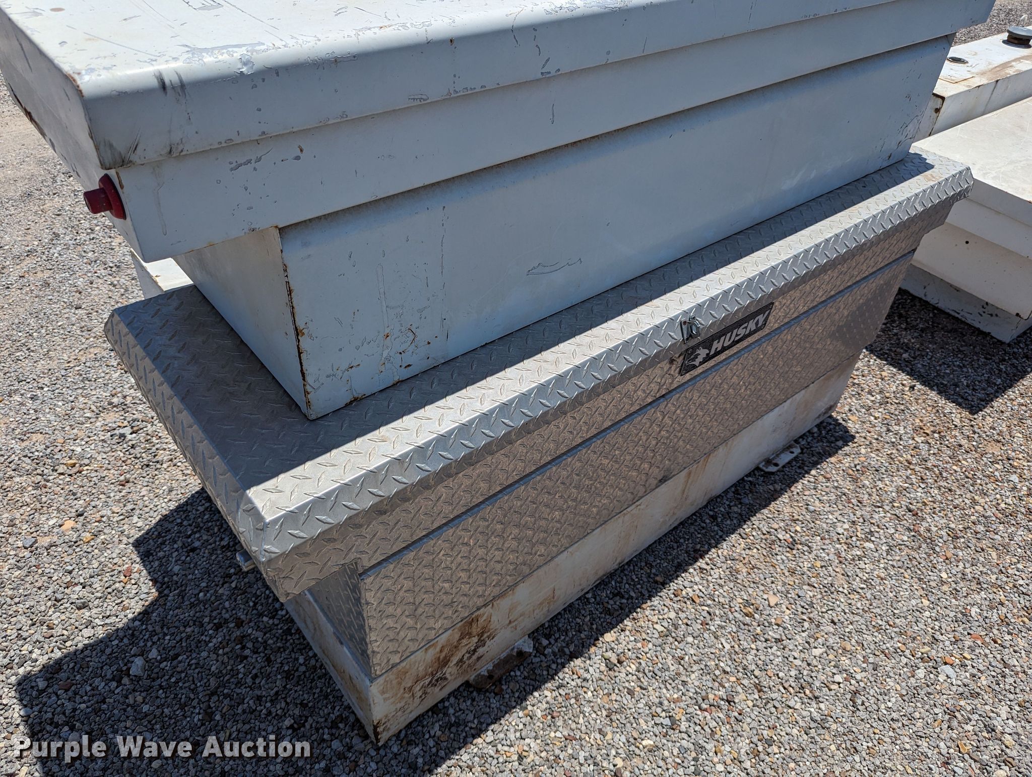 Purple Wave is selling a used Automotive Parts or Acces. in Oklahoma. This item is a Automotive accessories with the following: Delta auxiliary fuel tank, Capacity: 105 gallons, Husky stainless steel toolbox, Knaack tool box, Unit #: 120, 119