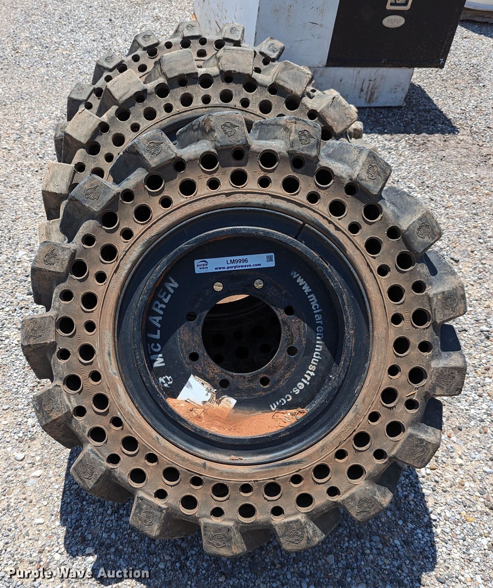 Purple Wave is selling a used Industrial Tires or Tracks in Oklahoma. This item is a (4) McLaren 33x12-16 solid tires and wheels with the following: (4) McLaren 33x12-16 solid tires and wheels. Cleveland County. 9050 S US-77. Noble, OK 73068