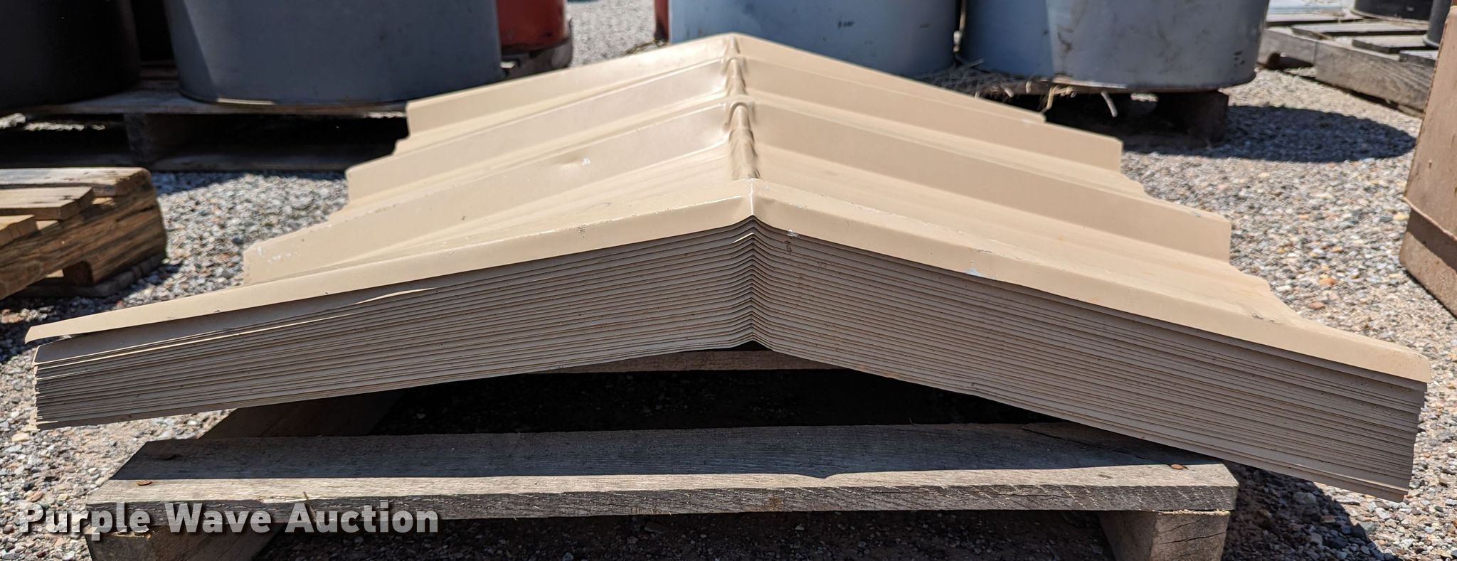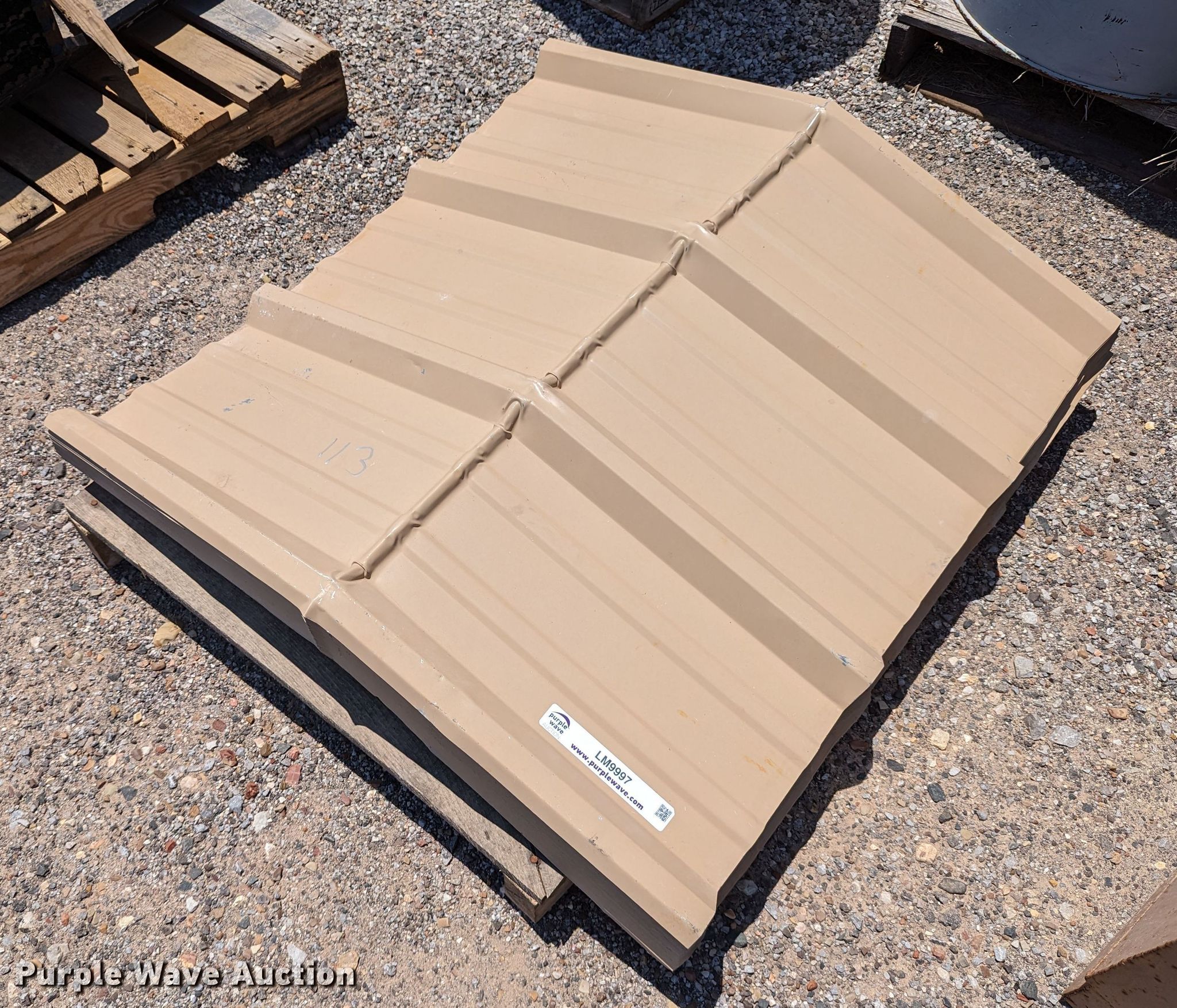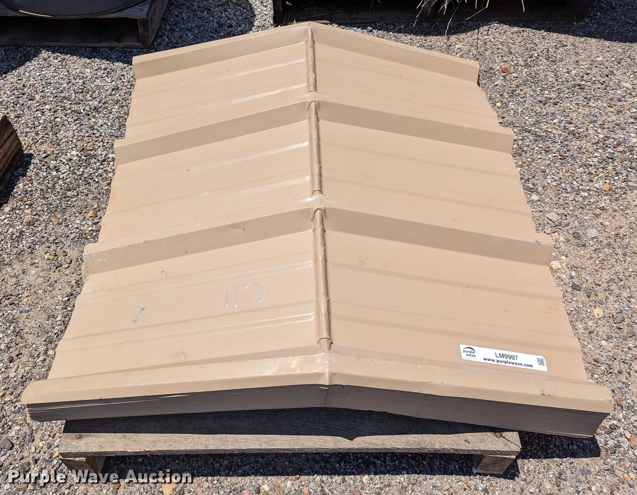 Purple Wave is selling a used Building Materials in Oklahoma. This item is a Approximately (35) metal ridge caps with the following: 38" x 36", Unit #: 113