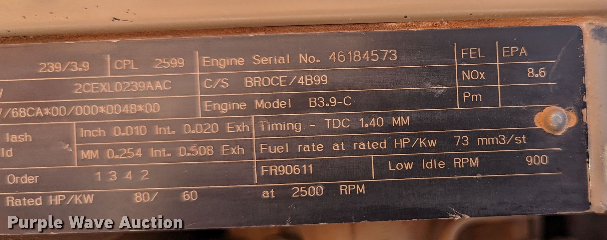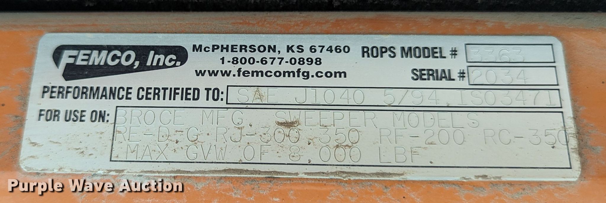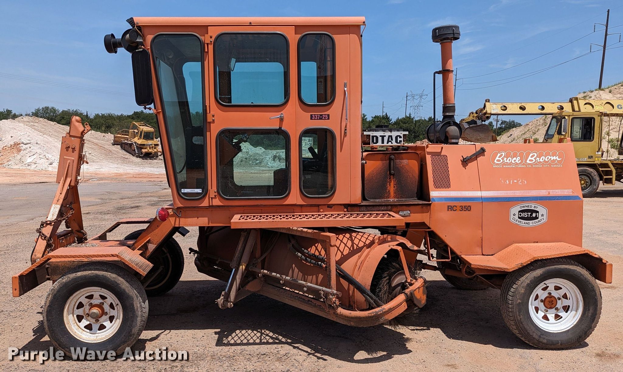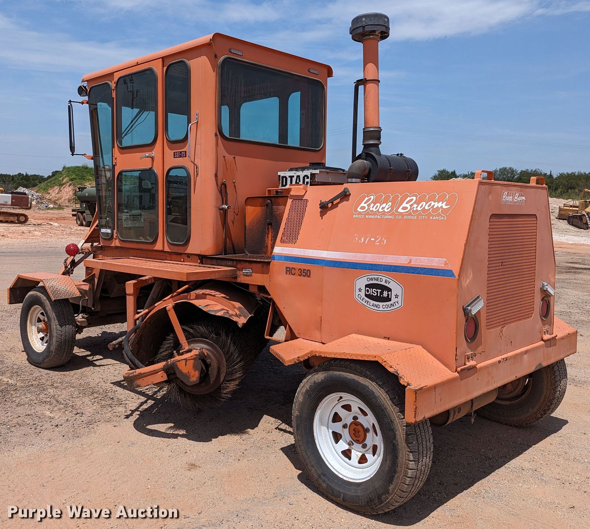 Broce RC350 broom. Hours: 980 on meter, Serial: 402061, Unit #: D337-25. Engine Cummins B3.9-C, Serial: 46184573, Displacement: 3.9L, Cylinders: 4, Fuel type: Diesel, HP: 80. Transmission Hydrostatic. Chassis Suspension: Spring, Brakes: Hydraulic. Operators station EROPS, AC, Heat. Features Broom Width: 96". Tires Size: 235/75R15. Cleveland County. 14701 S Westminster Rd. Oklahoma City, OK 73165