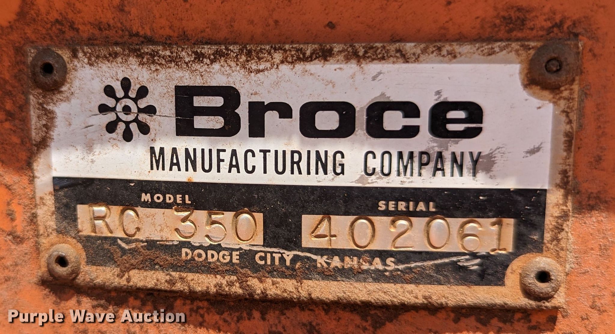 Purple Wave is selling a used Broom in Oklahoma. This item is a Broce RC350 broom with the following: Hours: 980 on meter, Serial: 402061, Unit #: D337-25
