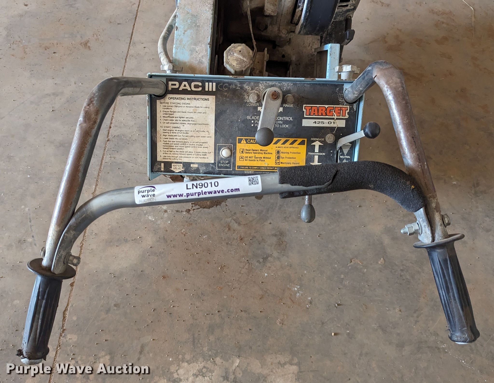Purple Wave is selling a used Concrete Equip. or Acces. in Oklahoma. This item is a Target PAC III concrete saw with the following: Unit #: D425-01