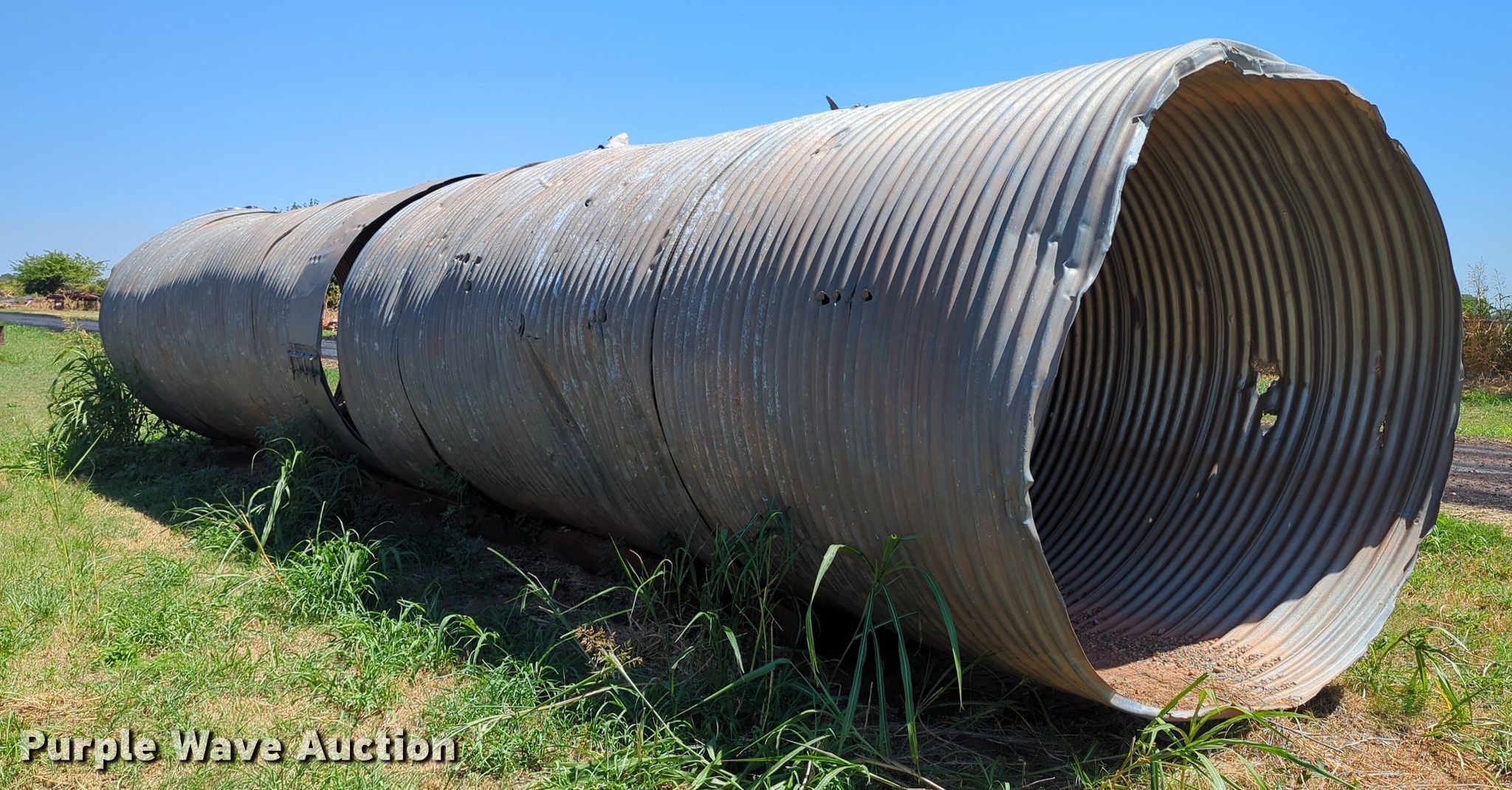 Purple Wave is selling a used Building Materials in Oklahoma. This item is a (2) steel culverts with the following: 20' L x 8' diameter