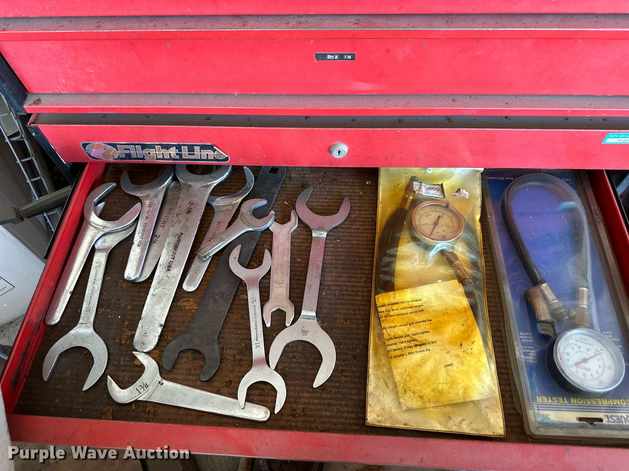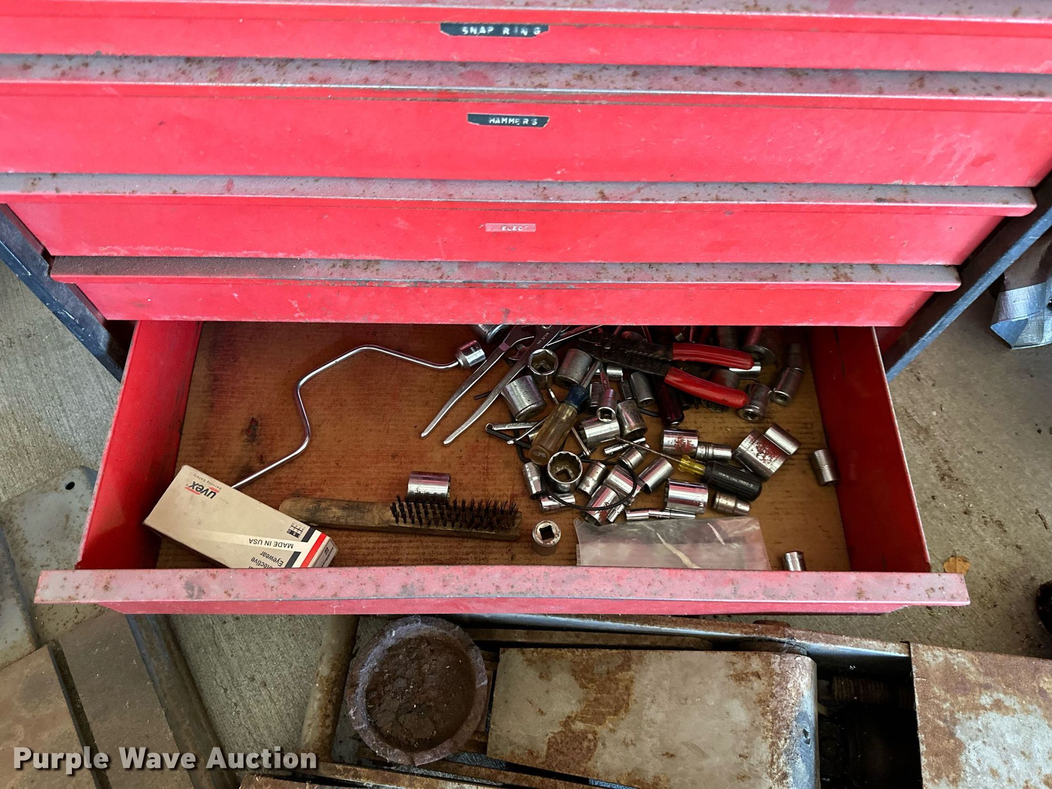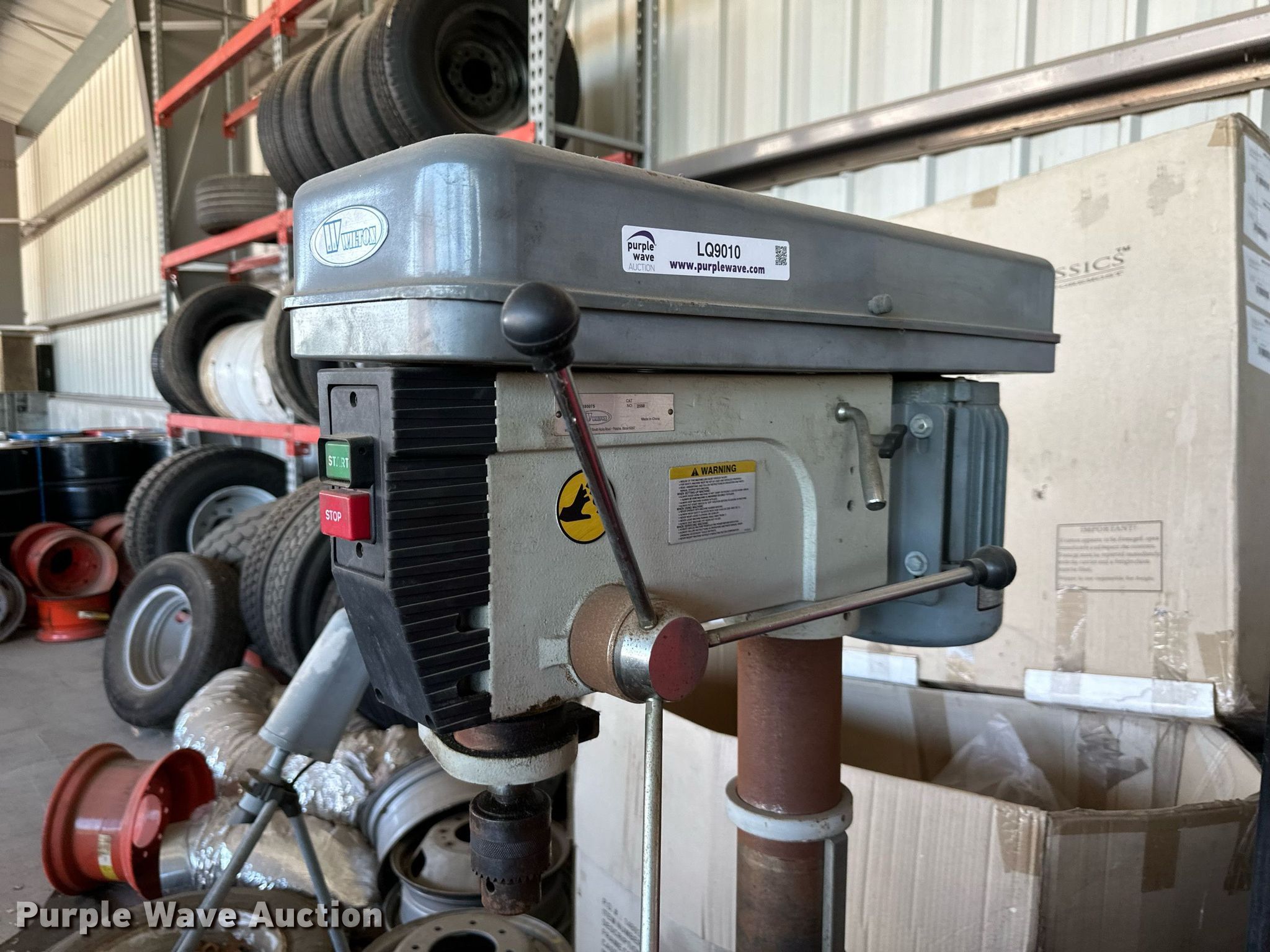 Purple Wave is selling a used Tools in Kansas. This item is a Tools with the following: Wilton drill press, Toolbox, Tools included, 10 ton floor jack, Dayton bench grinder