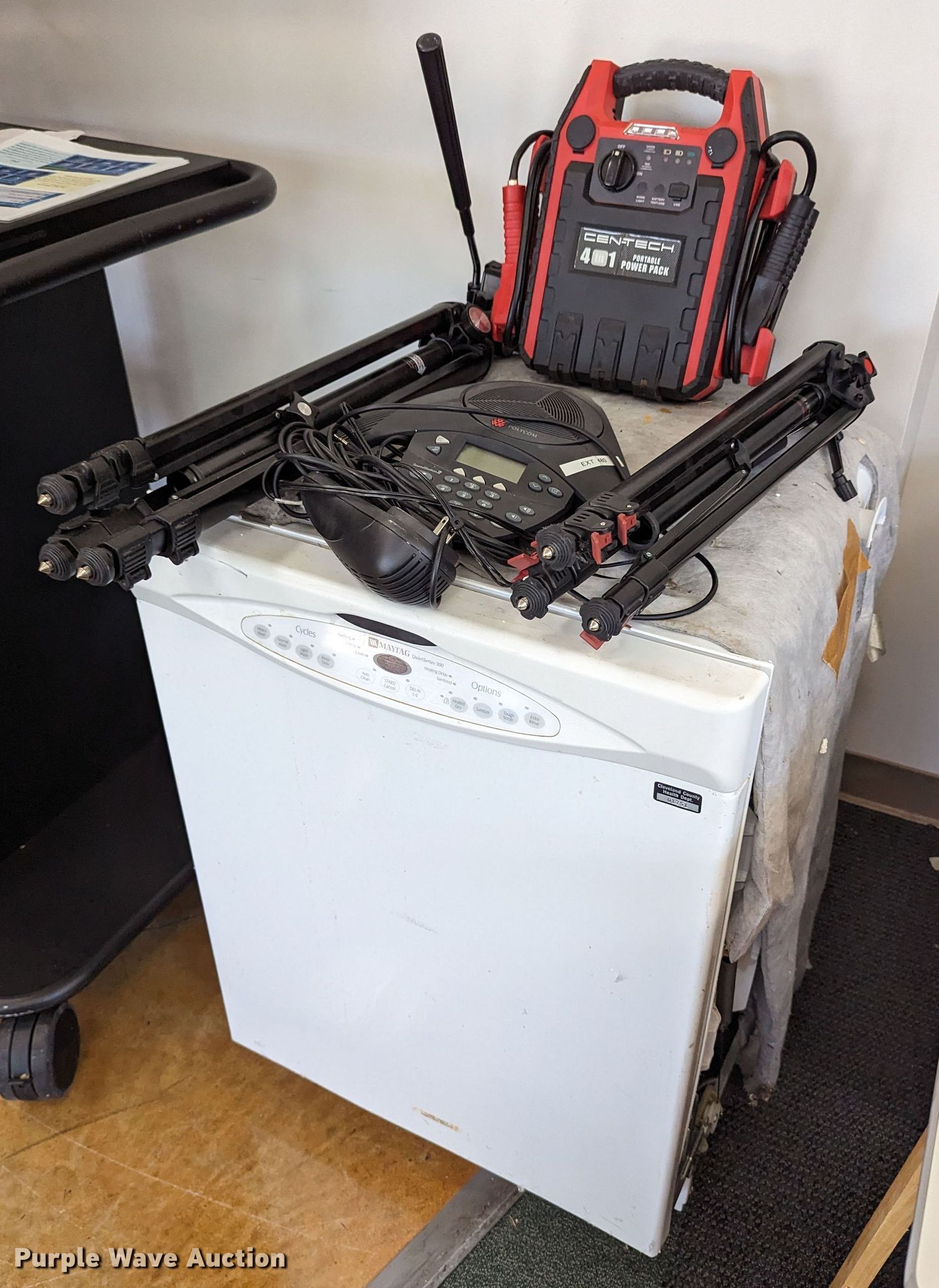 Purple Wave is selling a used Office Supplies and Equip. in Oklahoma. This item is a Office supplies with the following: Magic Chef CTB1723AR refrigerator, Maytag QuietSeries 300 dishwasher, Helmer ILF105 labratory freezer, NEC PX-42XM2A plasma television, Toshiba DVR620KU DVD/VCR, Tripp-Lite Smart550USB battery backup, Aten four-port video splitter, LifeSize LFZ-021 audio video conference system, Polycom SoundStation2 audio conference system, Cen-Tech four in one portable power pack, (2) tripods