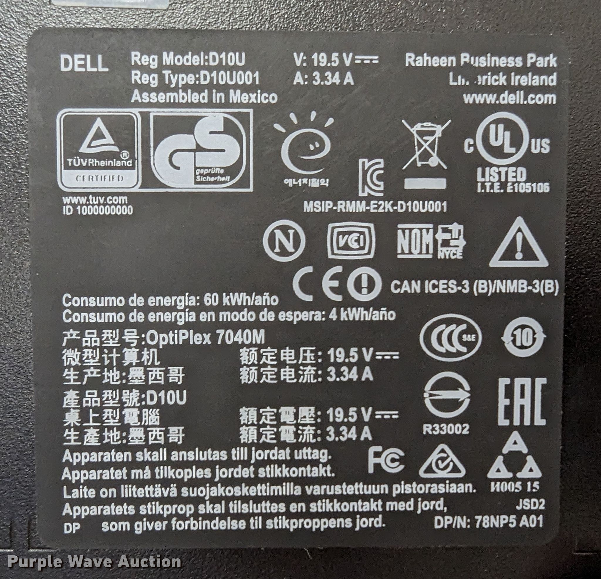 Purple Wave is selling a used Electronics in Oklahoma. This item is a Electronics with the following: (2) Crown CDi1000 amplifiers, Kramer VP-728 presentation switcher scaler, LifeSize LFZ-021 audio video conference system, Polycom HDX8000 audio video conference system, Dell DLP projector, Mitsubishi LVP-SA51U projector, Kodak 650H carousel projector, Dell OptiPlex 7040 CPU, (2) Dell OptiPlex 780 CPUs, (5) Dell monitors, APC Back-UPS RS 1500 battery backup, Panasonic KX-DT333 phone system, Panasonic PSLP1432 power supply, Panasonic KX-TDE600 cabinet, (4) Ambir DS687-3 duplex ID card scanners, Dell 2330d laser printer, (2) HP Laserjet 1100 printer, (2) HP LaserJet 1022 printer, HP Deskjet 460 printer, Zebra ZQ620 barcode label printer, GPX HM3817DT CD player, IMB Wheelwriter 6 typewriter, Texas Instruments TI-5130 calculator