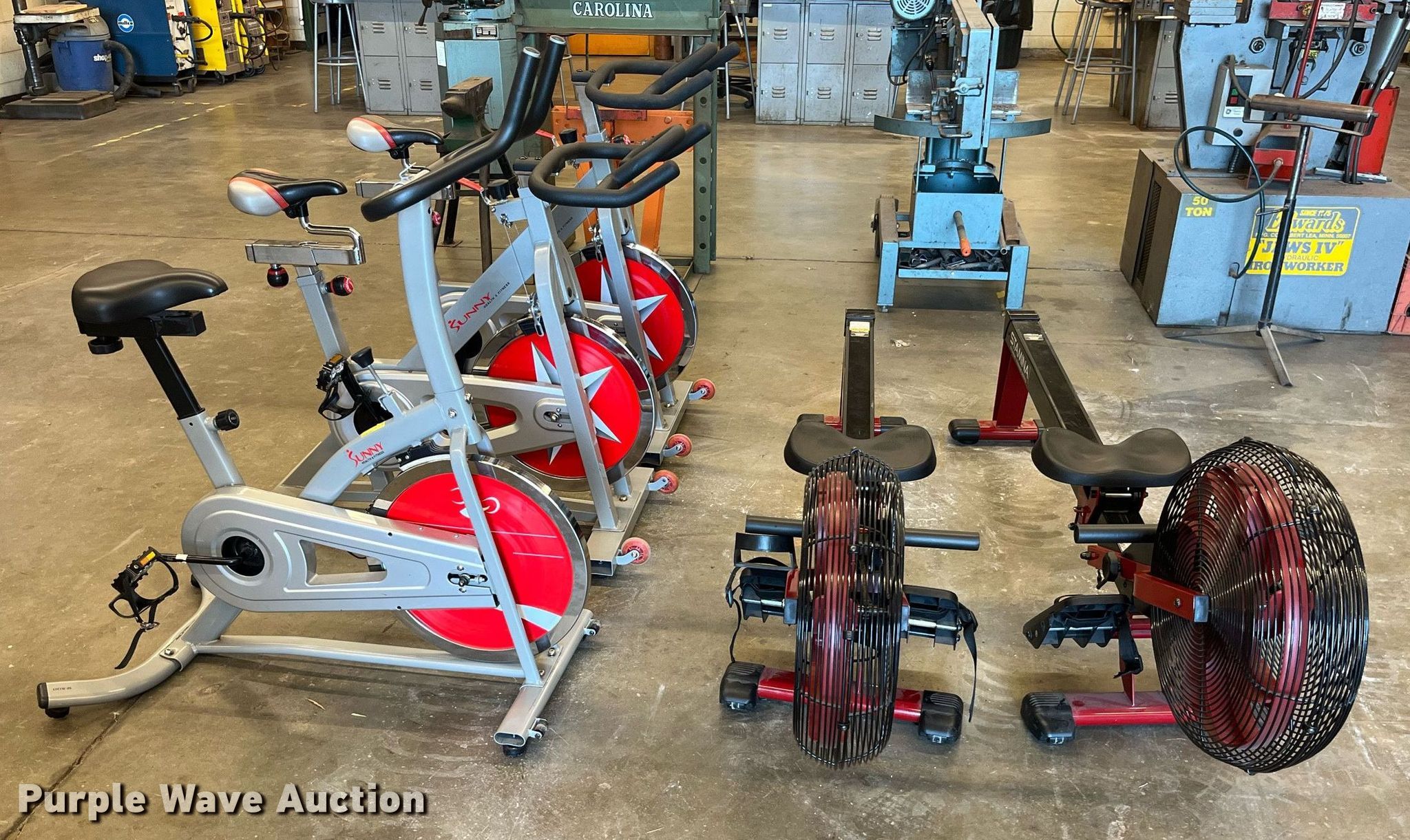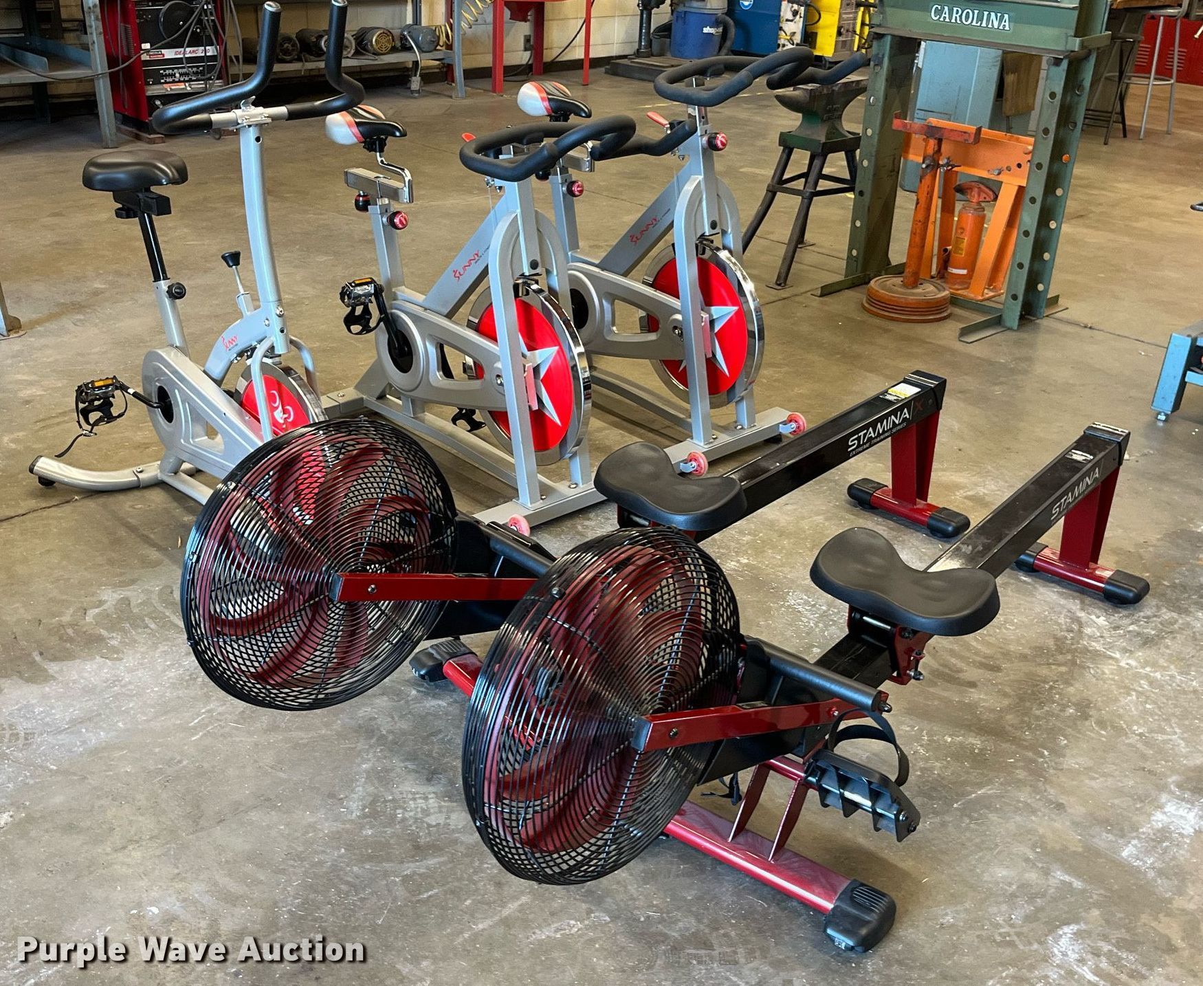 Purple Wave is selling a used Sporting Goods in Missouri. This item is a Exercise equipment with the following: (3) Sunny Health and Fitness bikes, Broken foot pedal assembly, replacement assembly will be included, (2) Stamina Extreme Training Series rowers, Unknown operating condition of digital read-out