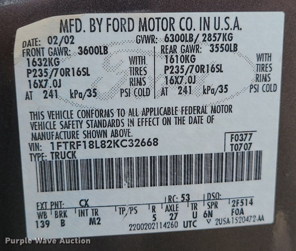 Purple Wave is selling a used 1/2 Ton Pickup or Van in Missouri. This item is a 2002 Ford F150 pickup truck with the following: Miles: 103,598 on odometer, VIN: 1FTRF18L82KC32668
