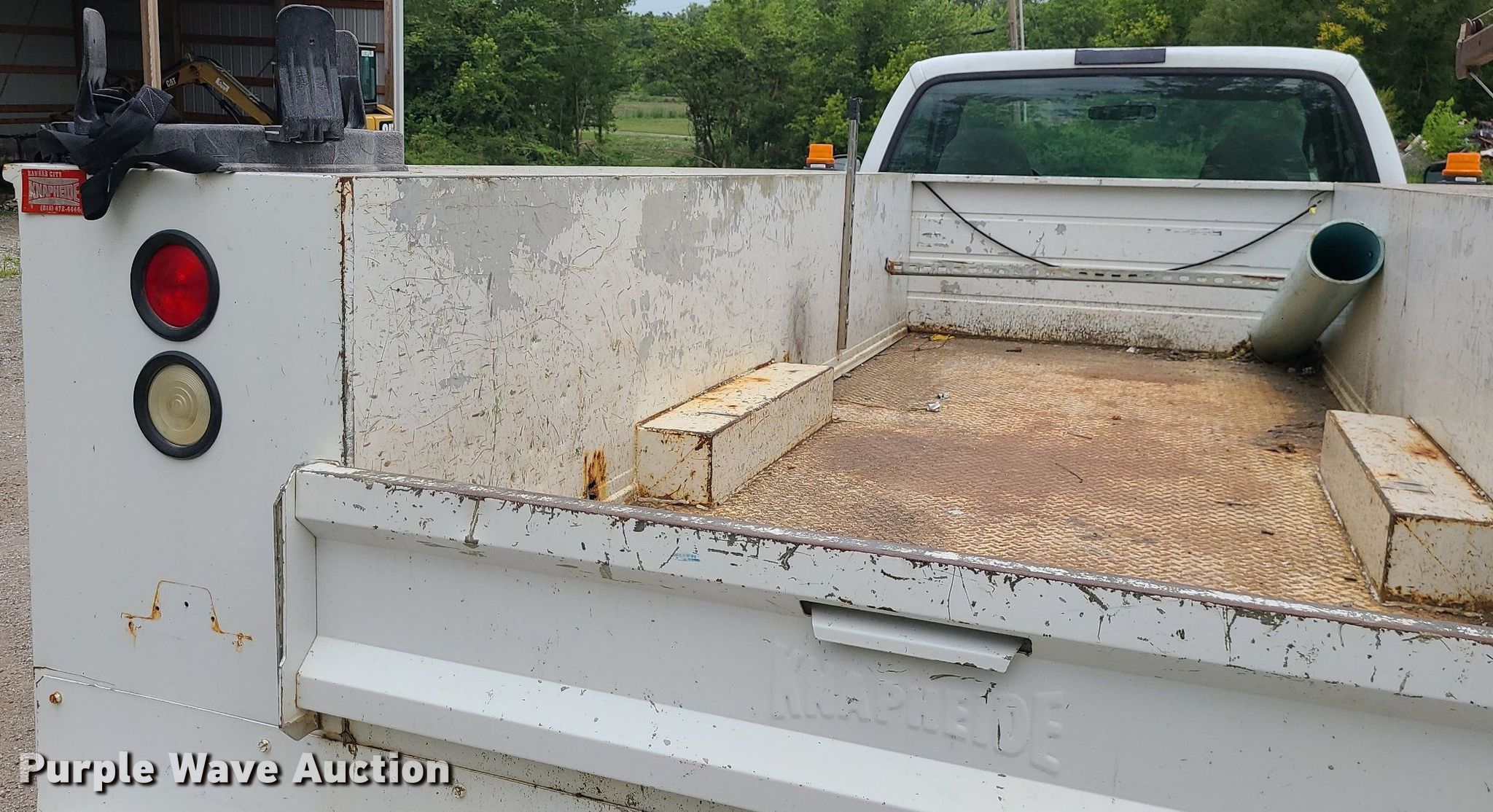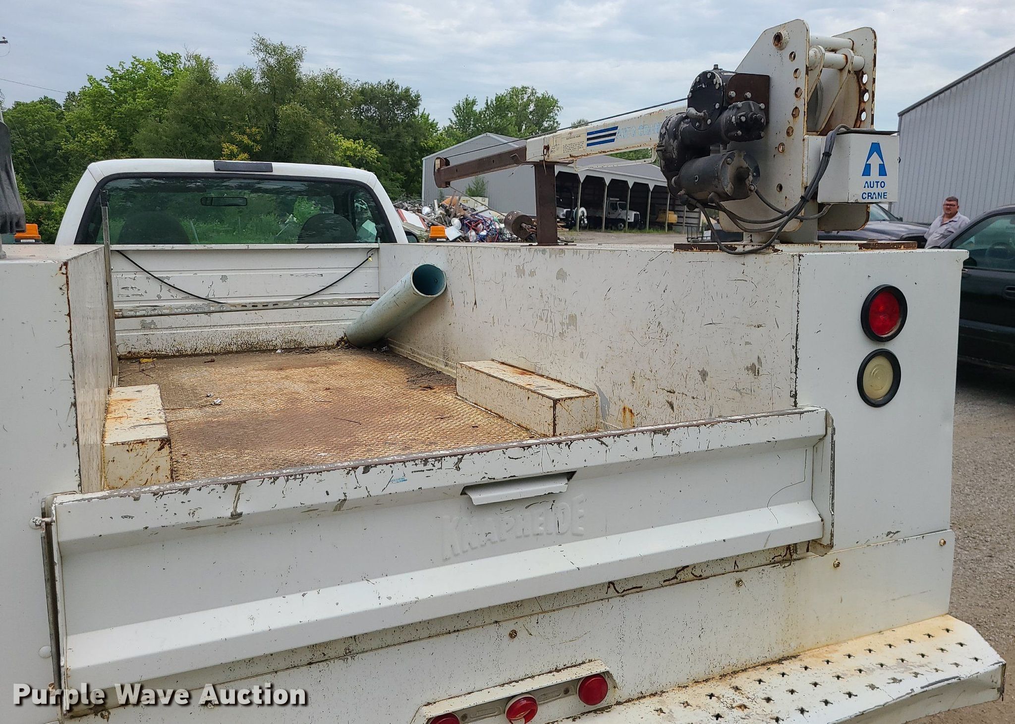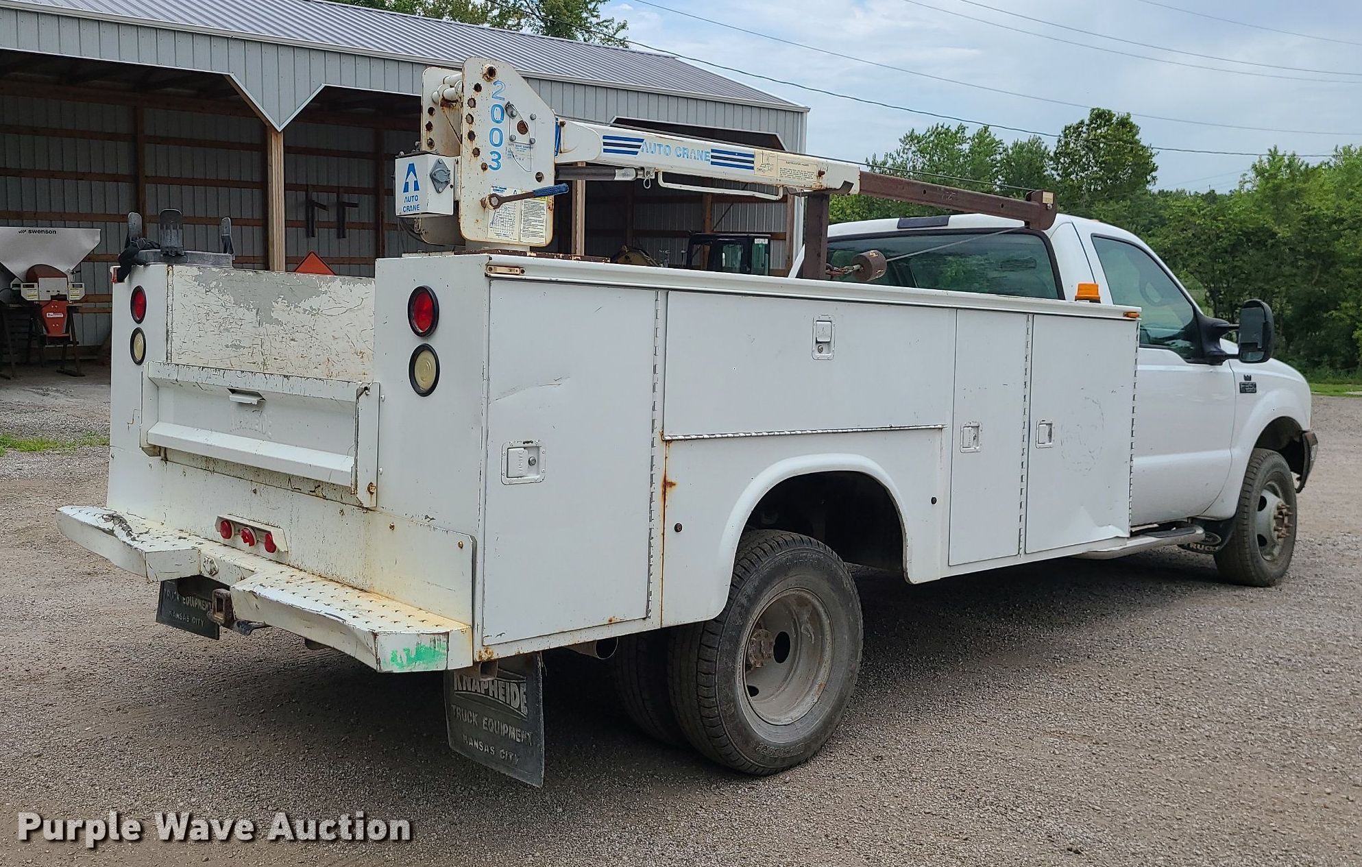 This 2002 Ford F350 Super Duty utility bed pickup truck will sell to the highest bidder regardless of price.