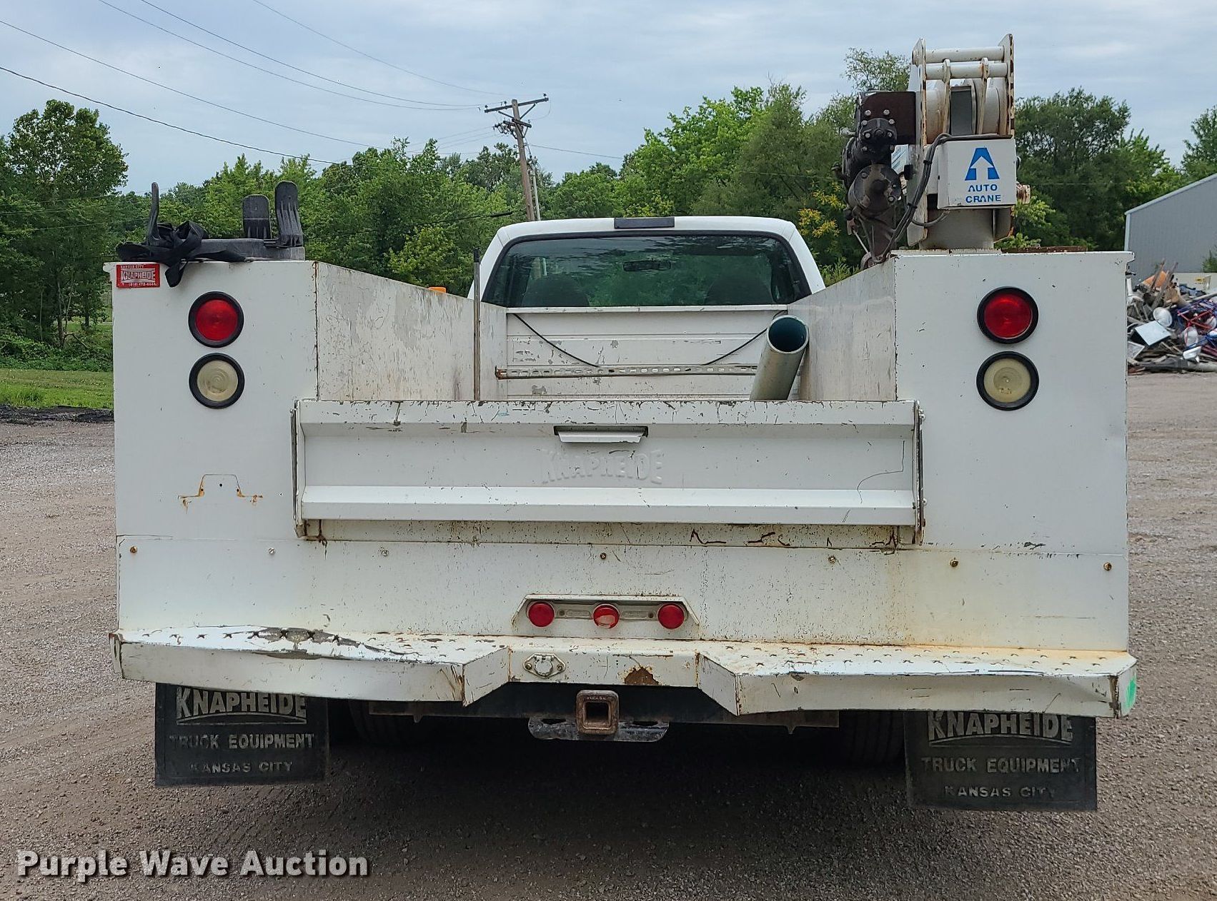 2002 Ford F350 Super Duty utility bed pickup truck. Miles: 159,208 on odometer, VIN: 1FDWF37F62EB37384. Engine Displacement: 7.3L V8 OHV, Cylinders: 8, Fuel type: Diesel. Transmission Automatic, Four wheel drive. Interior AC, Heat. Features Utility bed Knapheide, 11' L x 96" W, 2003 Auto Crane crane Max capacity: 2000 lbs.. Tires Size: 235/85R16. Notes Dash warning indicator: Airbag, Windshield chipped or cracked. Missouri title. Title distribution may be delayed up to 14 days from verification of funds. City of Richmond, MO. 1219 Hines Street. Richmond, MO 64085