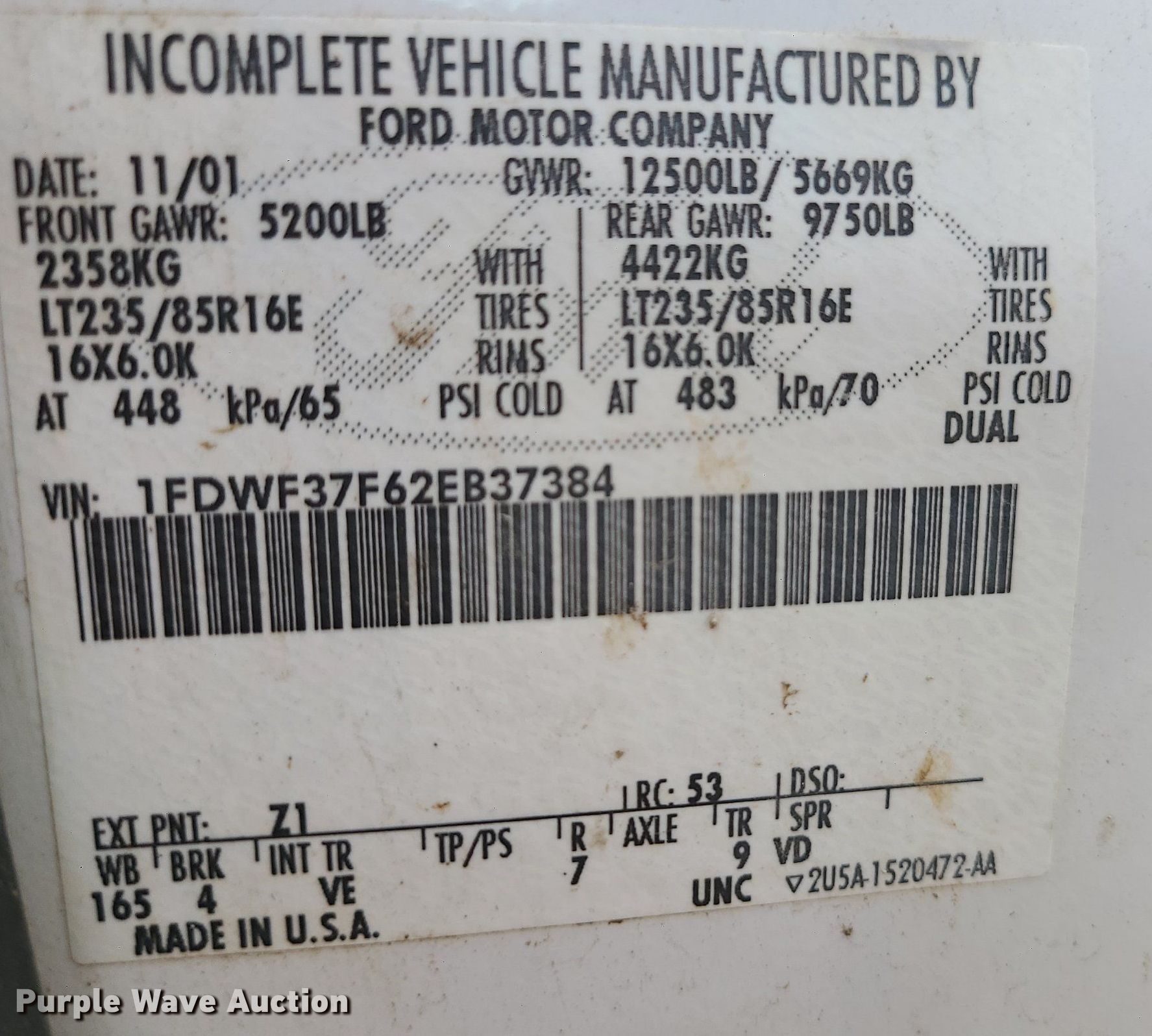 - VIN: 1FDWF37F62EB37384