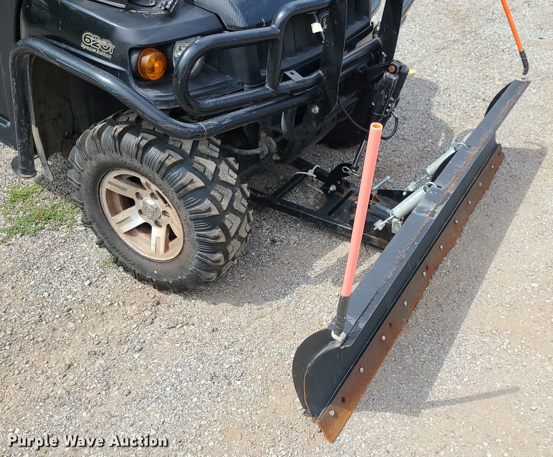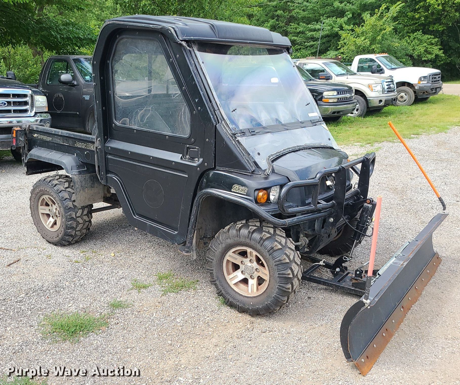2009 John Deere Gator utility vehicle. Hours: 6,179 on meter, VIN: M0XUVGB031253. Engine Fuel type: Gas. Transmission Automatic. Chassis Four wheel drive. Operators station Enclosed cab, Heat. Features 44" L x 52" W, Dump bed type: Electric/ Hydraulic, 72" W snow plow. Tires Front: 255/65R12, Rear: 25x11R12. Transfer of ownership documentation will be a bill of sale. City of Richmond, MO. 1219 Hines Street. Richmond, MO 64085