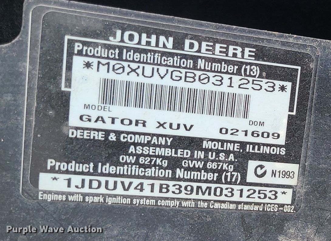 Purple Wave is selling a used Utility Vehicle in Missouri. This item is a 2009 John Deere Gator utility vehicle with the following: Hours: 6,179 on meter, VIN: M0XUVGB031253