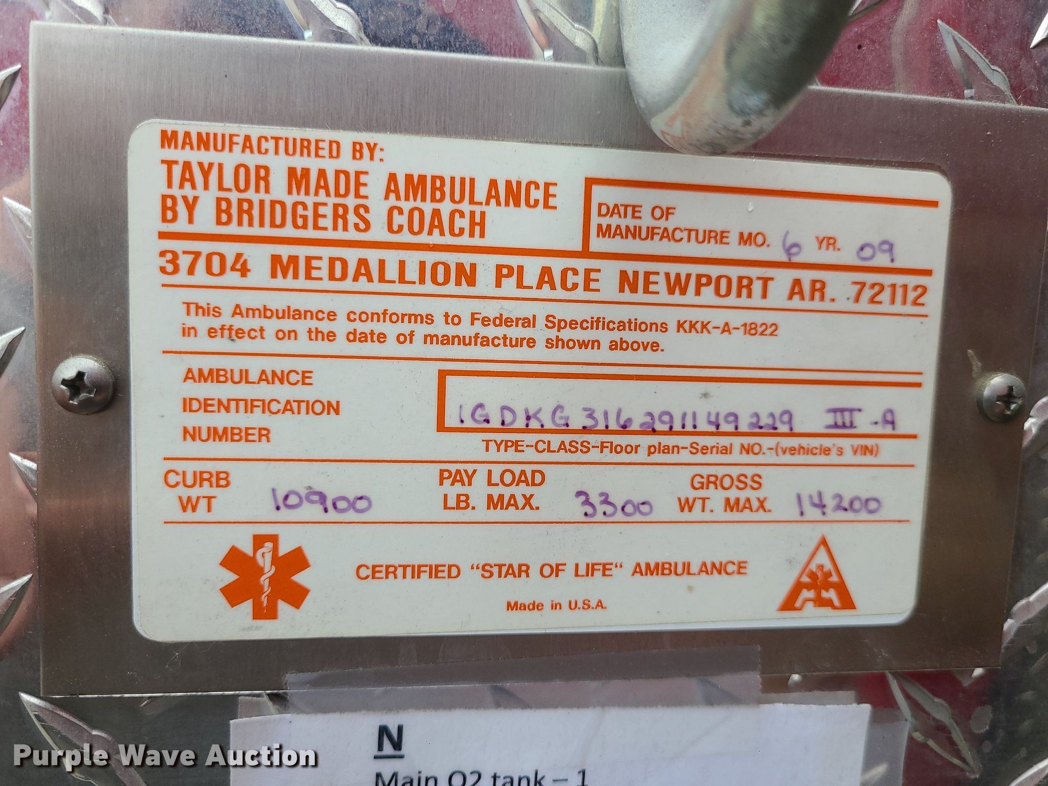 Purple Wave is selling a used Fire Truck or Emergency Vehicle in Missouri. This item is a 2009 GMC Savana G4500 ambulance with the following: Miles: 115,095 on odometer, VIN: 1GDKG316291149229