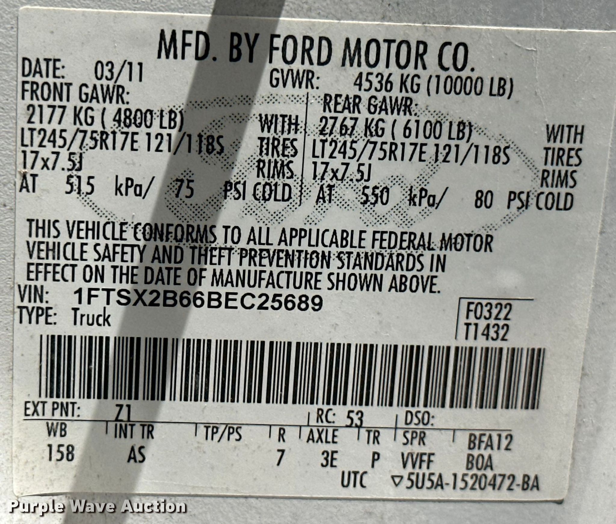 Purple Wave is selling a used 3/4 or 1 Ton Pickup or Van in Kansas. This item is a 2011 Ford F250 Super Duty pickup truck with the following: Miles: 139,190 on odometer, Miles or hours may vary, unit still in use, VIN: 1FTSX2B66BEC25689