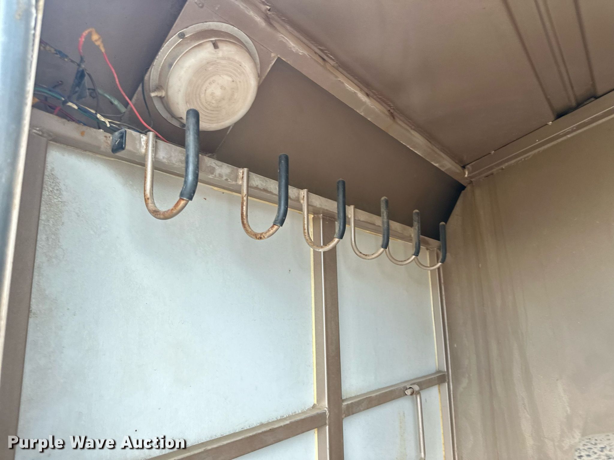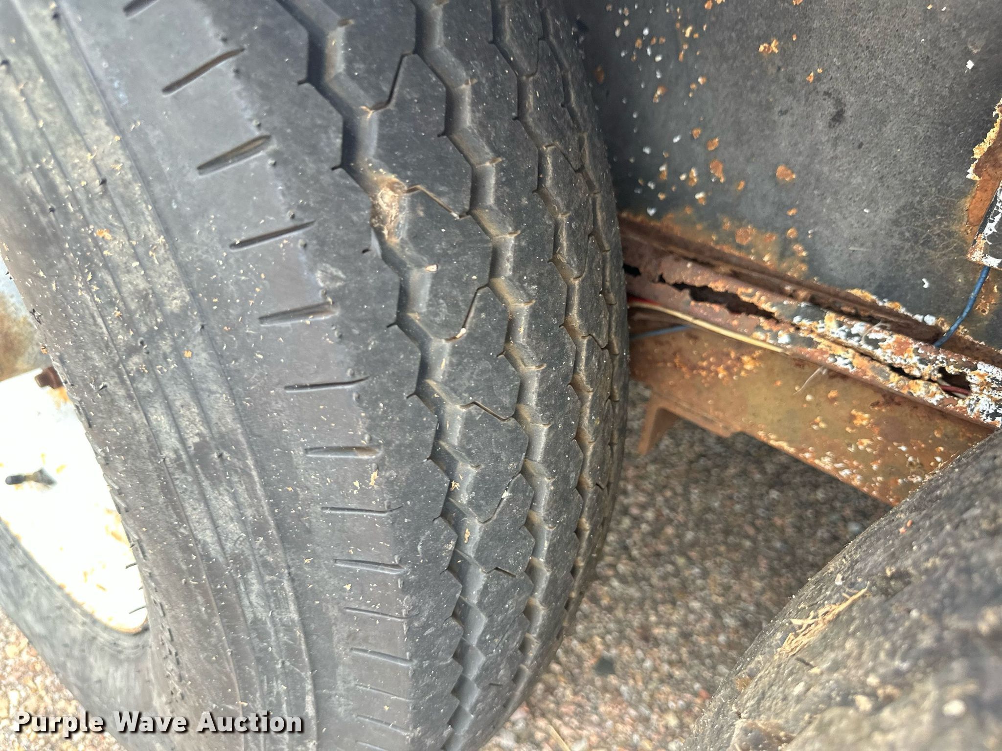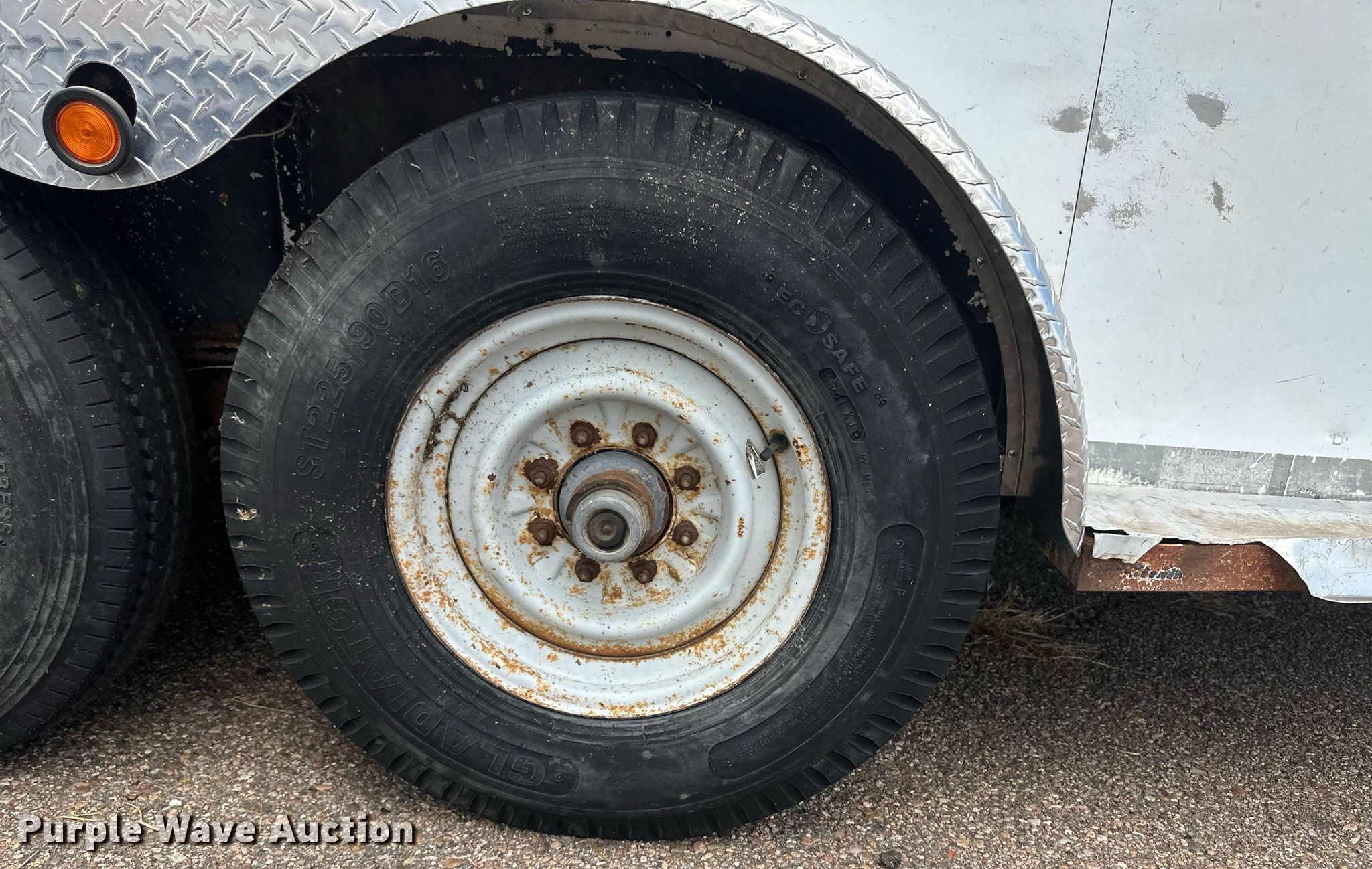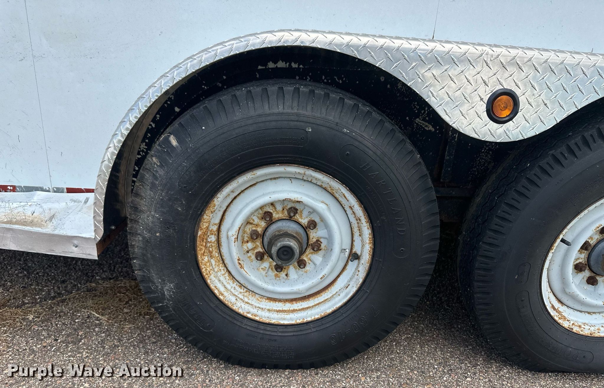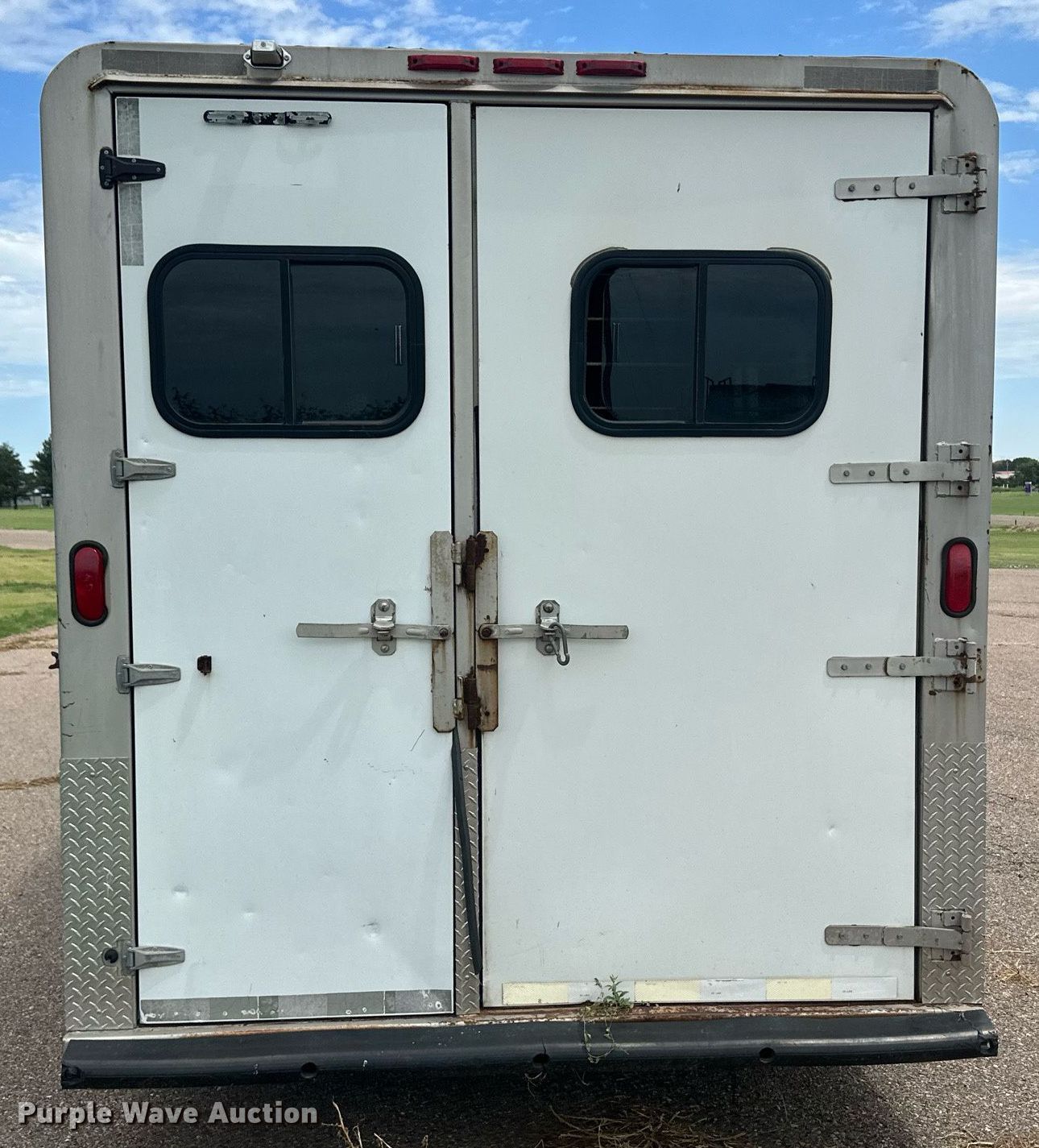 1995 Diamond D livestock trailer. VIN: 4EYHG2022S1213690. Dimensions Overall: 27' 6" L x 102" W, Body: 20' L x 82" W. Features Horse capacity: 4, Center gates: 2, Ground load, Rubber floor mat. Chassis Hitch: Gooseneck, Landing gear: Single, Suspension: Spring, Brakes: Electric, Axles: Tandem. Features Living quarters, Tack room. Tires Steel wheels, Size: 225/90D16 , 7.50-16. Notes Non-operational living quarters door. Dodge City Community College. 2501 N 14th Ave. Dodge City, KS 67801
